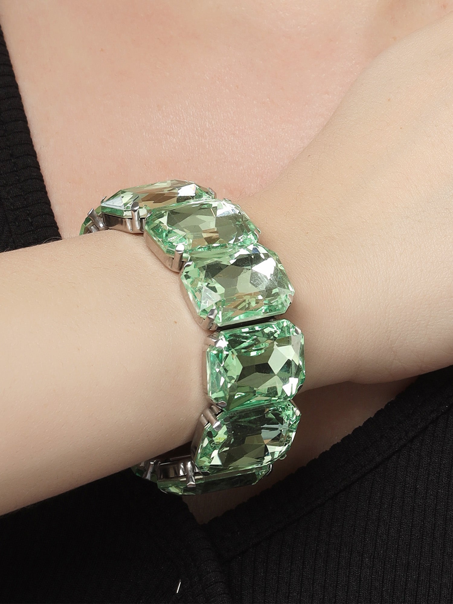 Bohey by KARATCART Gold-Plated Lime Green Cubic Zirconia Studded Wraparound Bracelet for Women