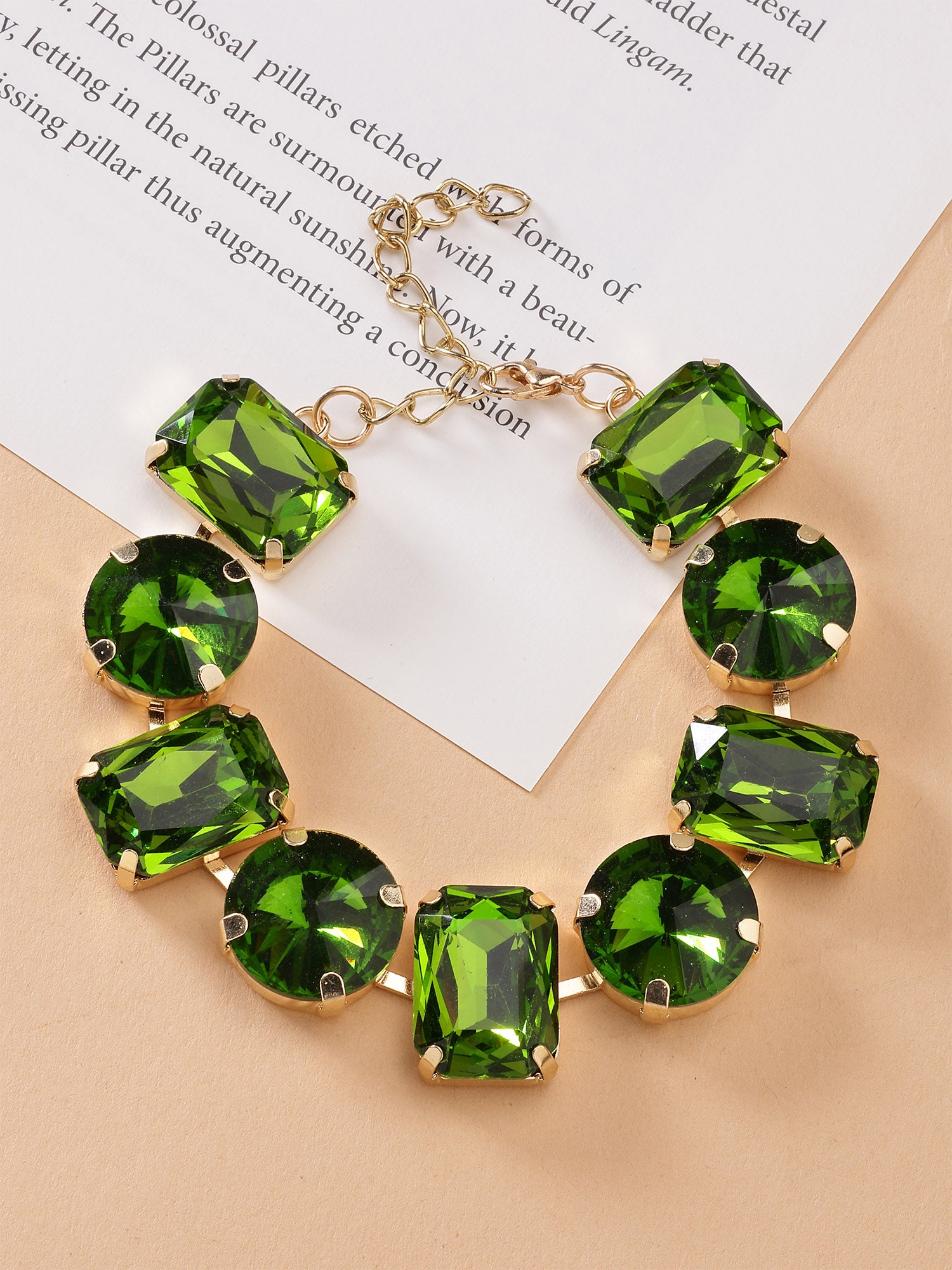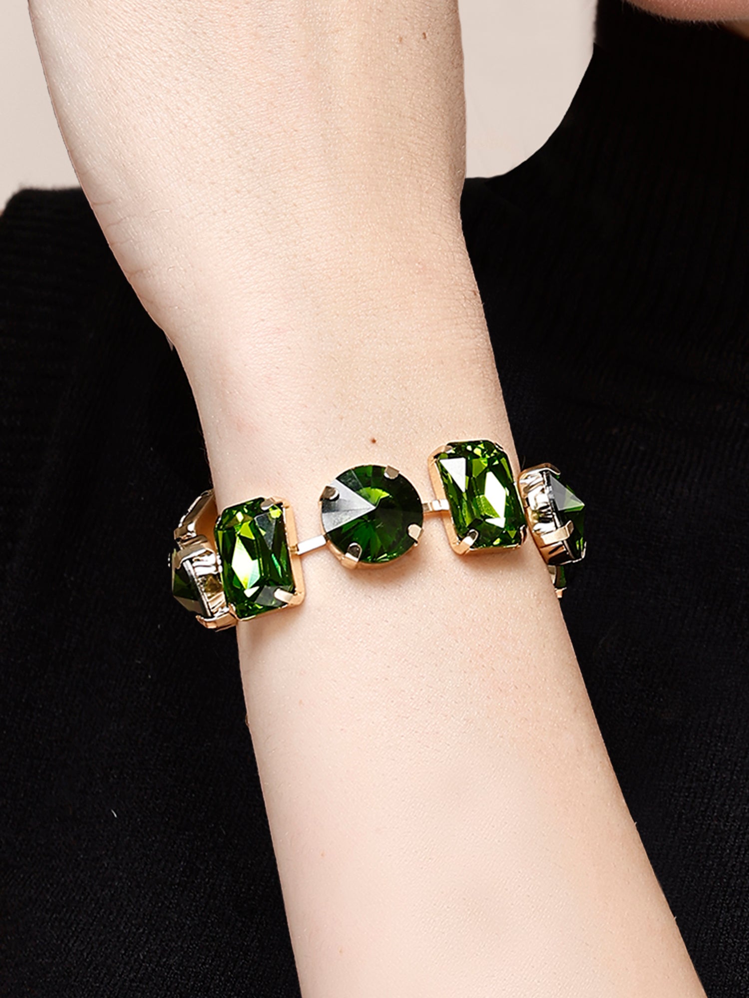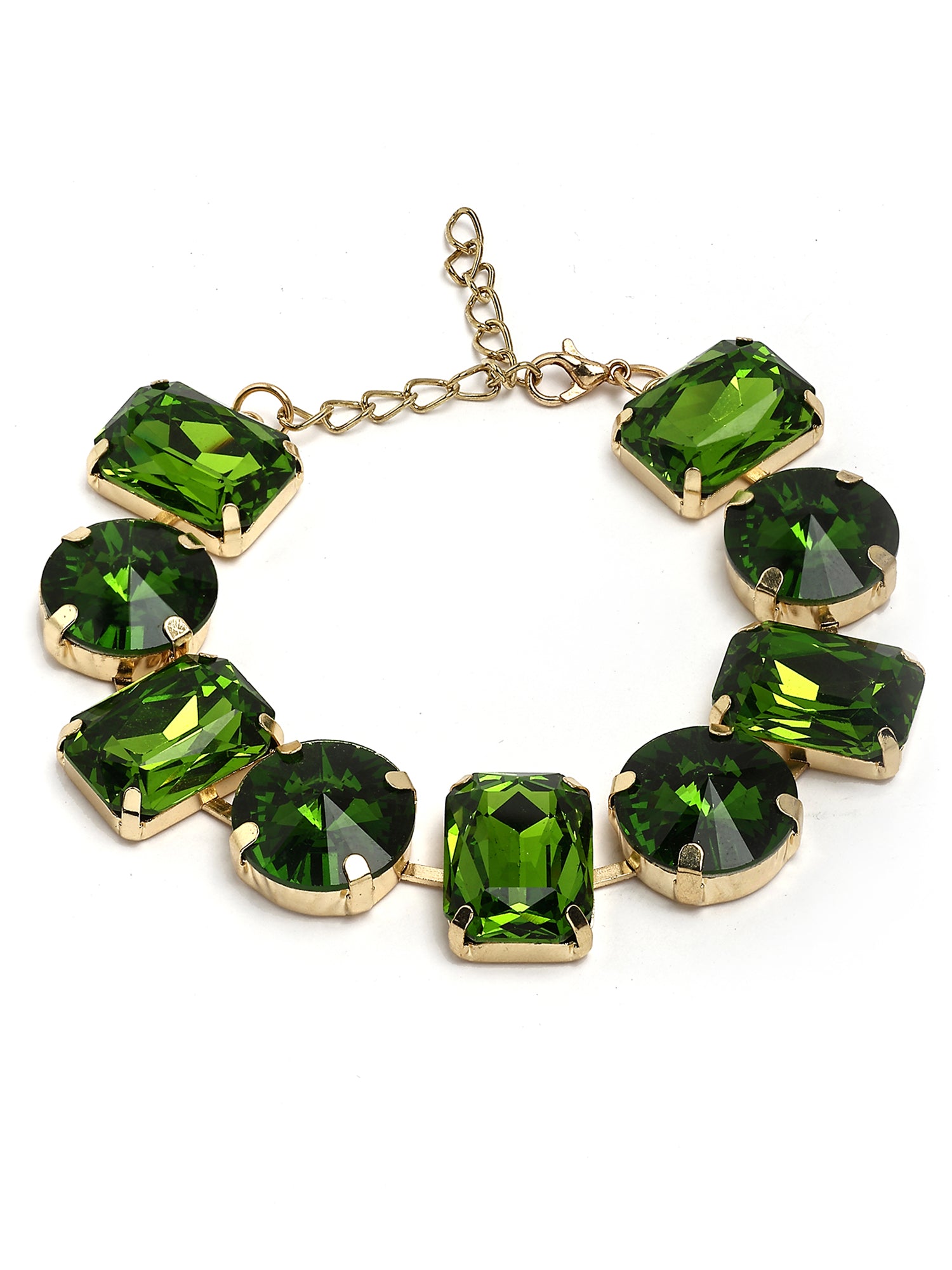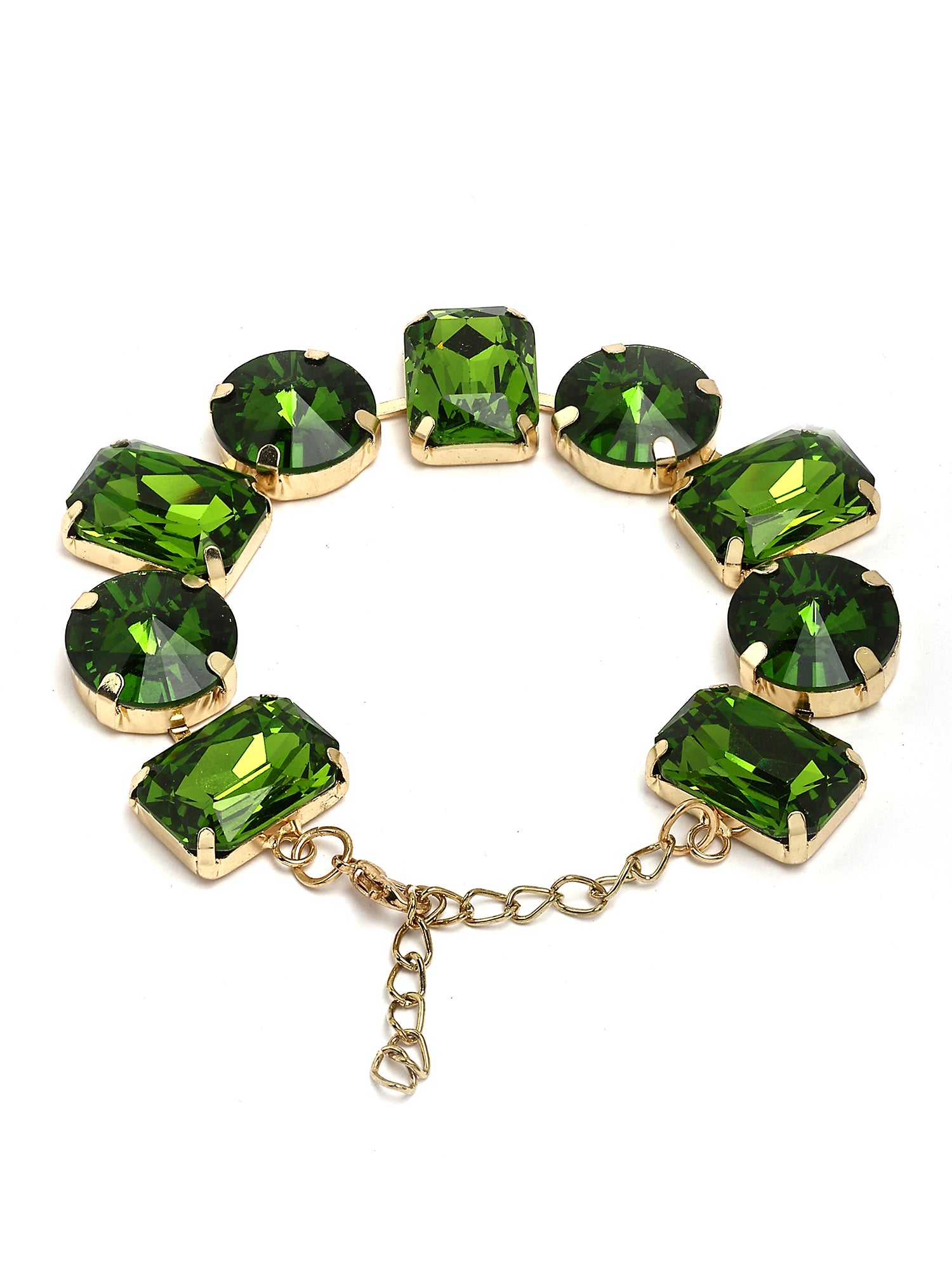 Bohey by KARATCART Gold-Plated Green Cubic Zirconia Studded Wraparound Bracelet for Women