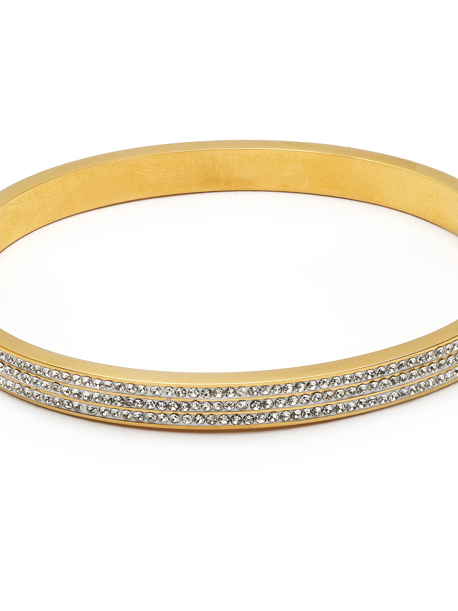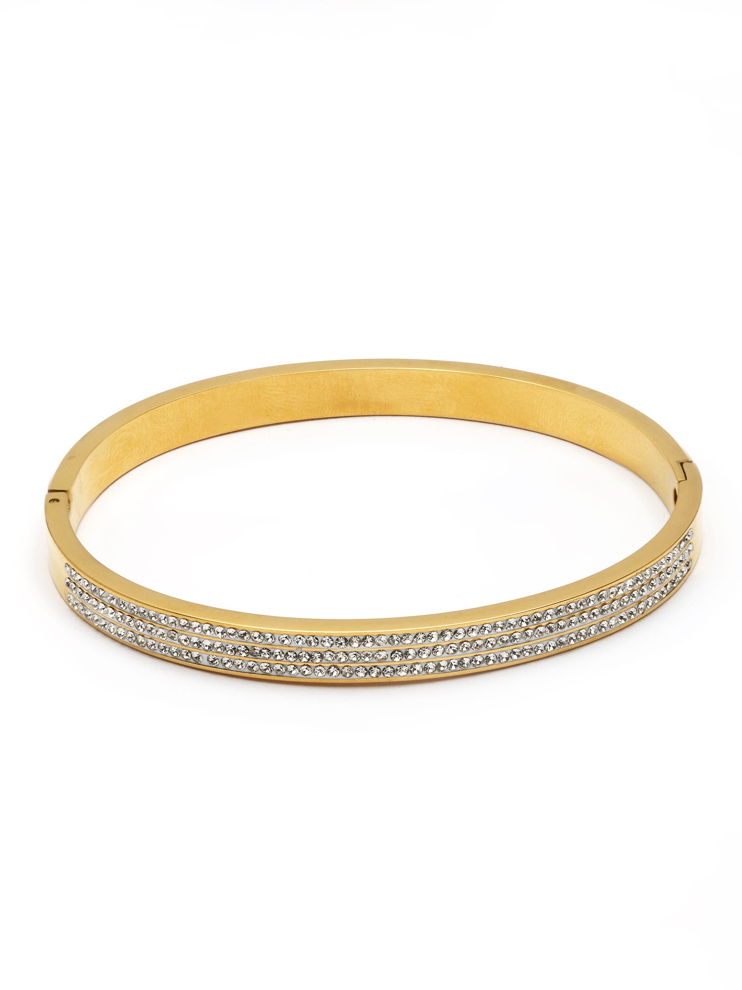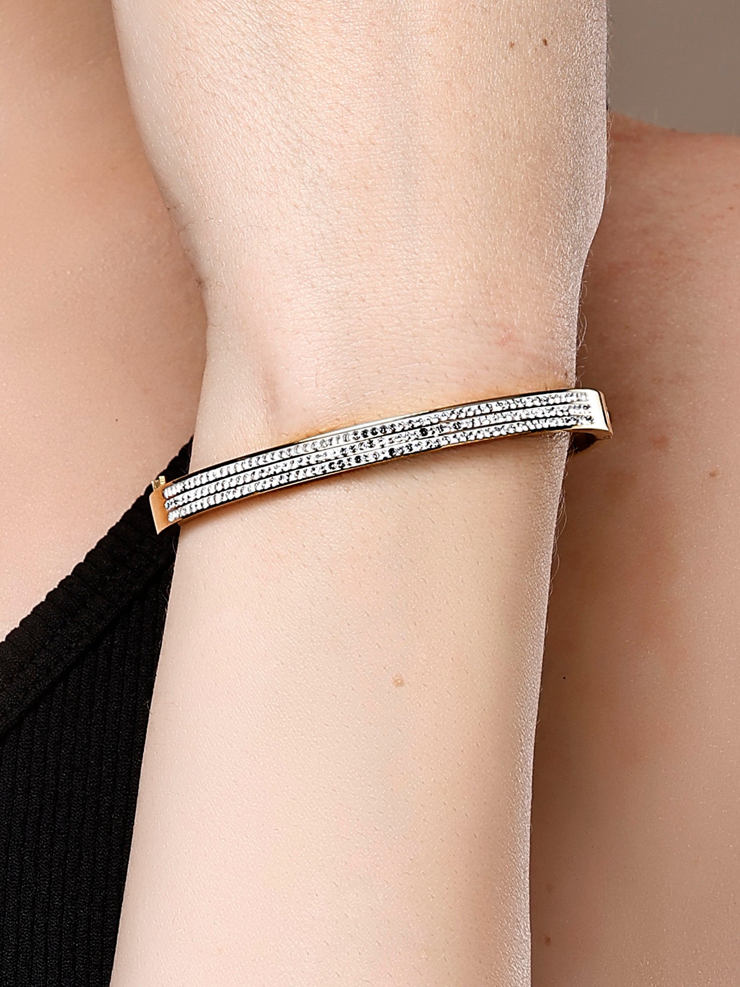 Bohey by KARATCART Gold-Plated White Cubic Zirconia Studded Bangle-Style Bracelet for Women