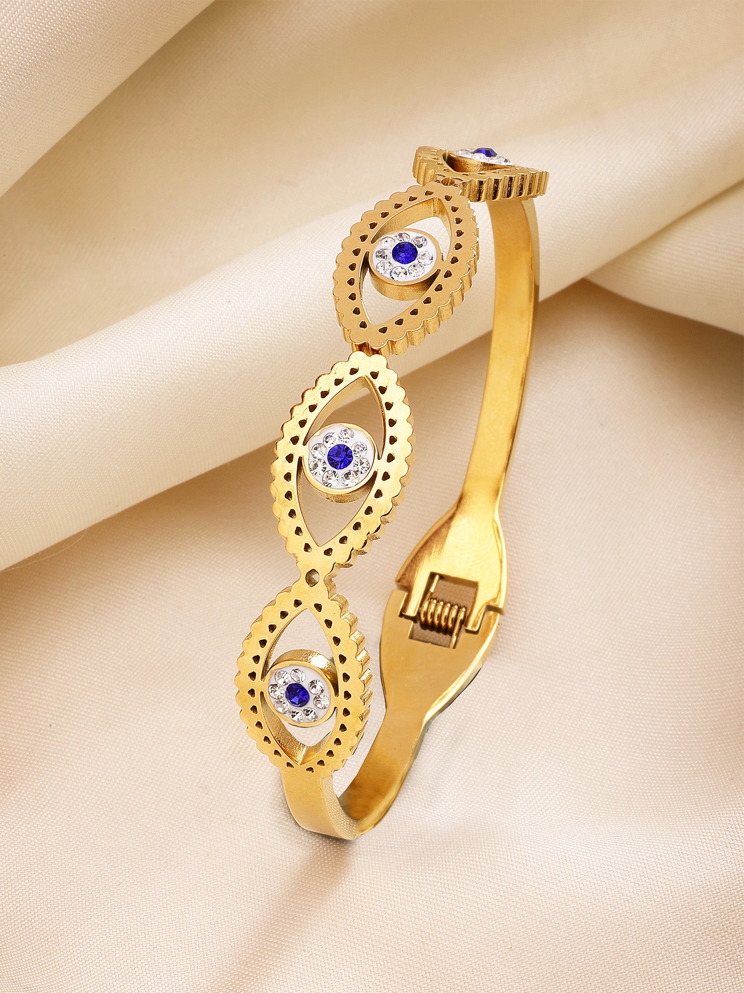 Bohey by KARATCART Gold-Plated Evil Eye Cubic Zirconia Bangle-Style Bracelet for Women