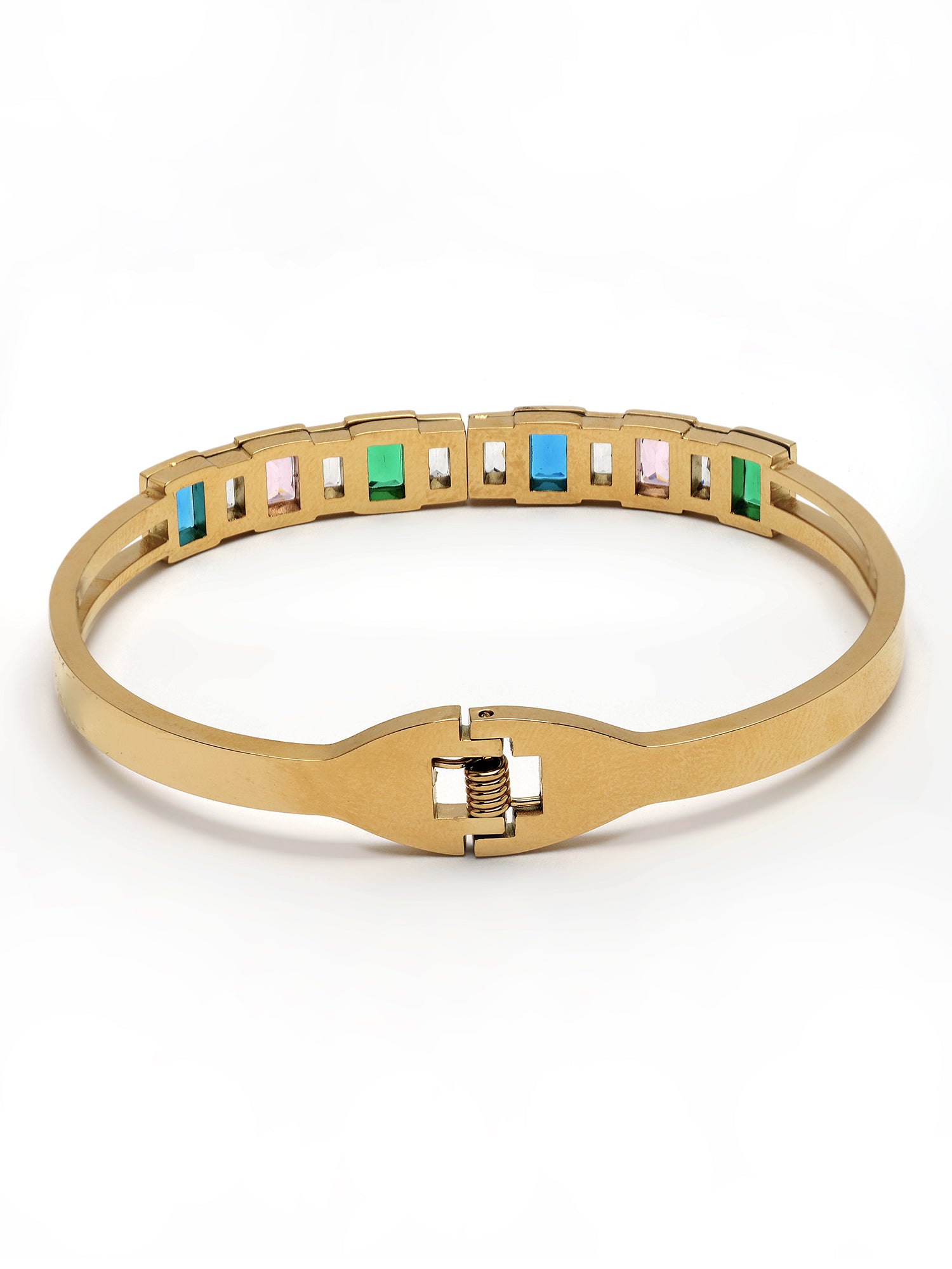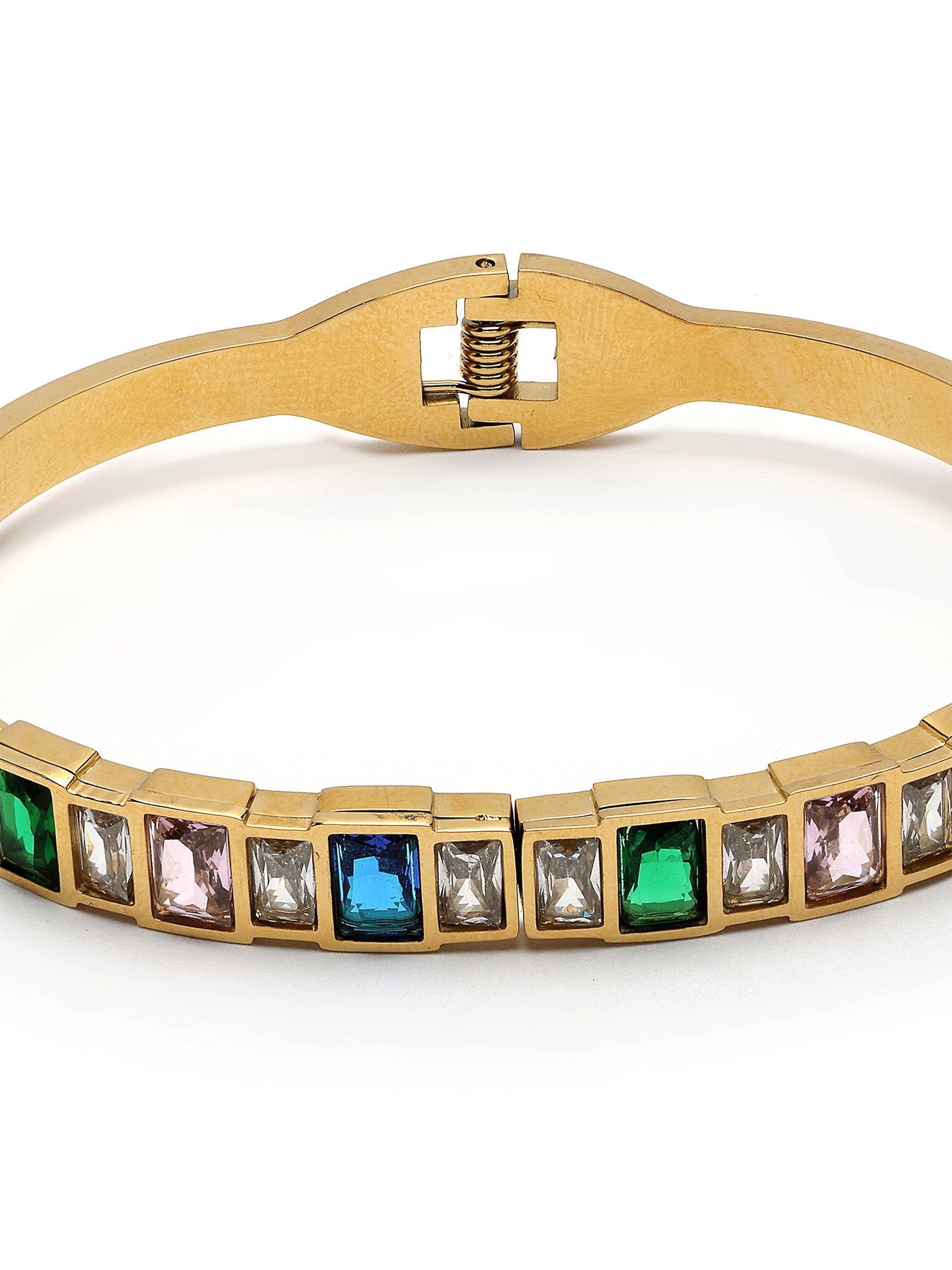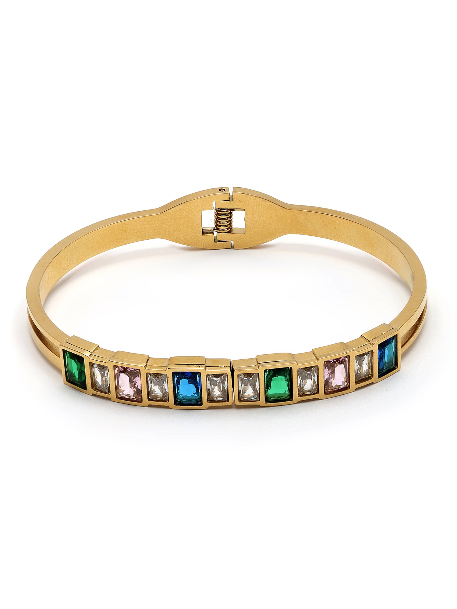 Bohey by KARATCART Gold-Plated Multicolor Cubic Zirconia Studded Bangle-Style Bracelet for Women