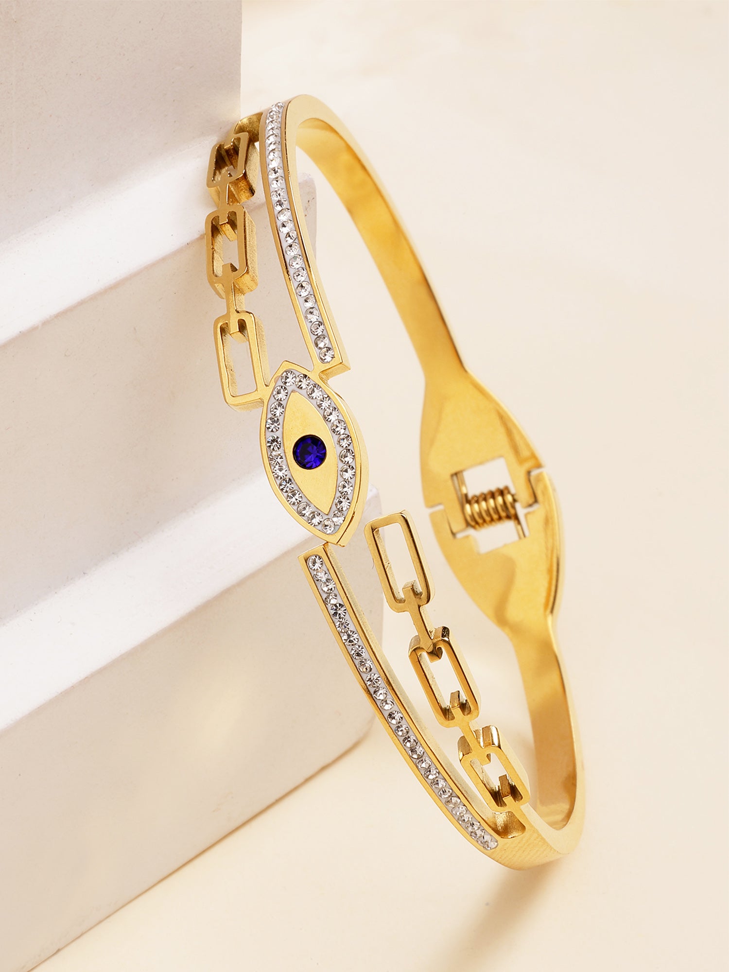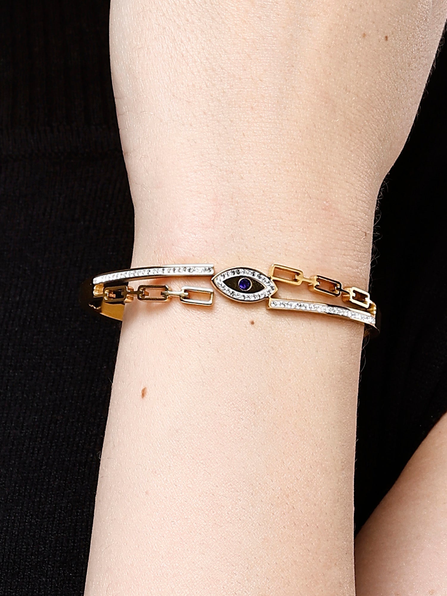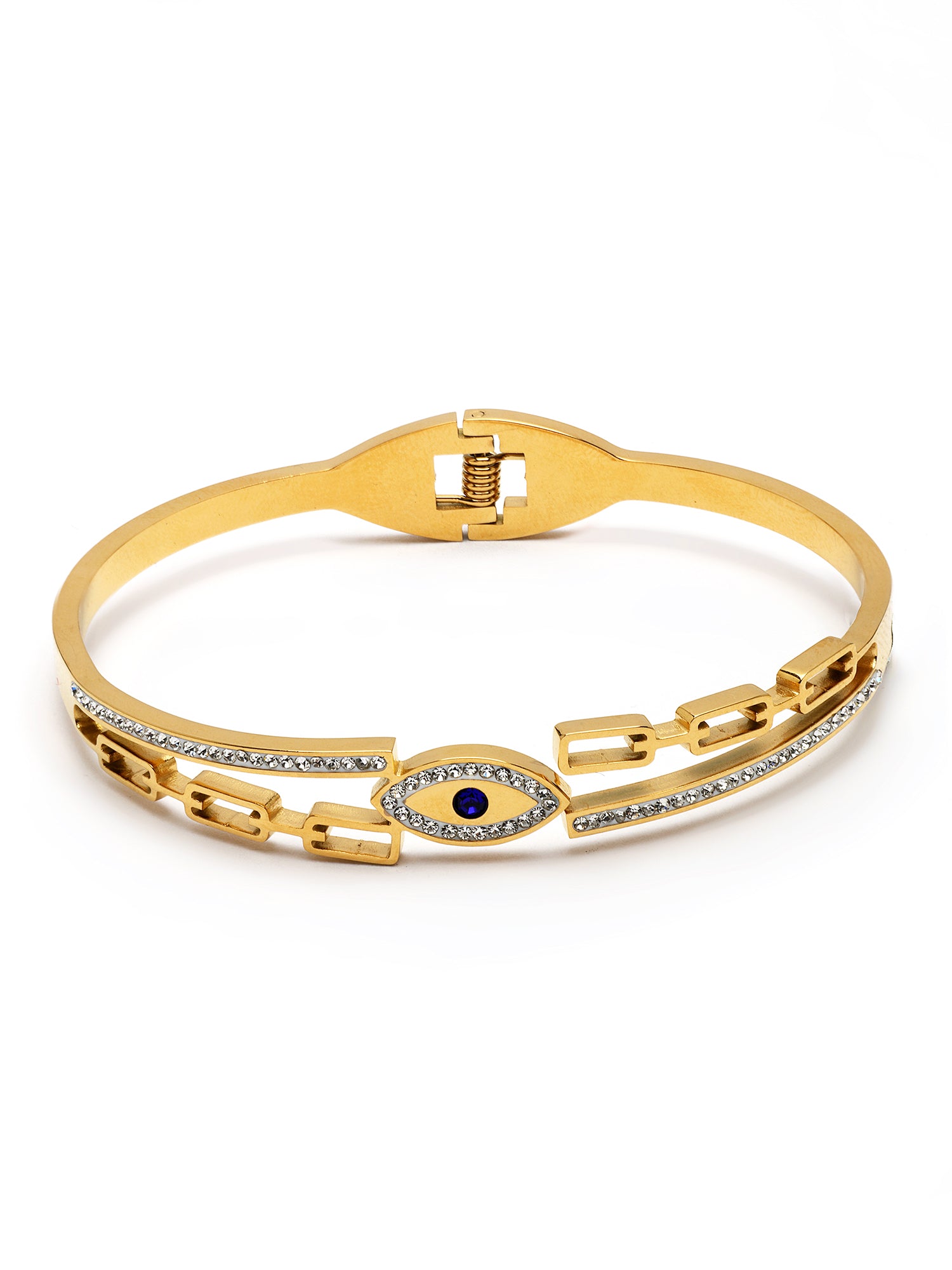 Bohey by KARATCART Gold-Plated Evil Eye Cubic Zirconia Bangle-Style Bracelet for Women