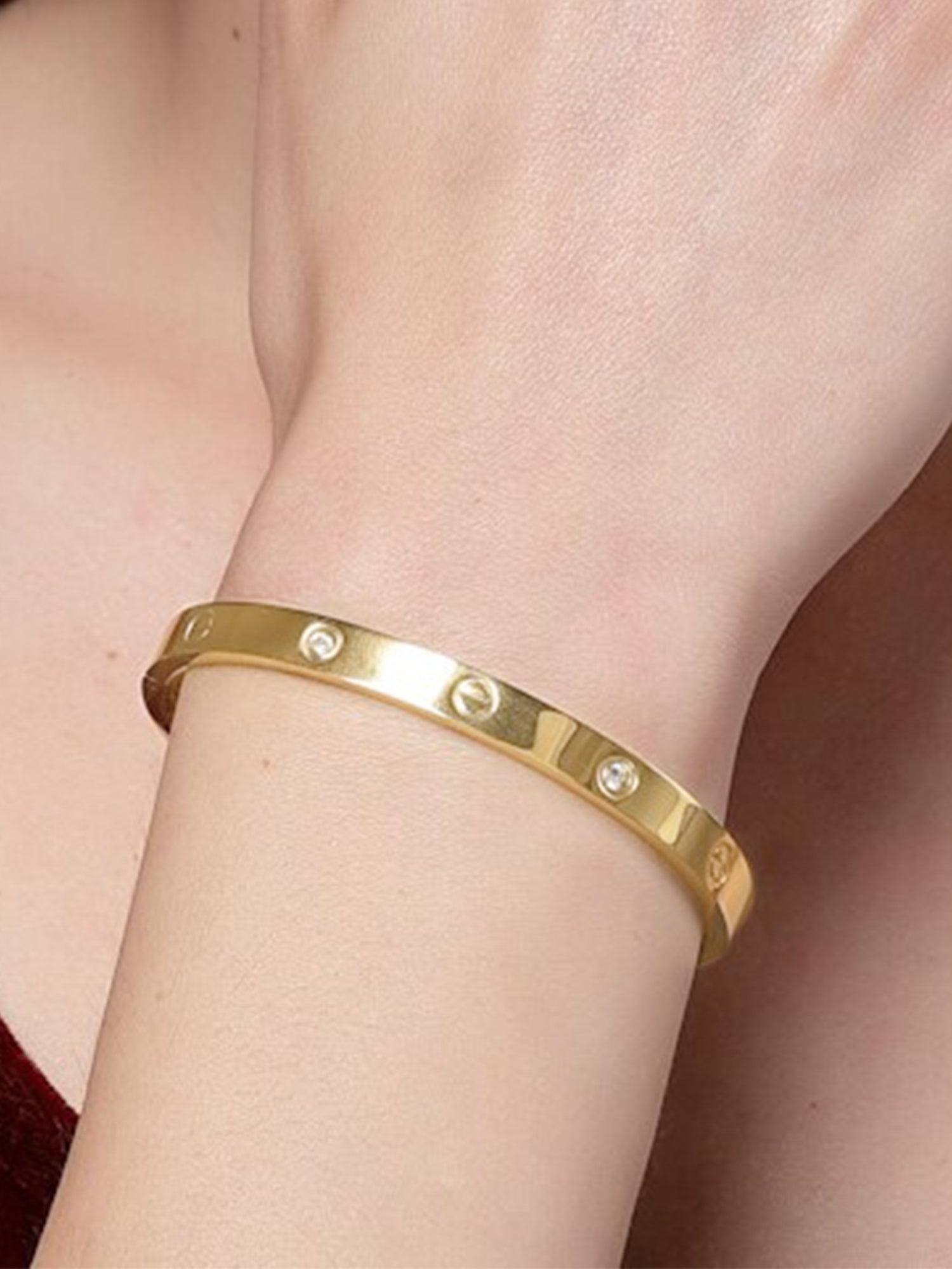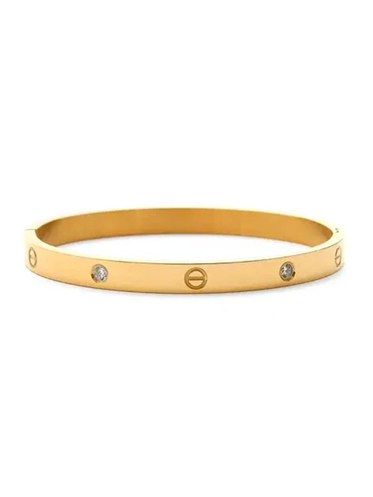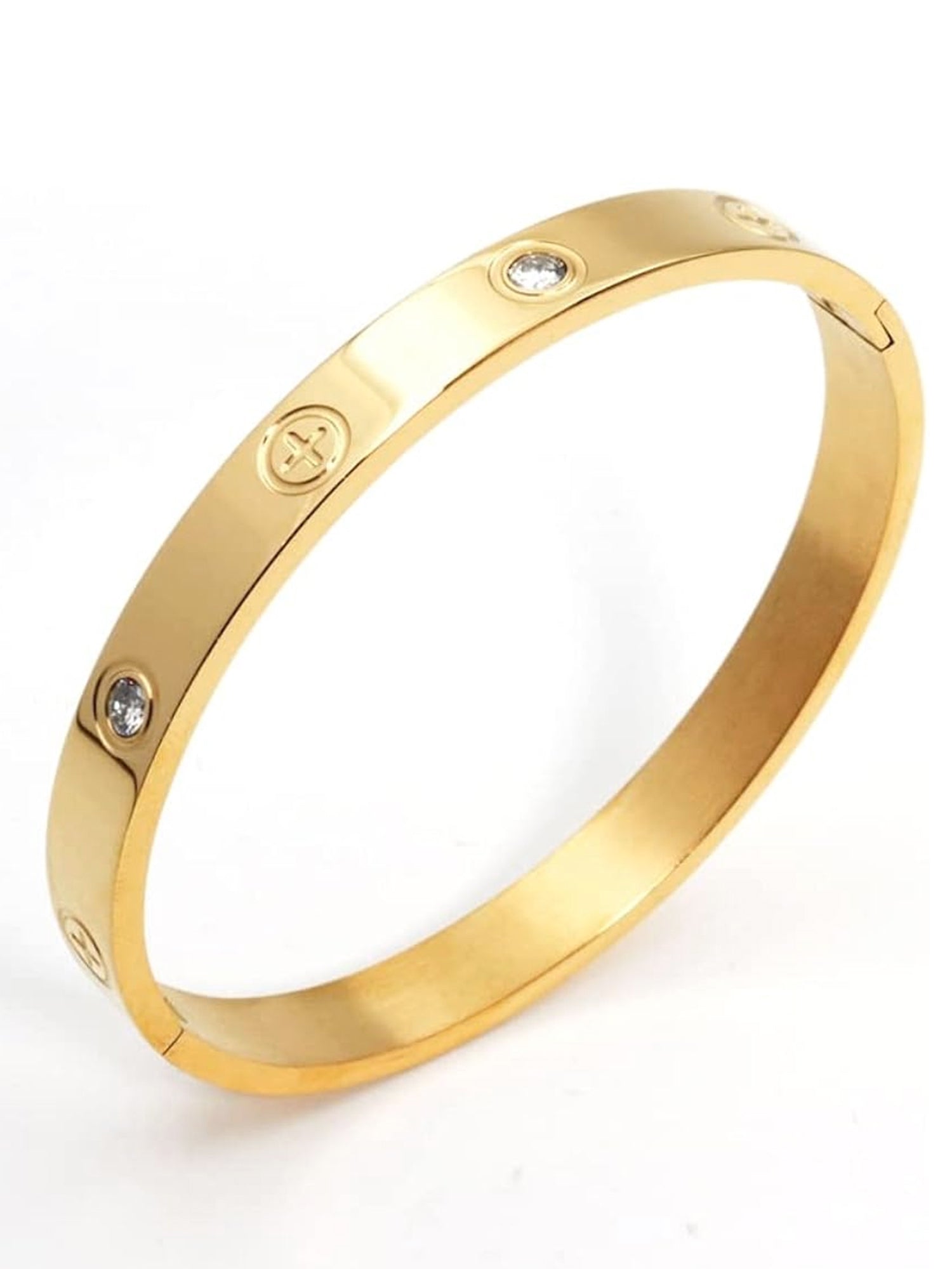 Bohey by KARATCART Gold Plated CZ Stainless Steel Kada Bracelet for Women