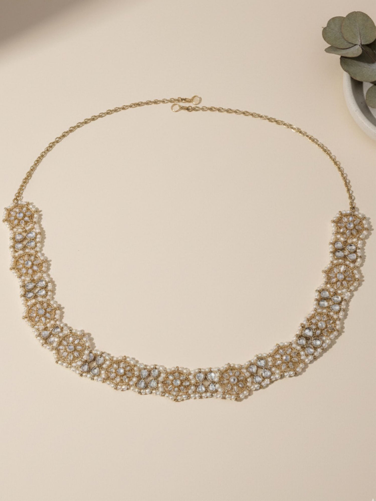 Karatcart Gold Plated Floral and Drop Shape Kundan and Pearl Beaded Kamarbandh