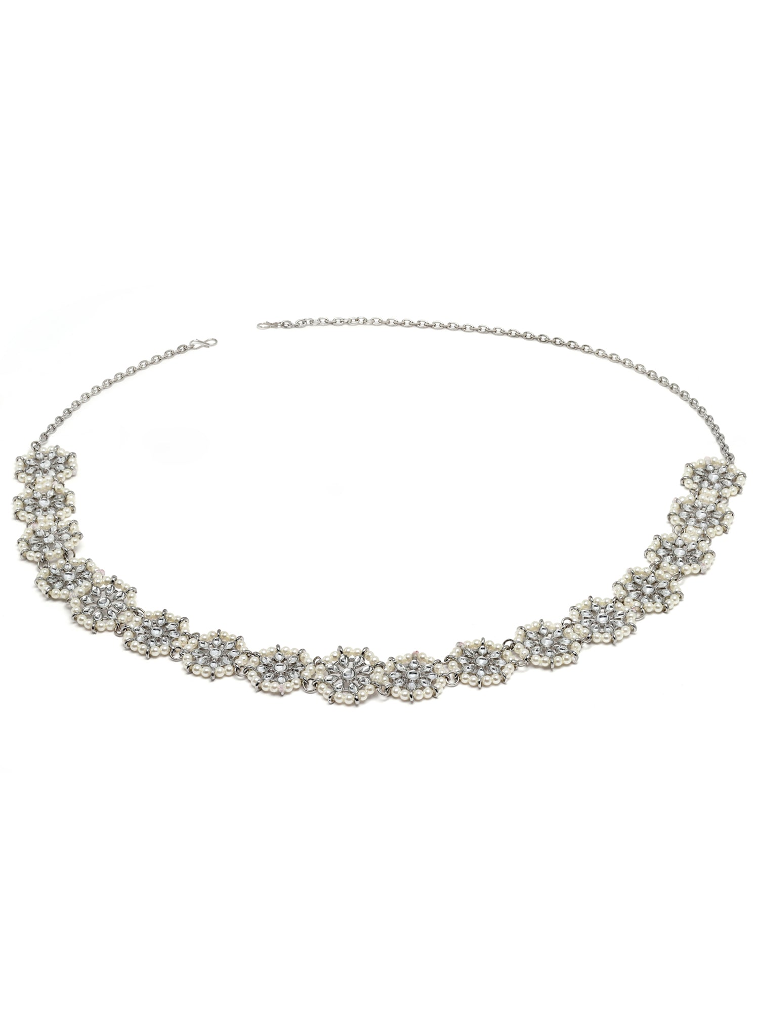 Karatcart Oxidised Silver Floral Shape Kundan and Pearl Beaded Kamarbandh