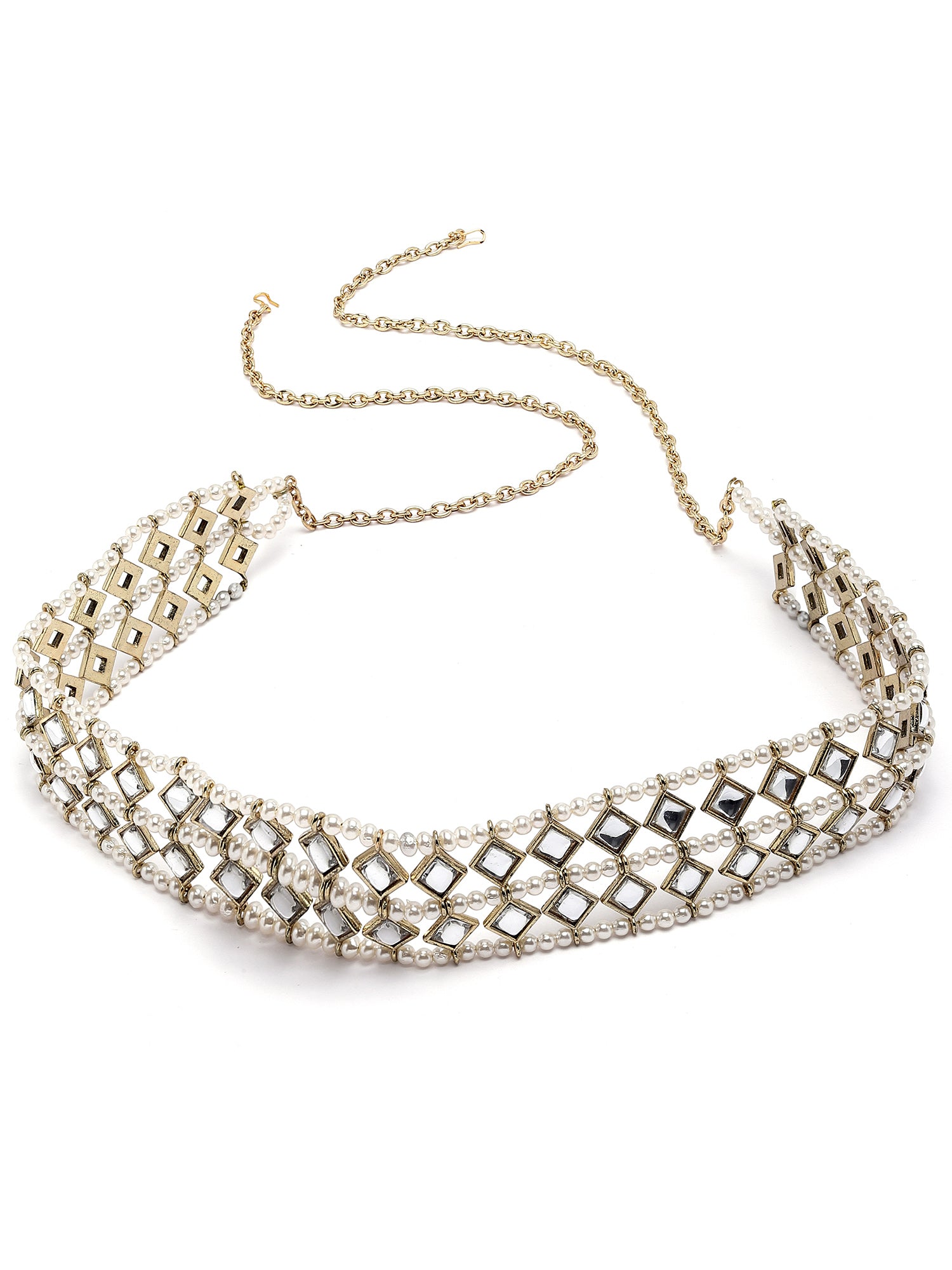 Karatcart Gold Plated Diamond Shape Kundan and Pearl Studded Kamarbandh for Women