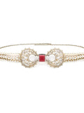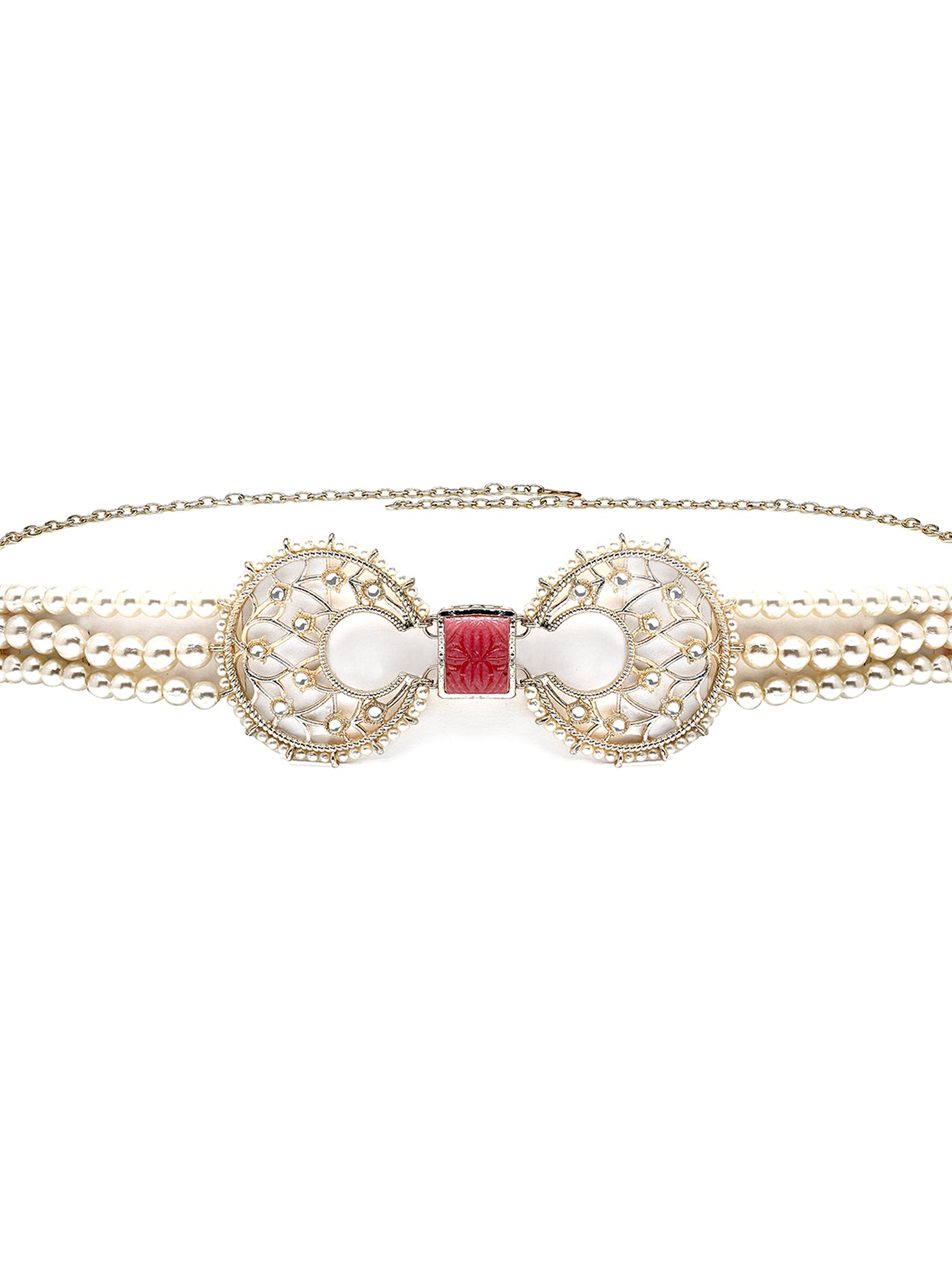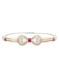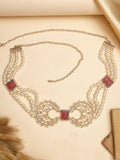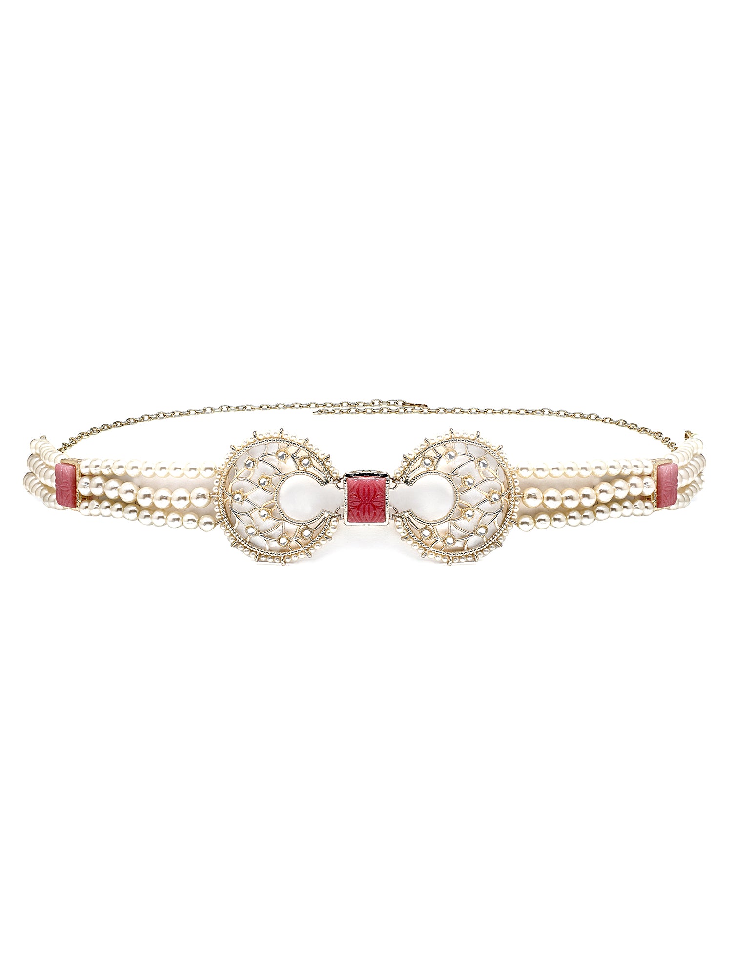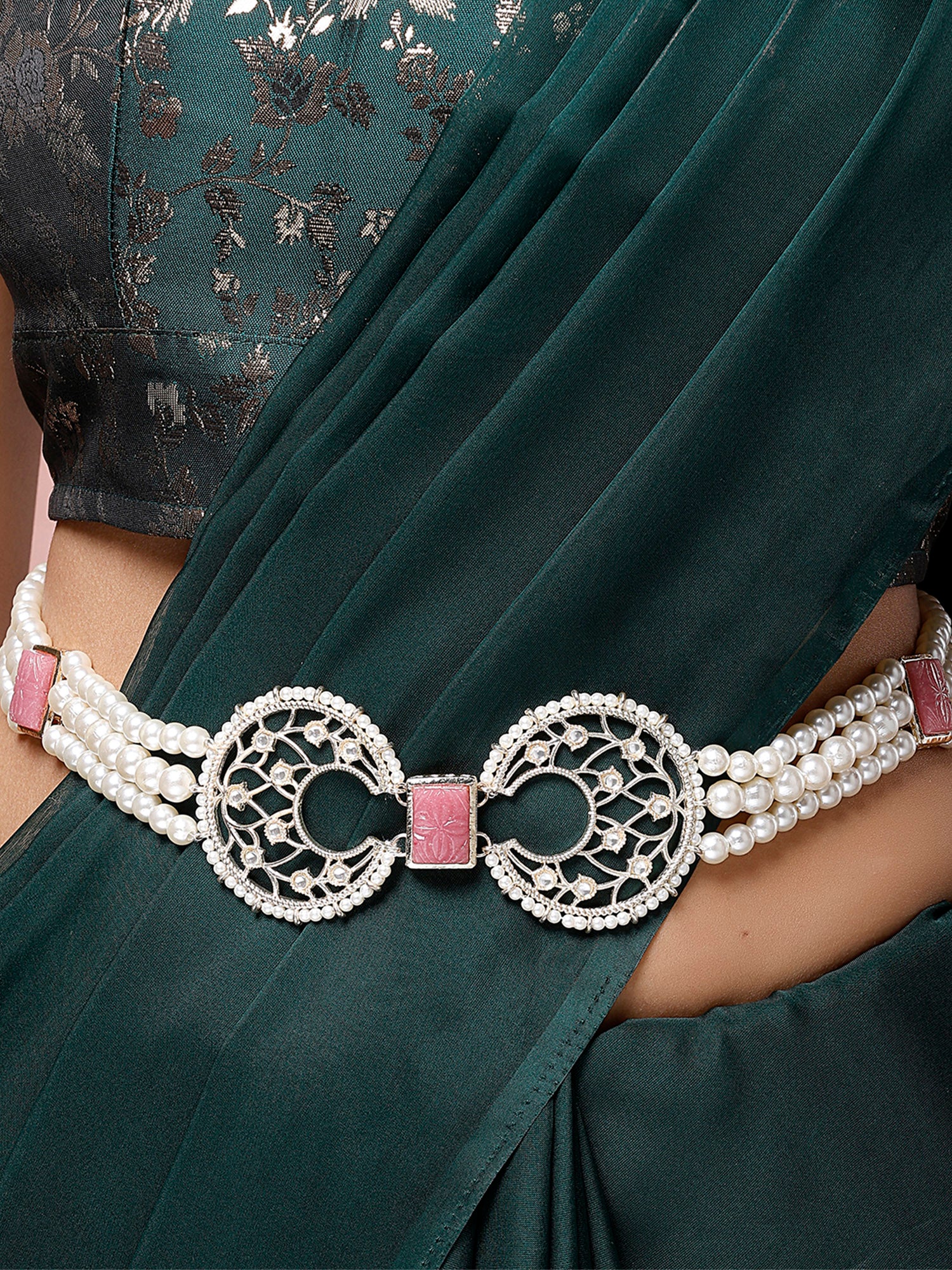 Karatcart Traditional Gold Plated Pink Carved Stone Pearl Beaded Kamarbandh for Women