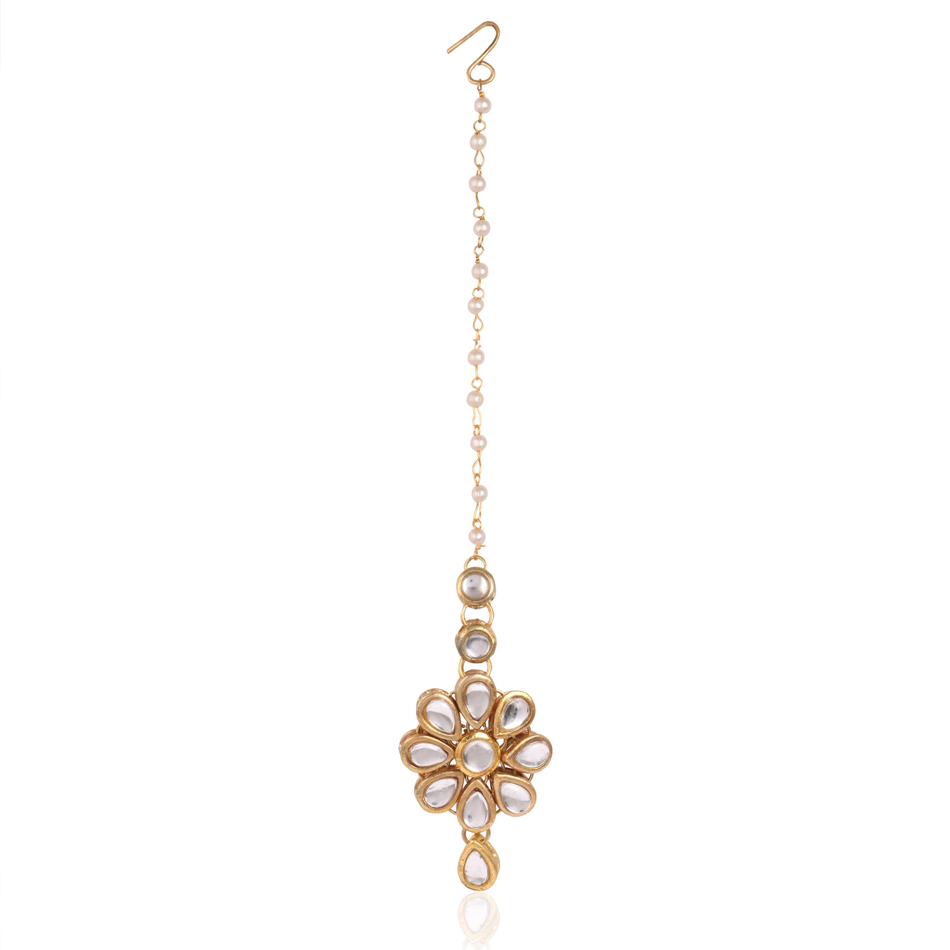 - Traditional Gold Plated Kundan Maangtikka for Women. It's Five Layer Micro Gold Plated and Embellished with Kundan for High Durability. Intricate high polish creates glamorous reflections and adds a luxurious look. Perfect for Weddings, Festivals, Traditional Occasions. Best when paired with any Indian outfit.