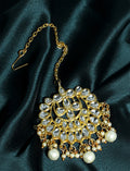 Traditional Gold Plated Pearl Beads Kundan Maangtikka for Women