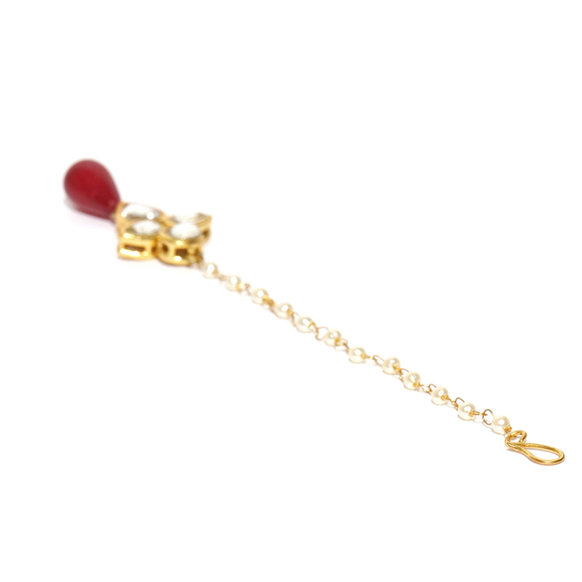 Traditional Gold Plated Red Drop Kundan Maangtikka for Women