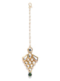 Traditional Gold Plated Green Beads Kundan Maangtikka for Women