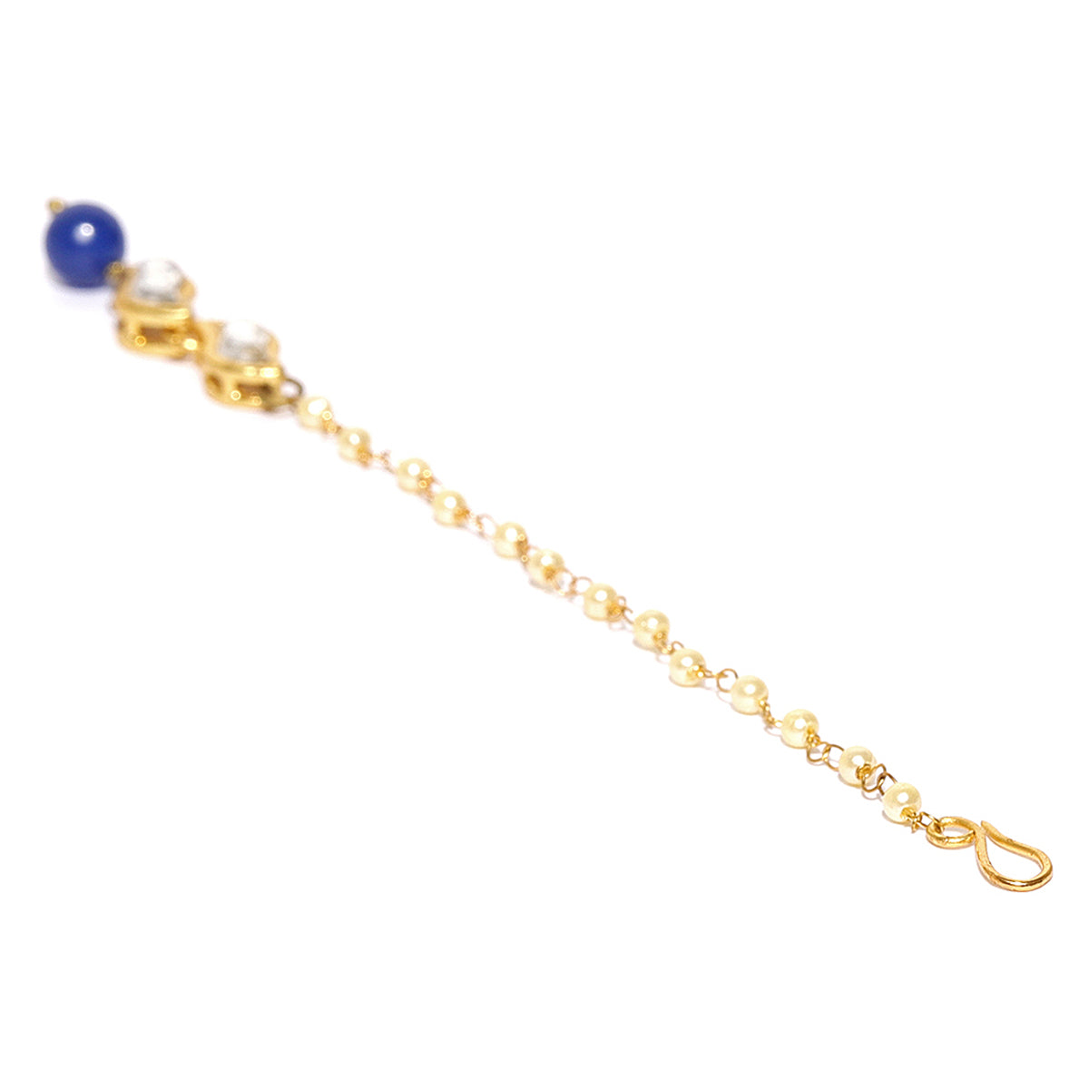 Traditional Gold Plated Blue Beads Kundan Maangtikka for Women