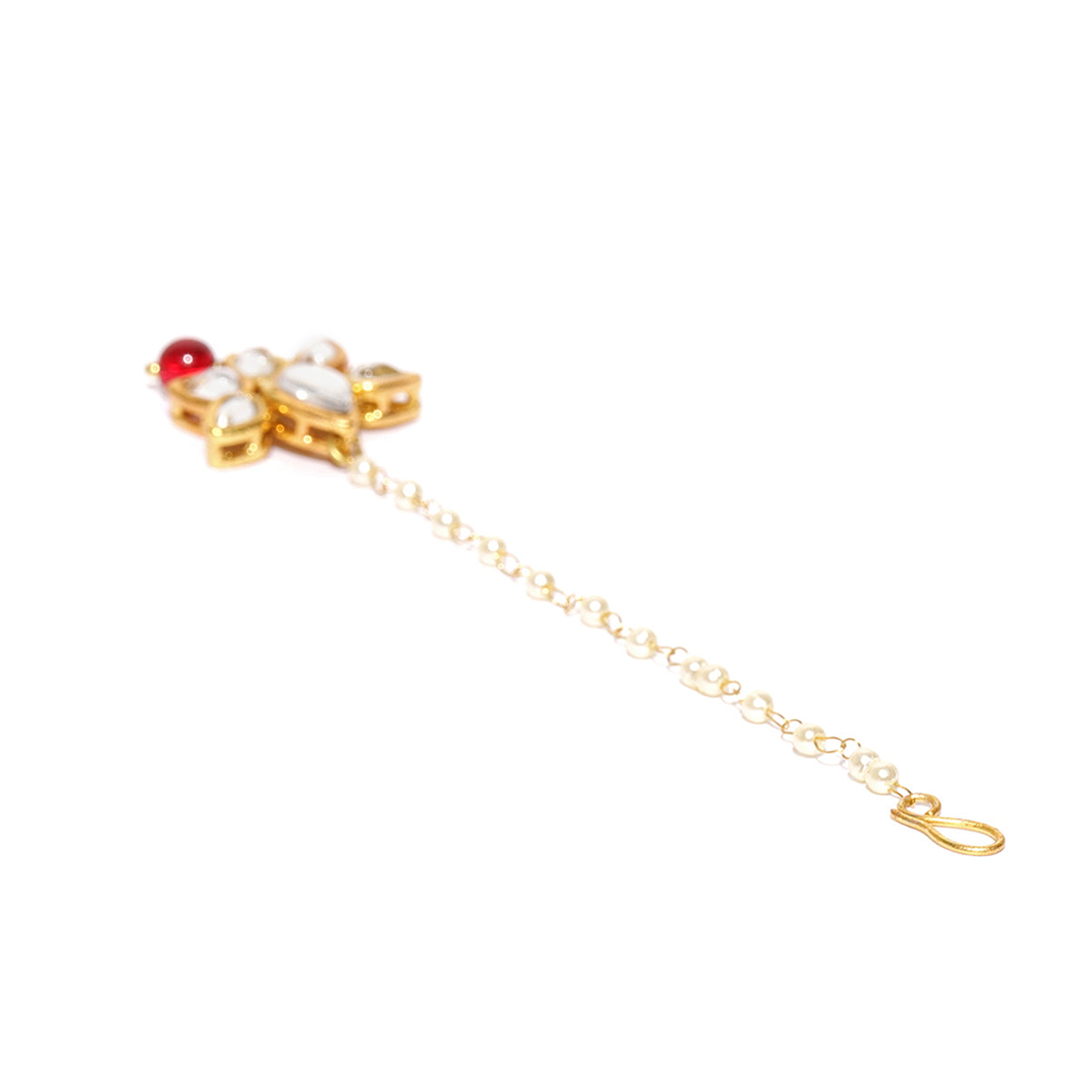Traditional Gold Plated Red Beads Kundan Maangtikka for Women