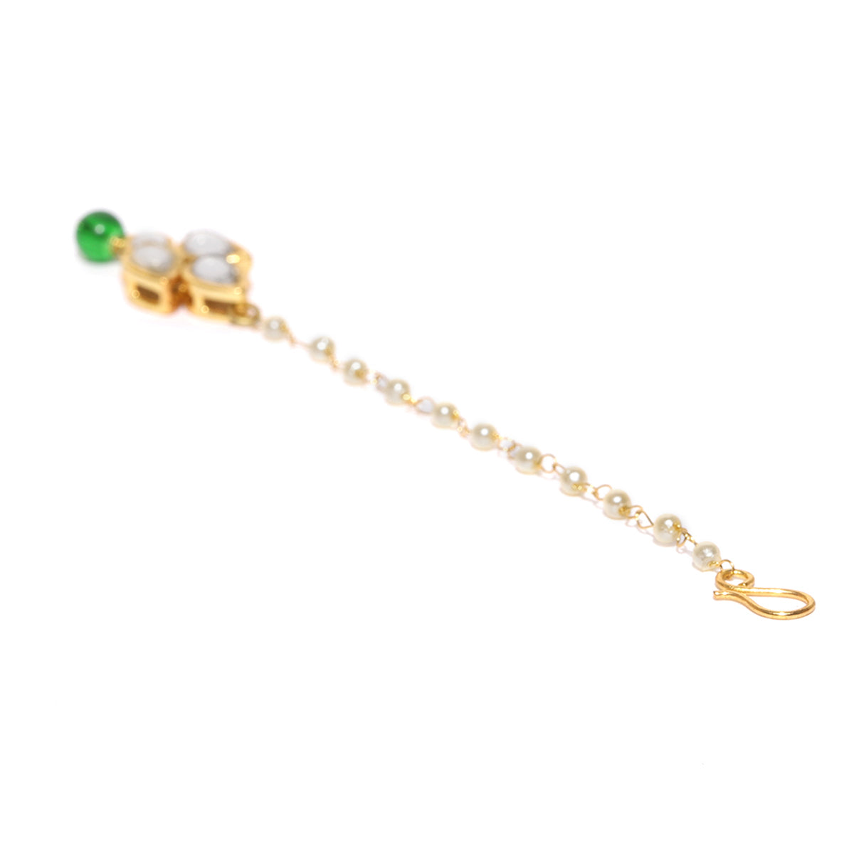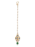 Traditional Gold Plated Green Beads Kundan Maangtikka for Women