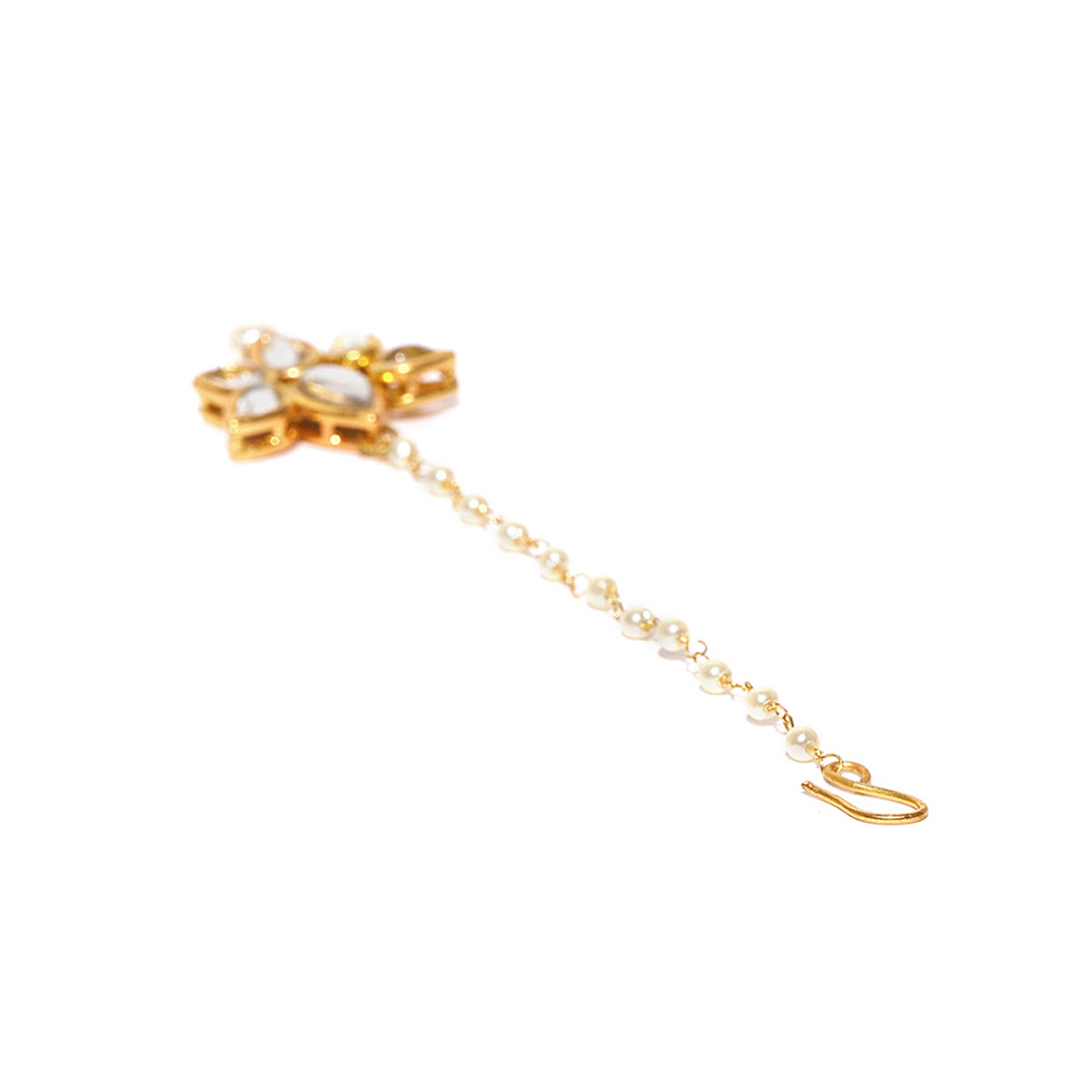Traditional Gold Plated Pearl Beads Kundan Maangtikka for Women