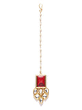 Traditional Gold Plated Red Stone Kundan Maangtikka for Women