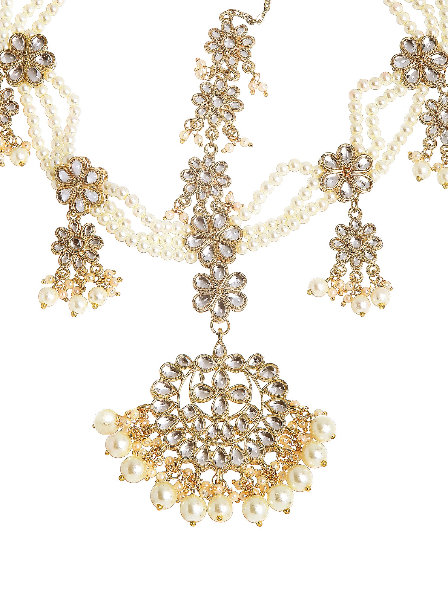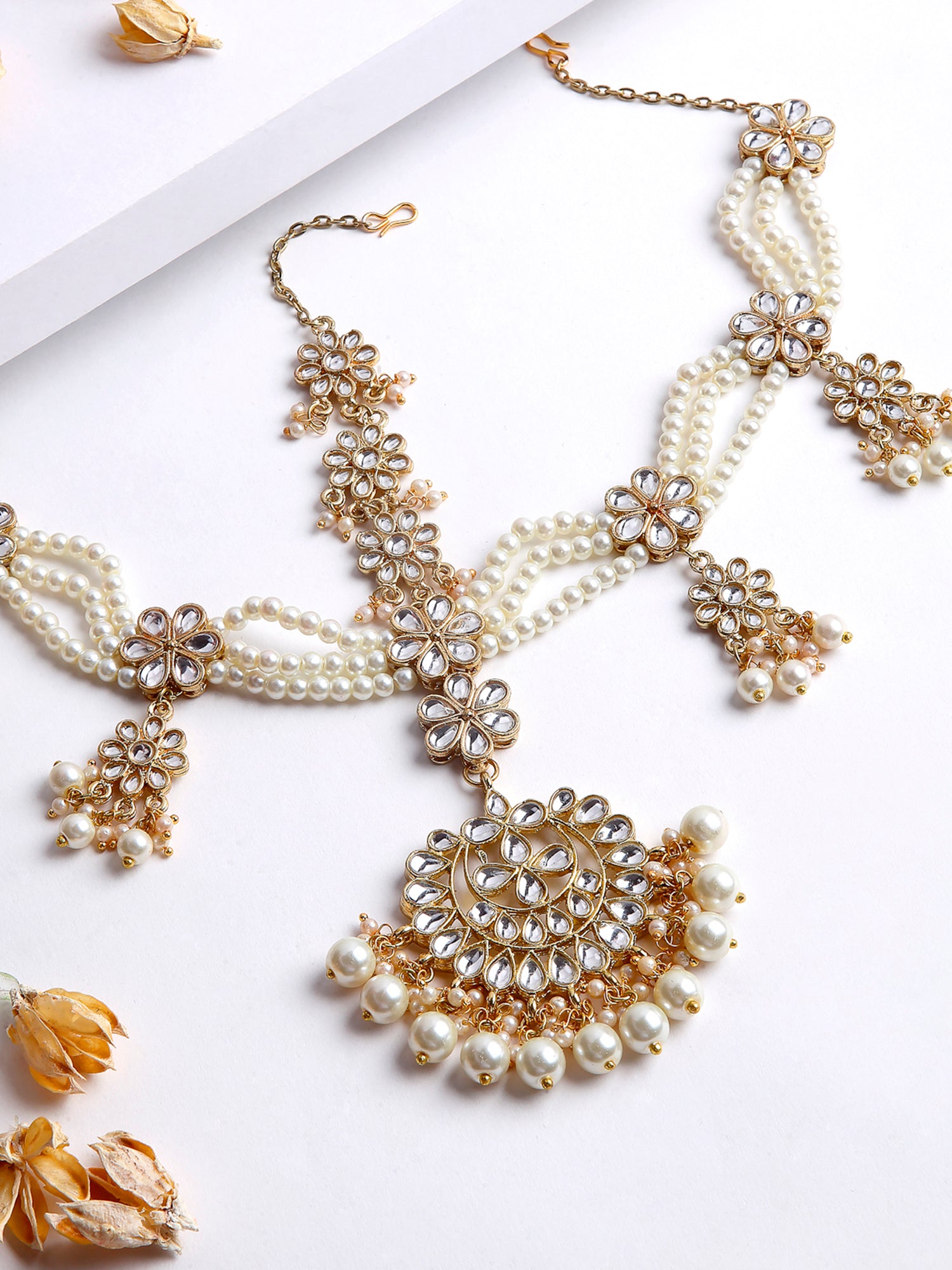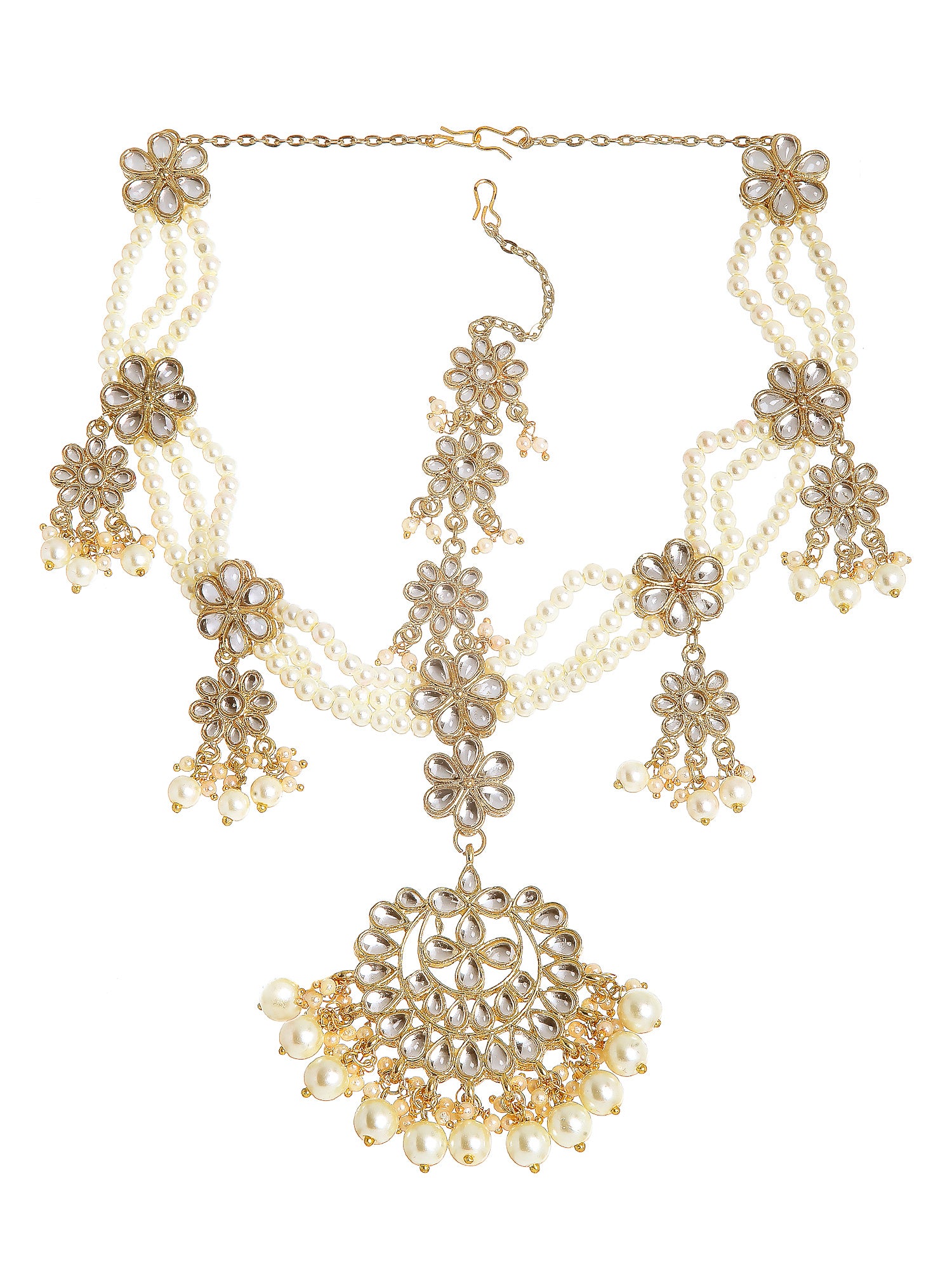 Gold Plated Kundan and Pearl Beaded Sheeshphool for Women