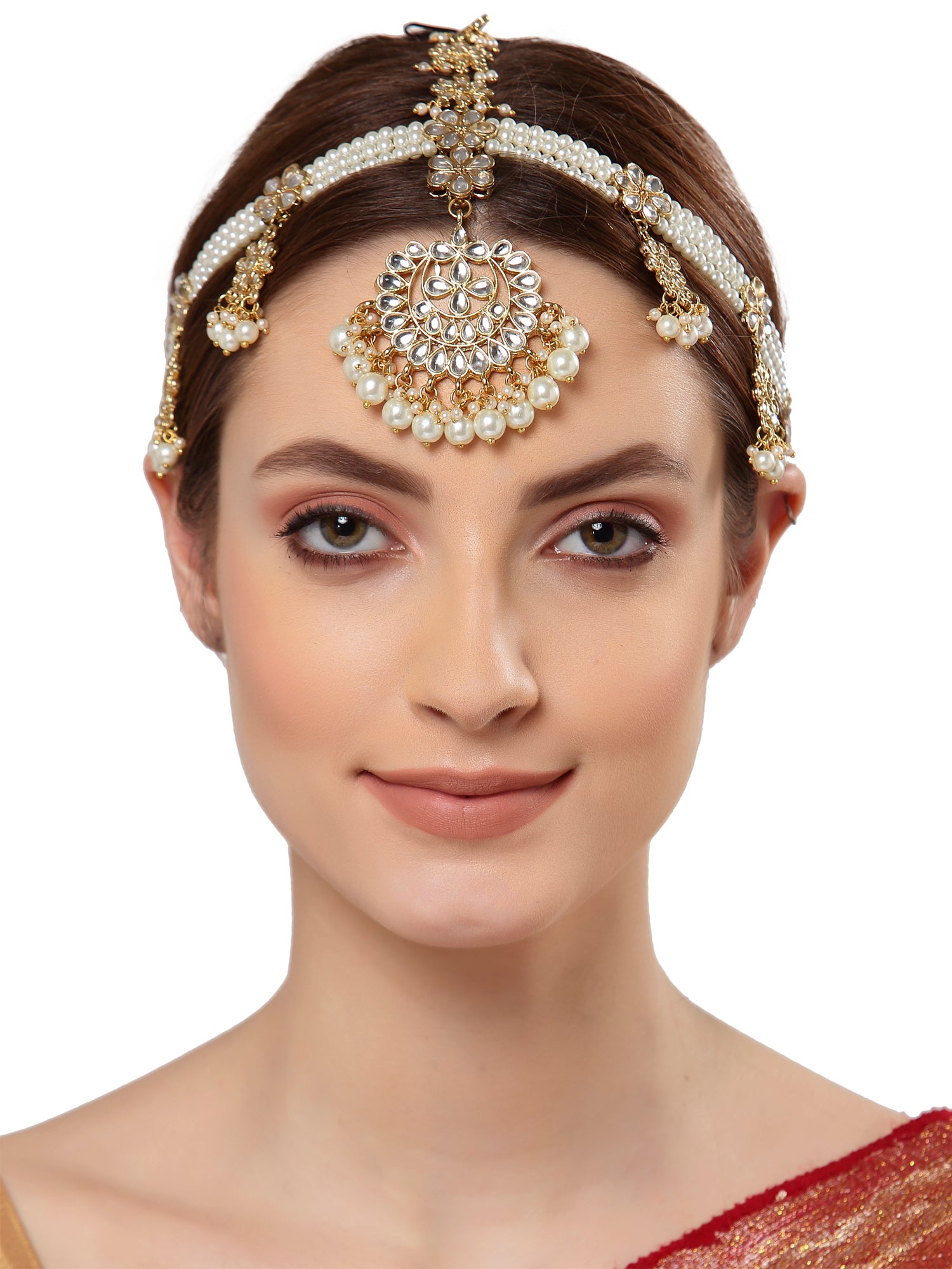 - Karatcart Gold Plated Kundan and Pearl Beaded Sheeshphool for Women. Made of High-Quality Metal Alloy as per International Standards which makes it very skin-friendly.