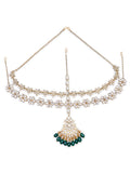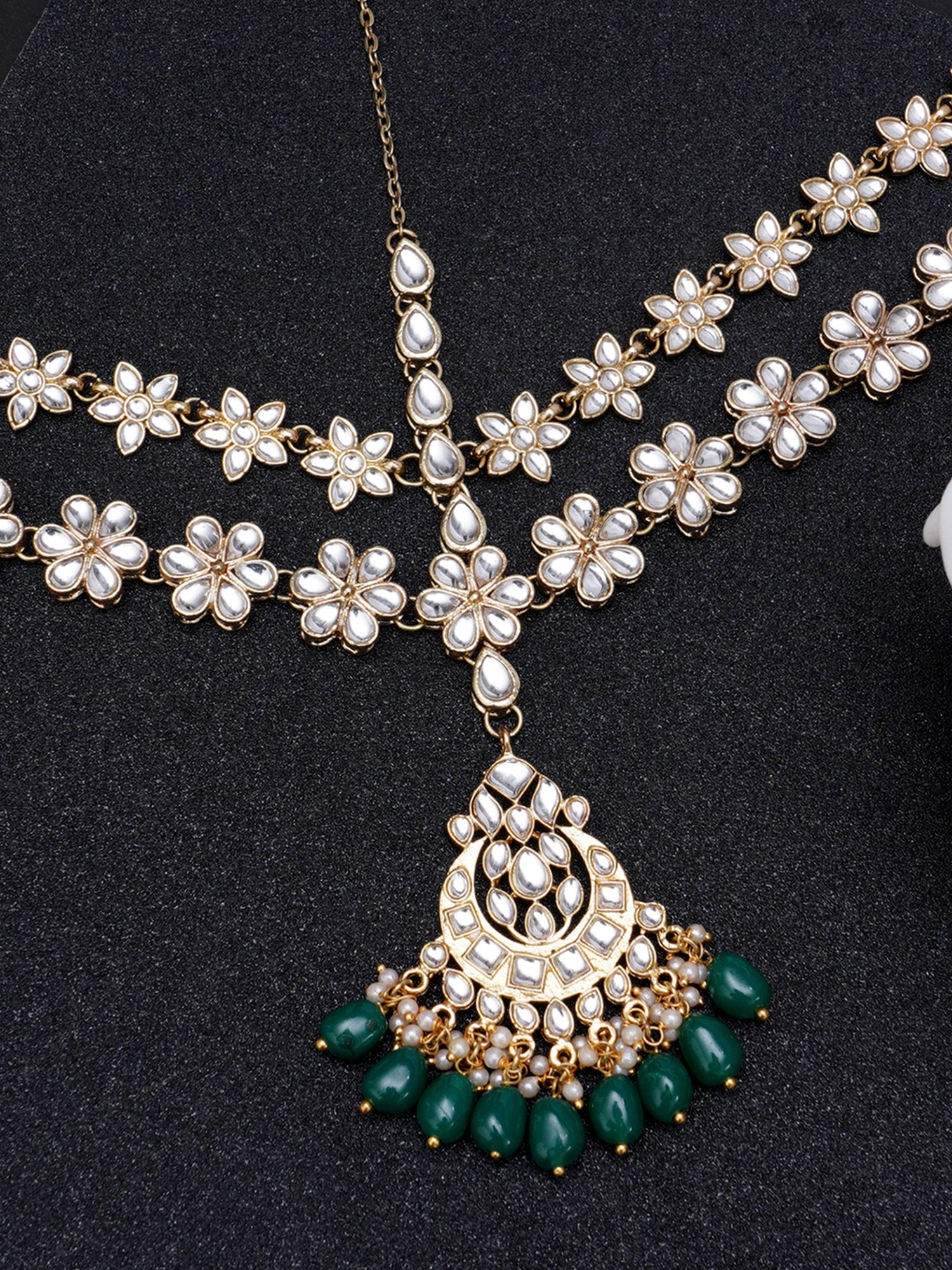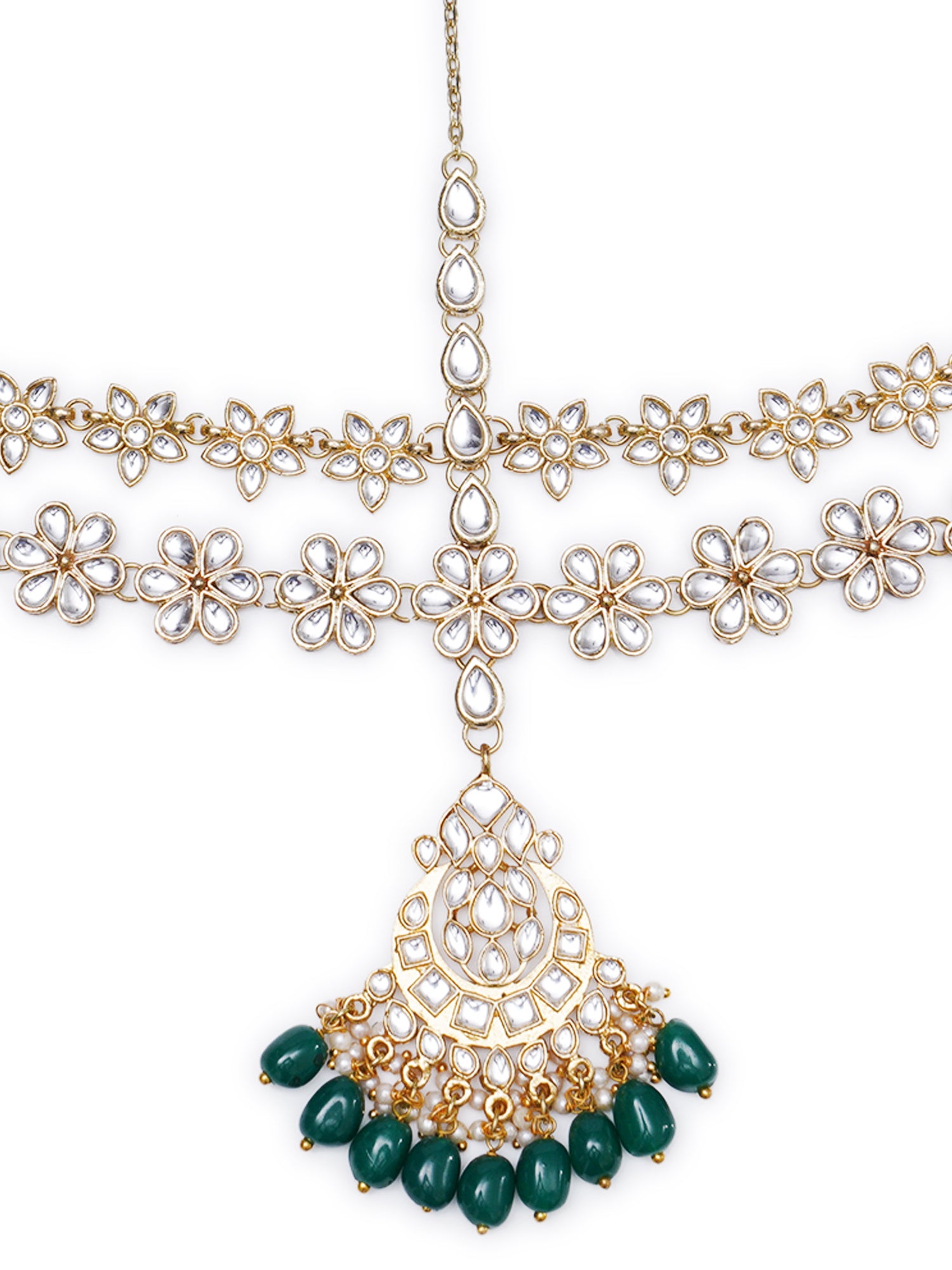 Gold Plated Green Tumble Stone Studded Handcrafted Kundan Sheeshphool