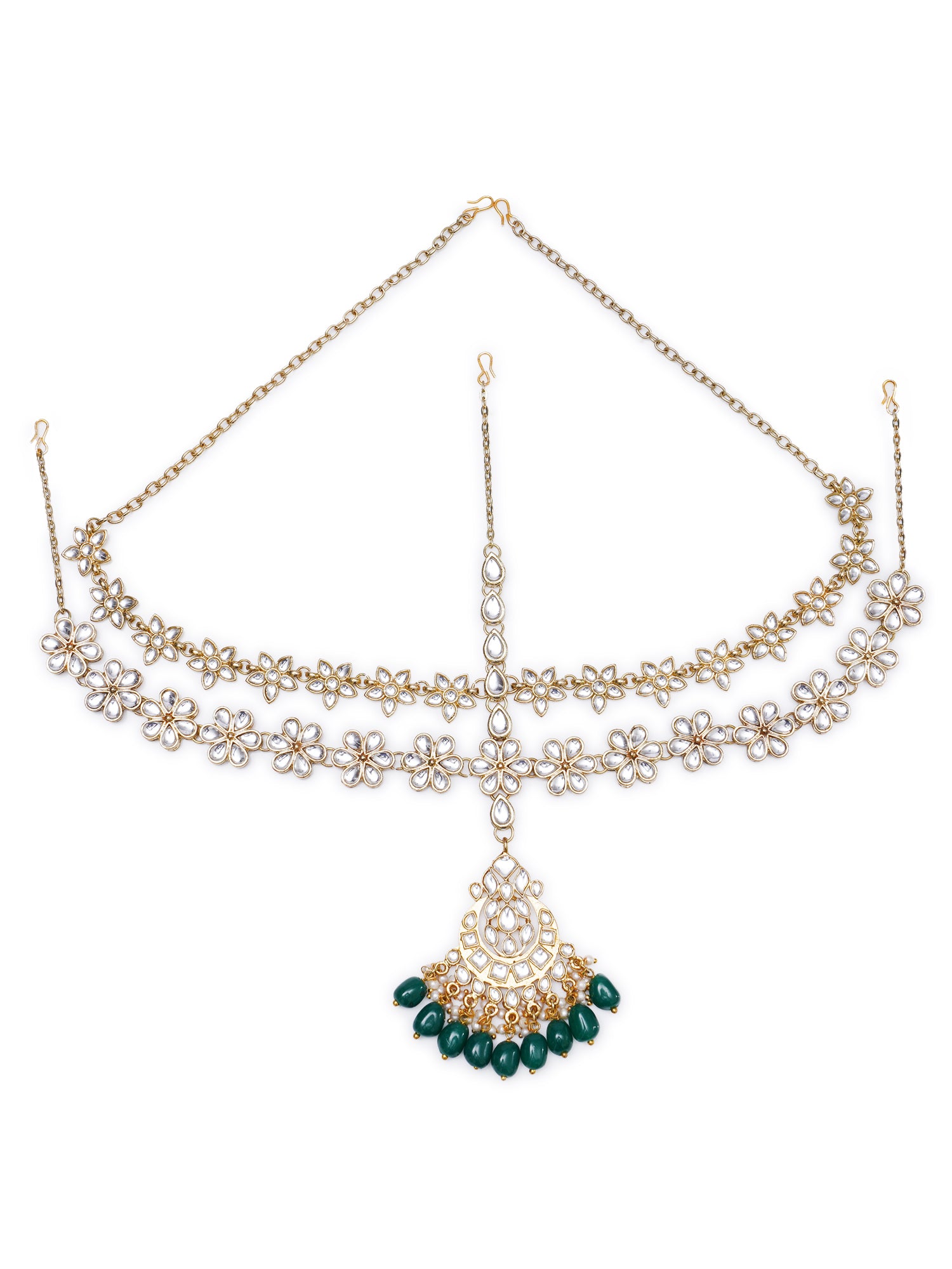 - Karatcart Gold Plated Green Tumble Stone Studded Handcrafted Kundan Sheeshphool. Made of High-Quality Metal Alloy as per International Standards which makes it very skin-friendly.