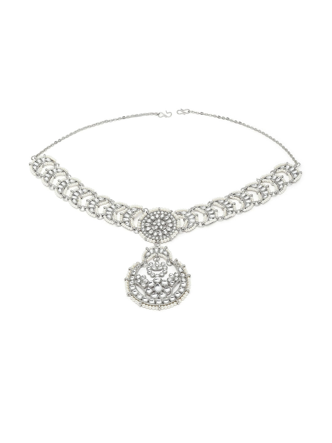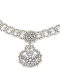 Oxidised Silver-plated white kundan-studded and beaded Sheeshphool, secured with a S-hook closure