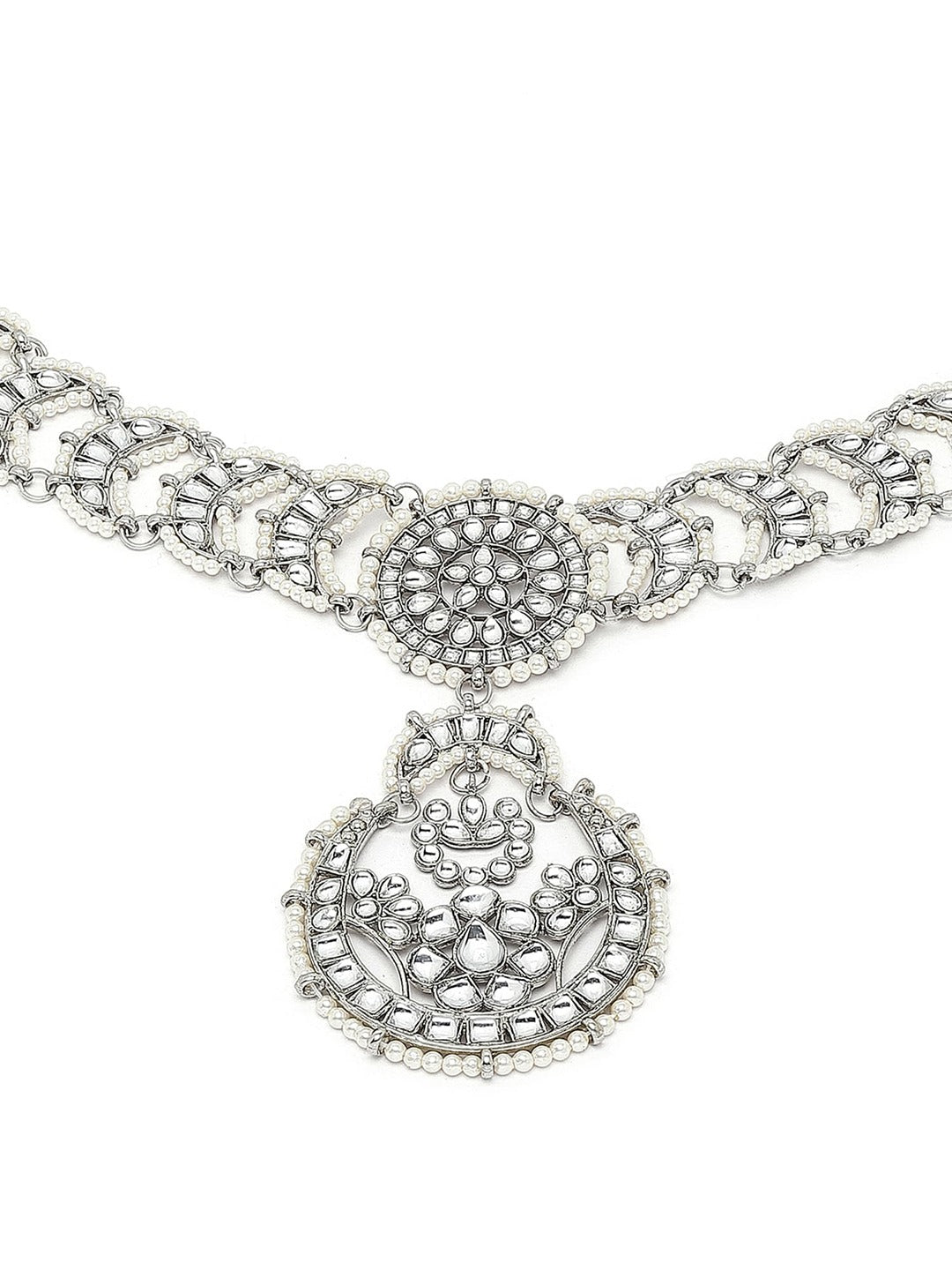 Oxidised Silver-Plated White Kundan-Studded & Beaded Sheeshphool