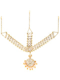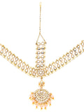 Karatcart Gold Plated Floral Shape Pink Beads Studded Handcrafted Kundan Mathapatti for Women
