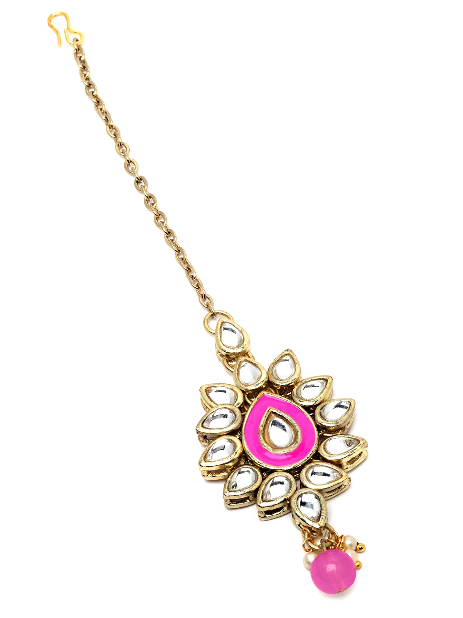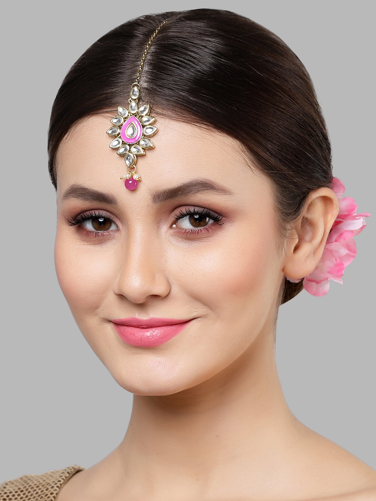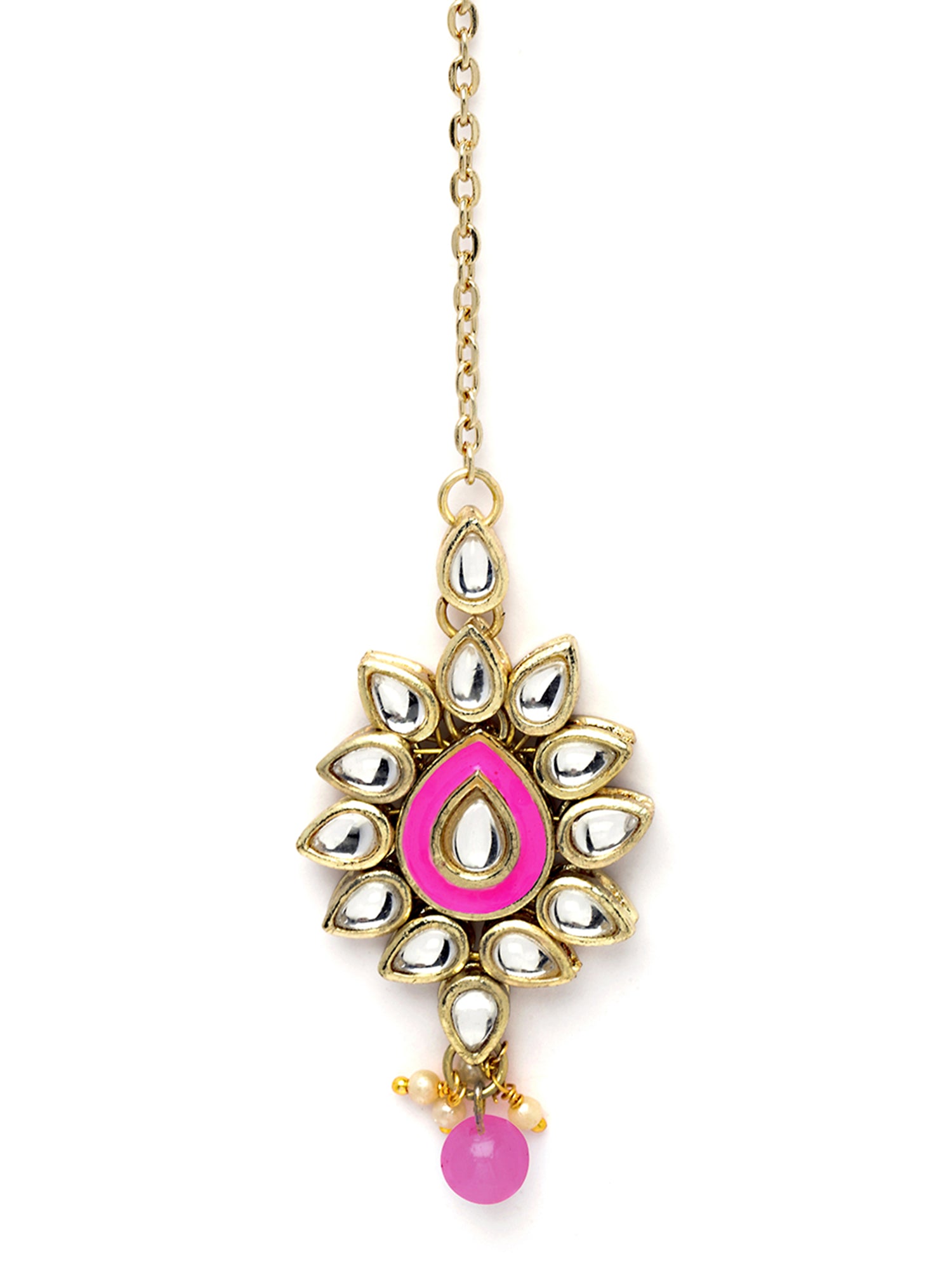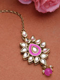 Karatcart Gold Plated Pink Meena Kundan Maangtikka for Women