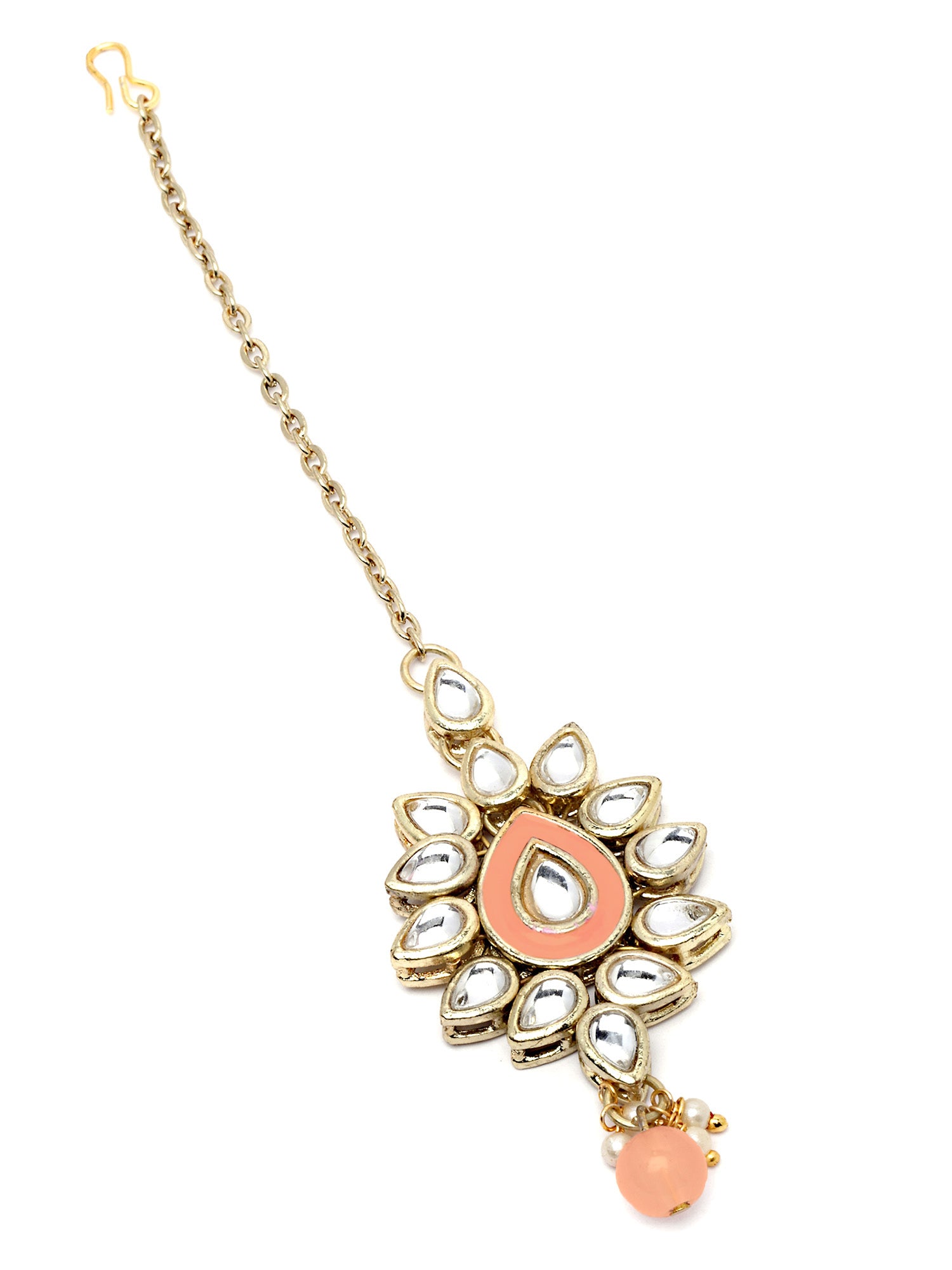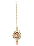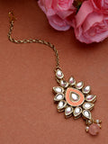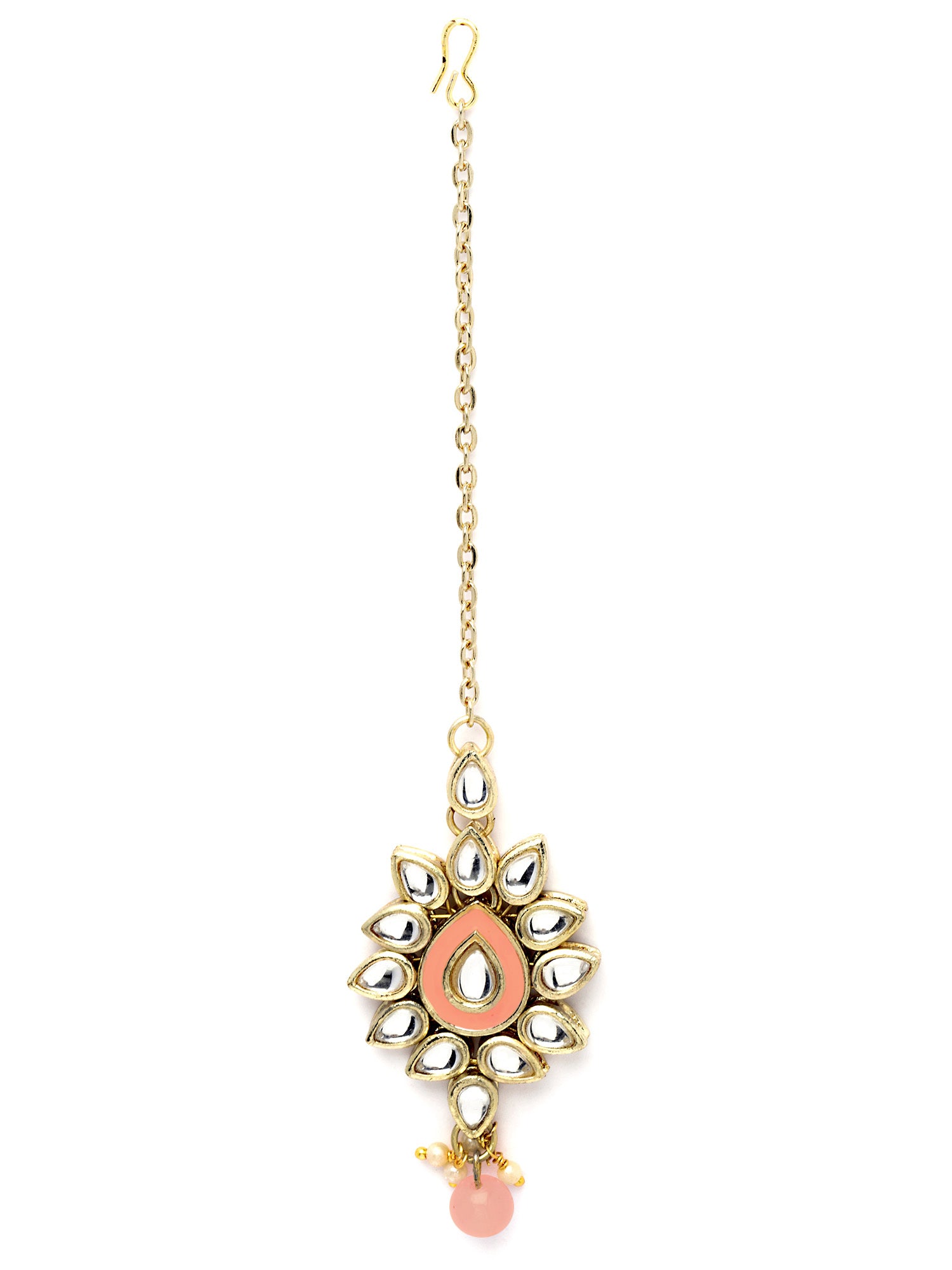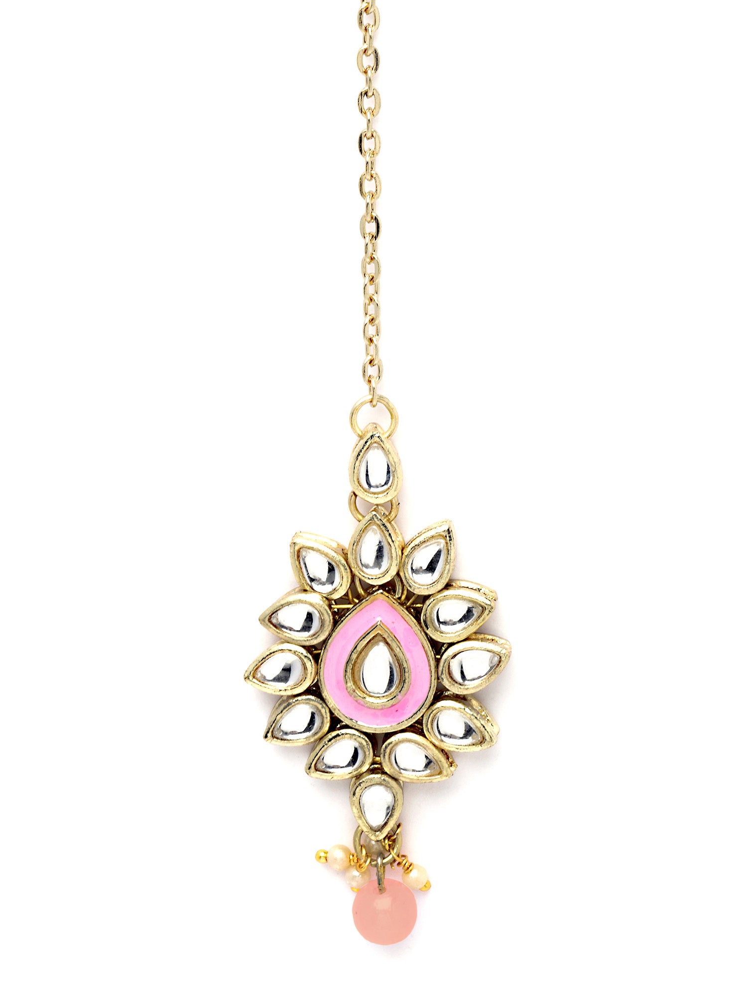 Karatcart Gold Plated Baby Pink Meena Kundan Maangtikka for Women