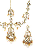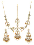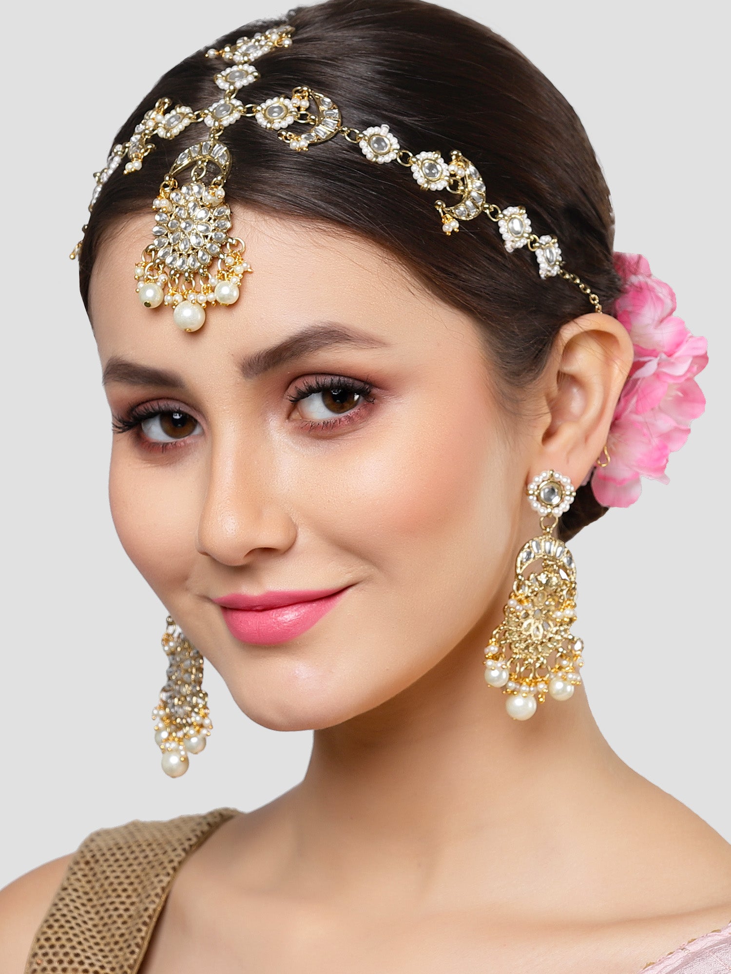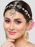 Karatcart Gold Plated Floral Kundan Earring and Mathapatti Set for Women
