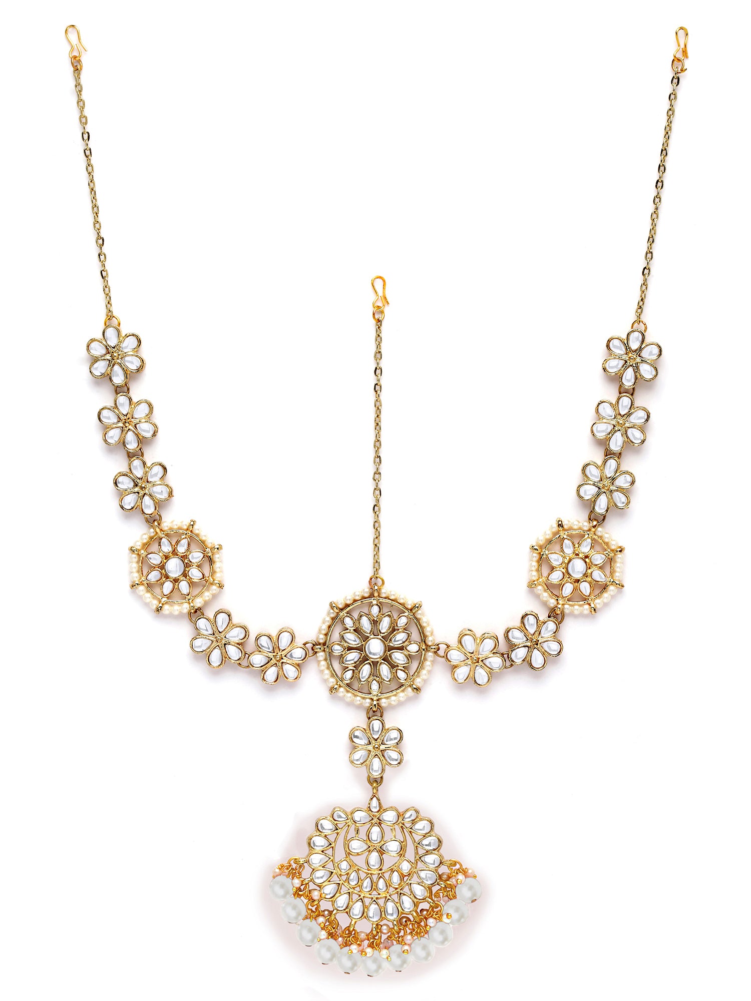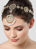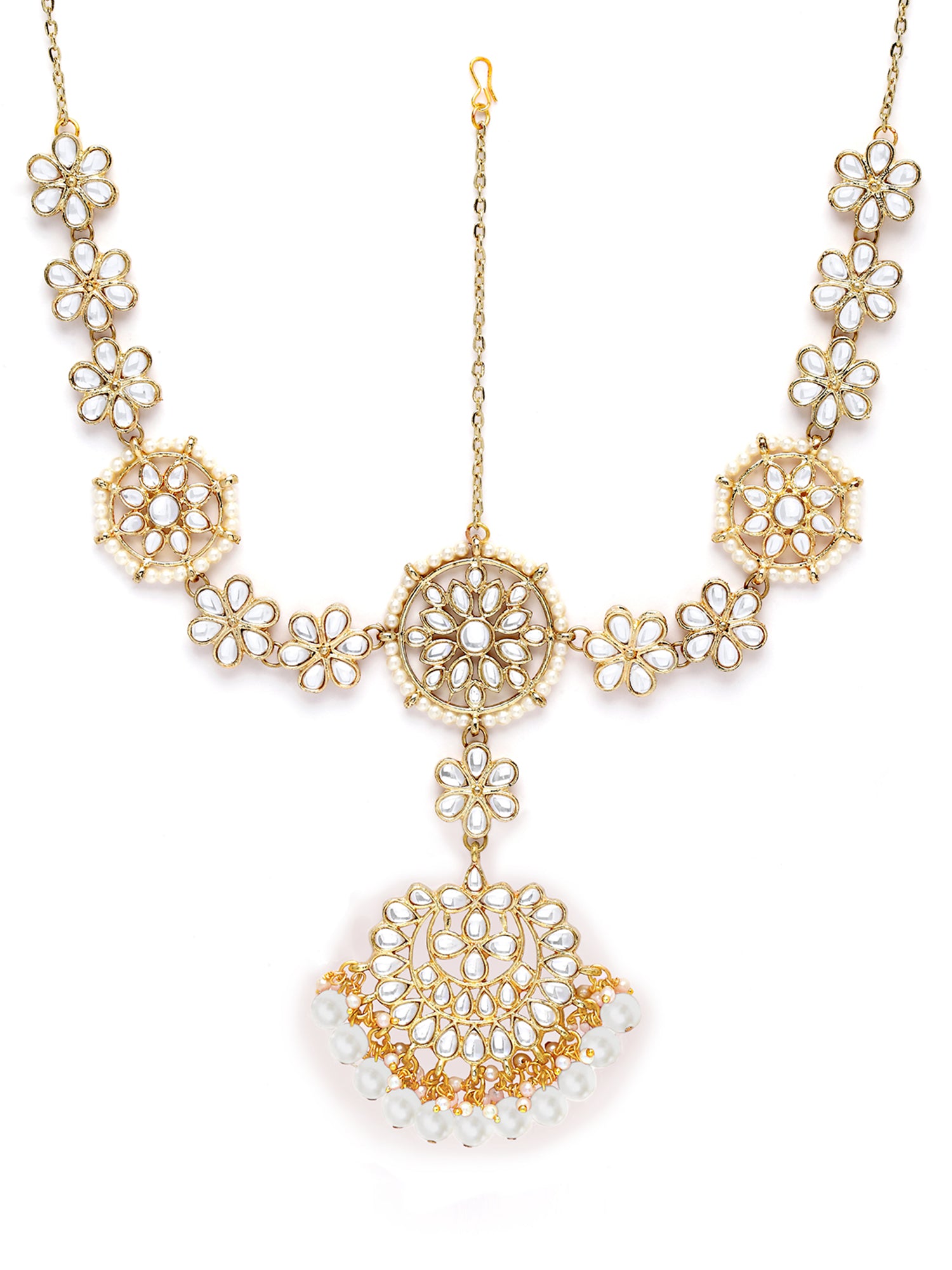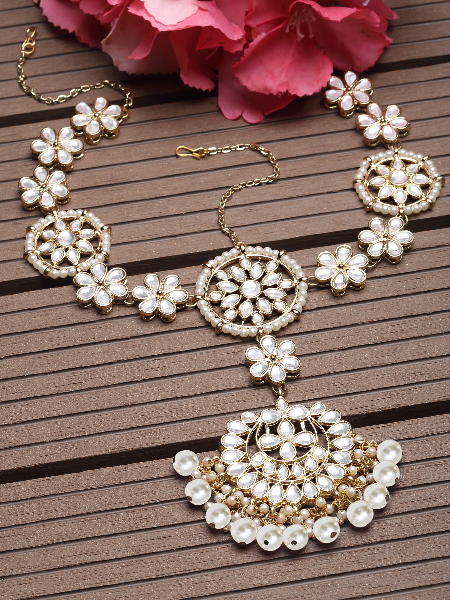 Karatcart Gold Plated Floral Pearl Beads Kundan Mathapatti for Women