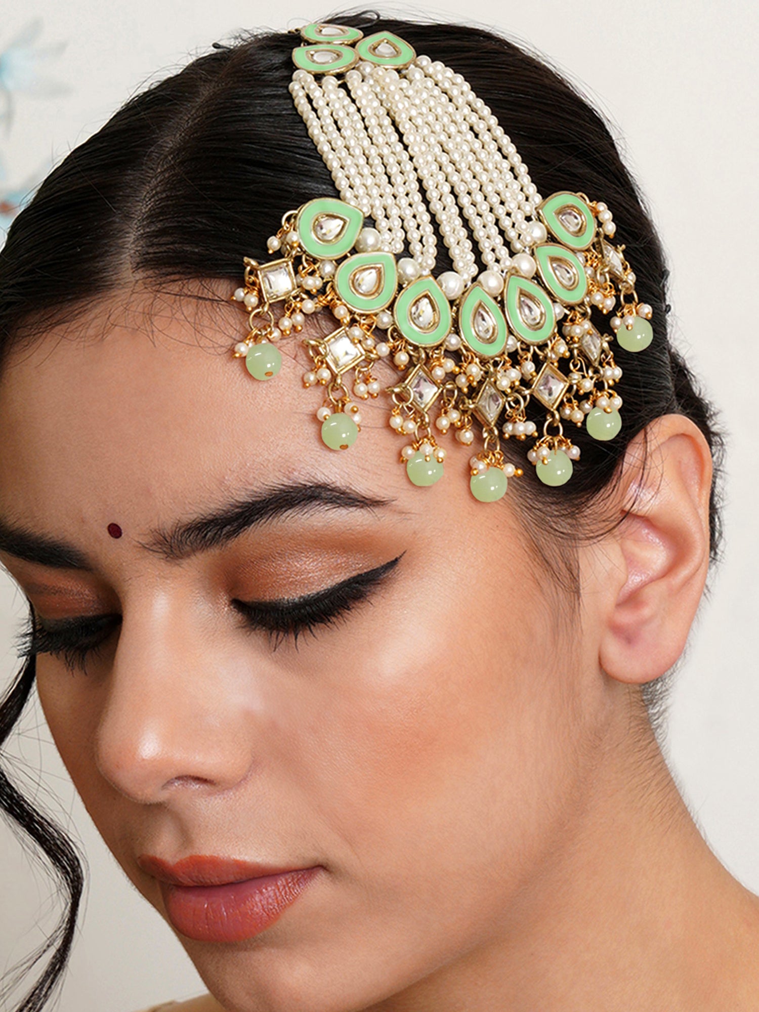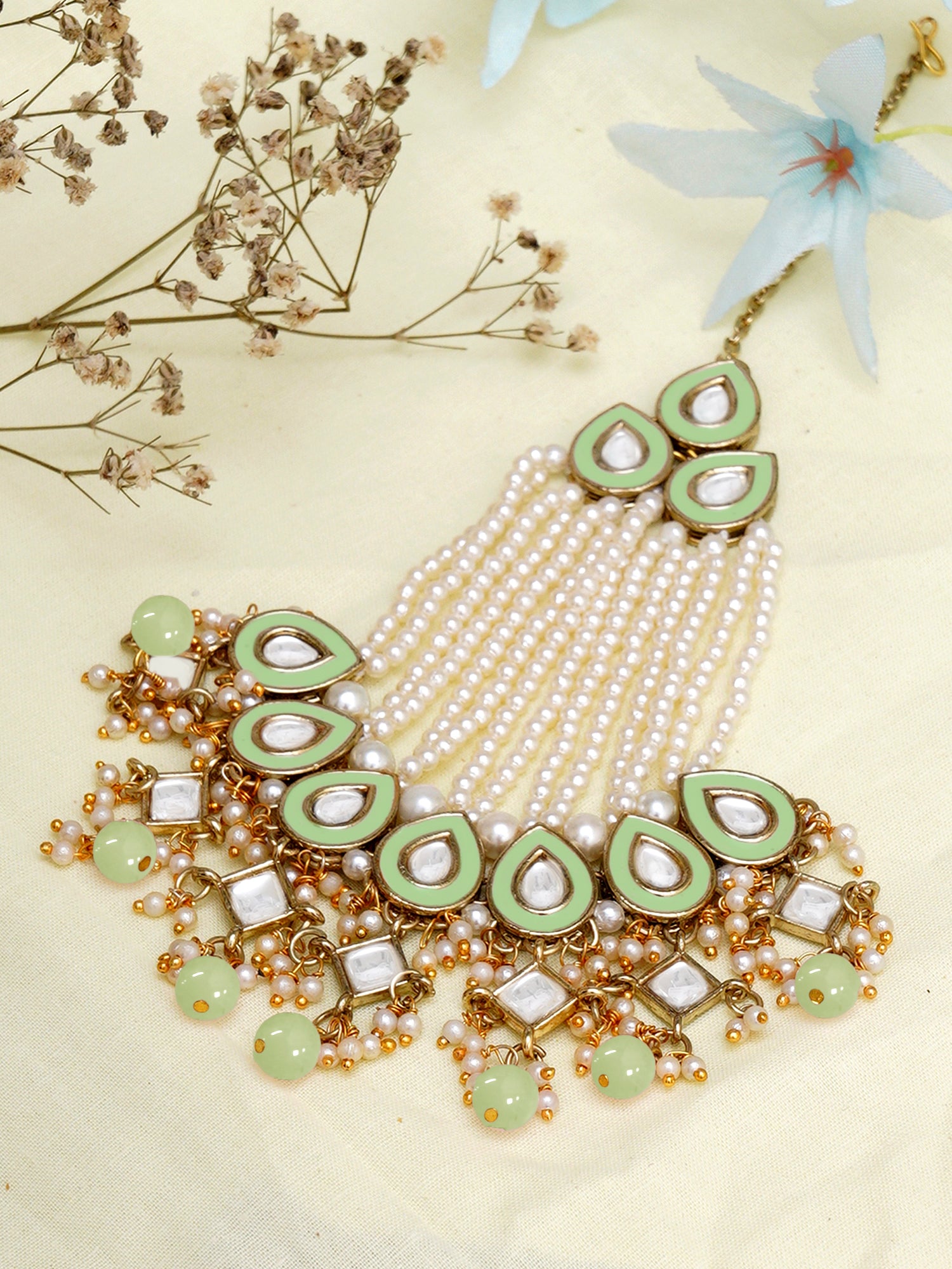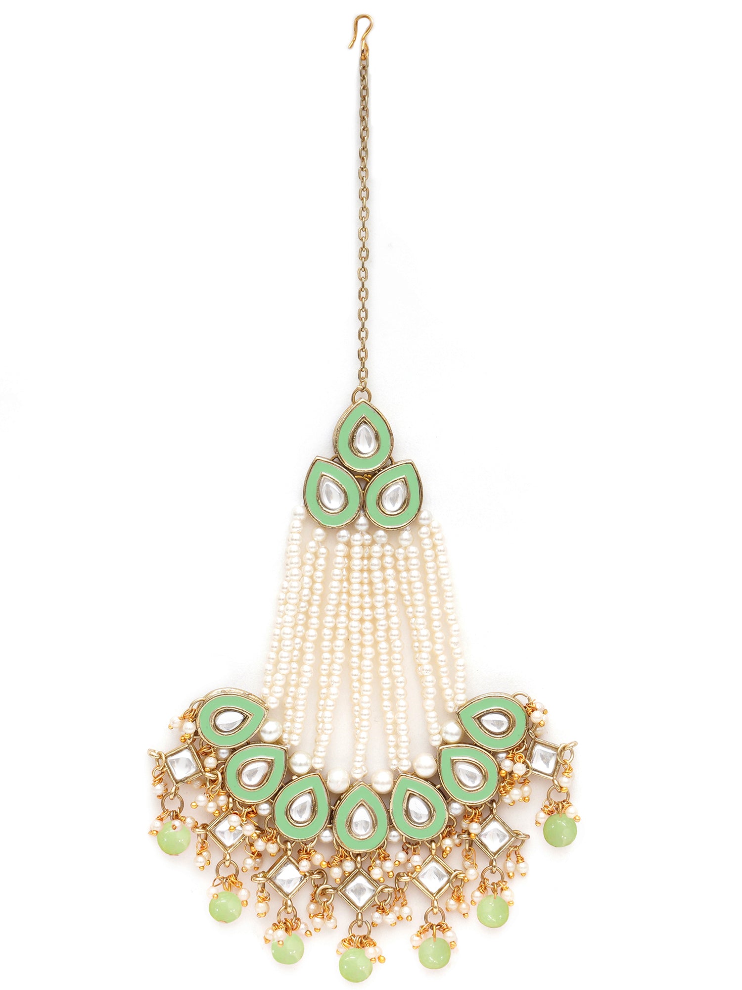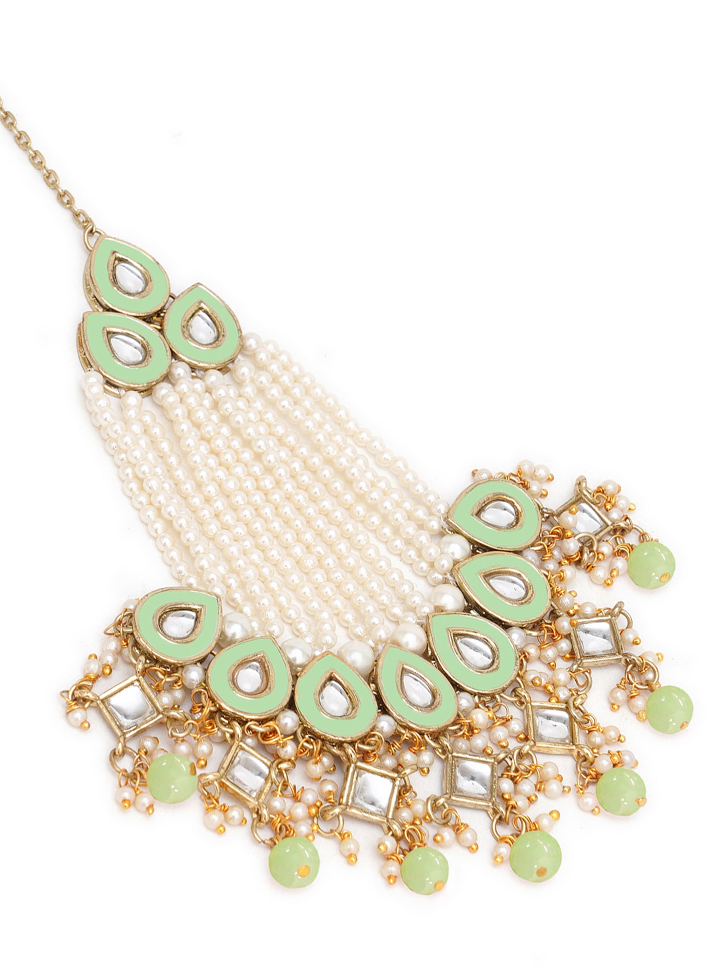 Karatcart Gold Plaated Light Green Meena and Beads Studded Kundan Passa for Women