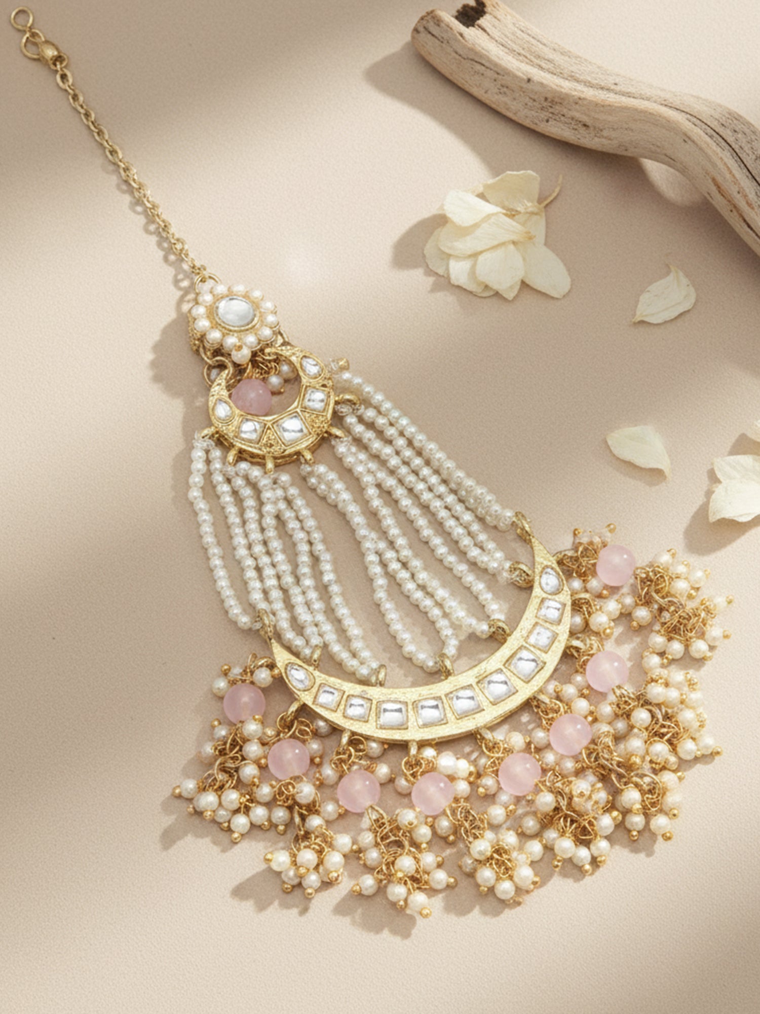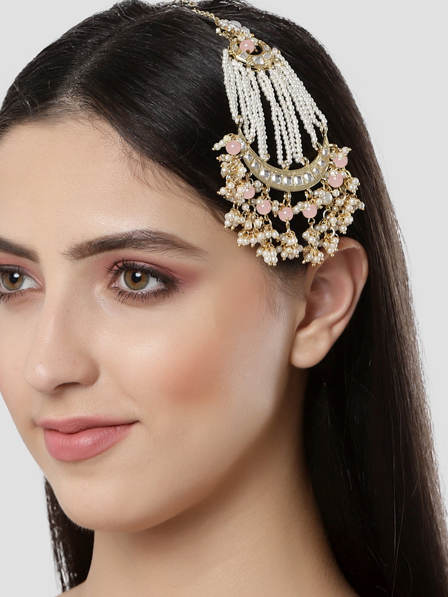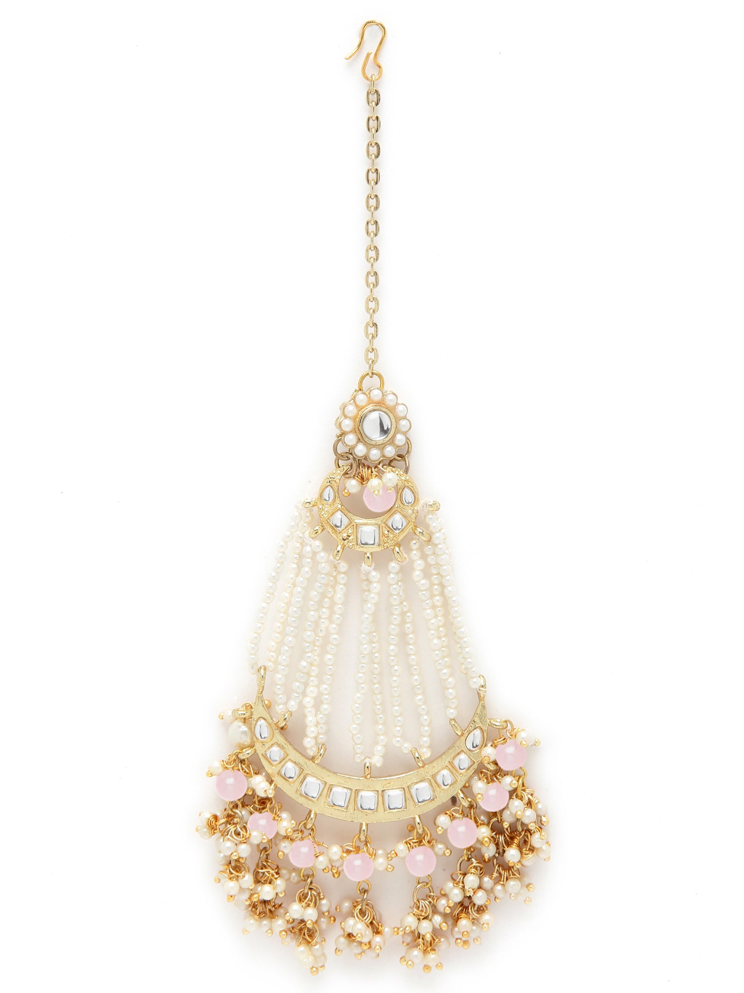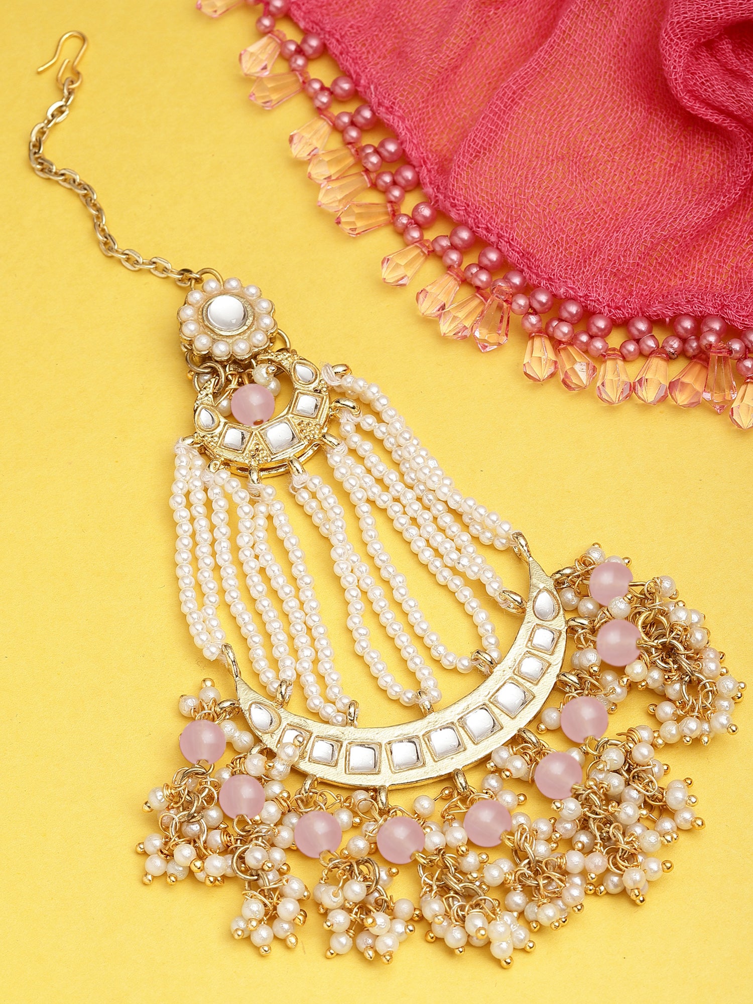 Karatcart Gold Plated Handcrafted Pink Bead Kundan Passa for Women