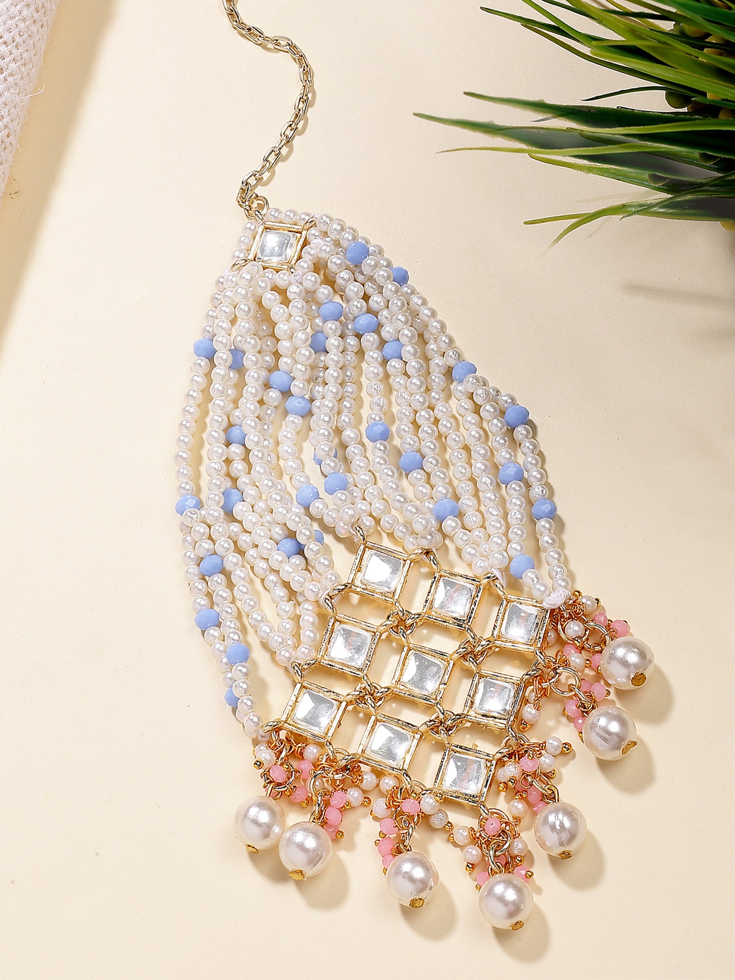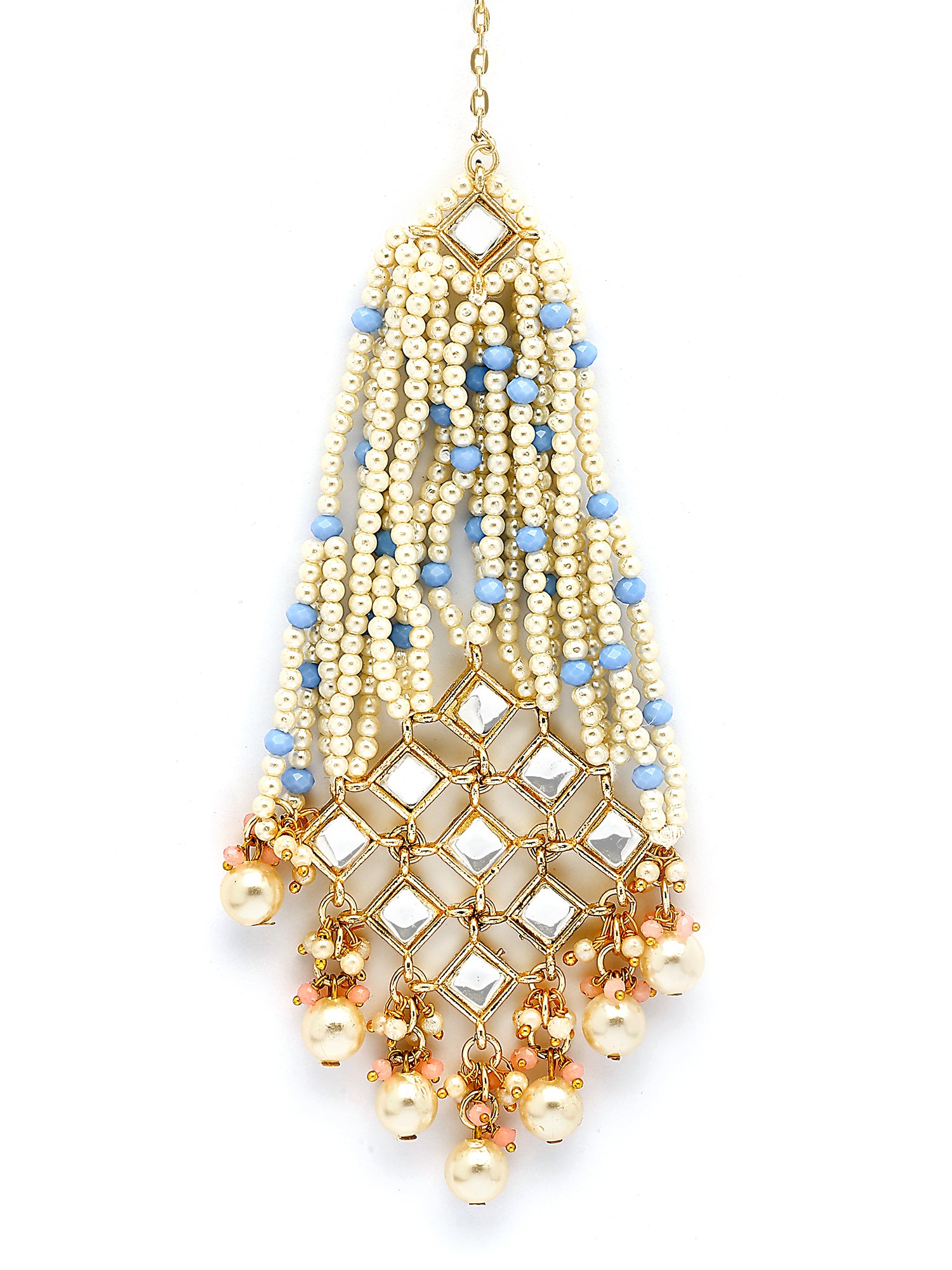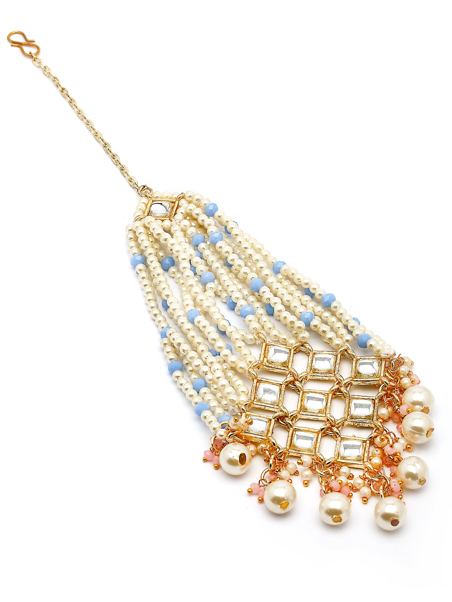 Karatcart Designer Blue Crystal and Pearl Beaded Kundan Passa for Women