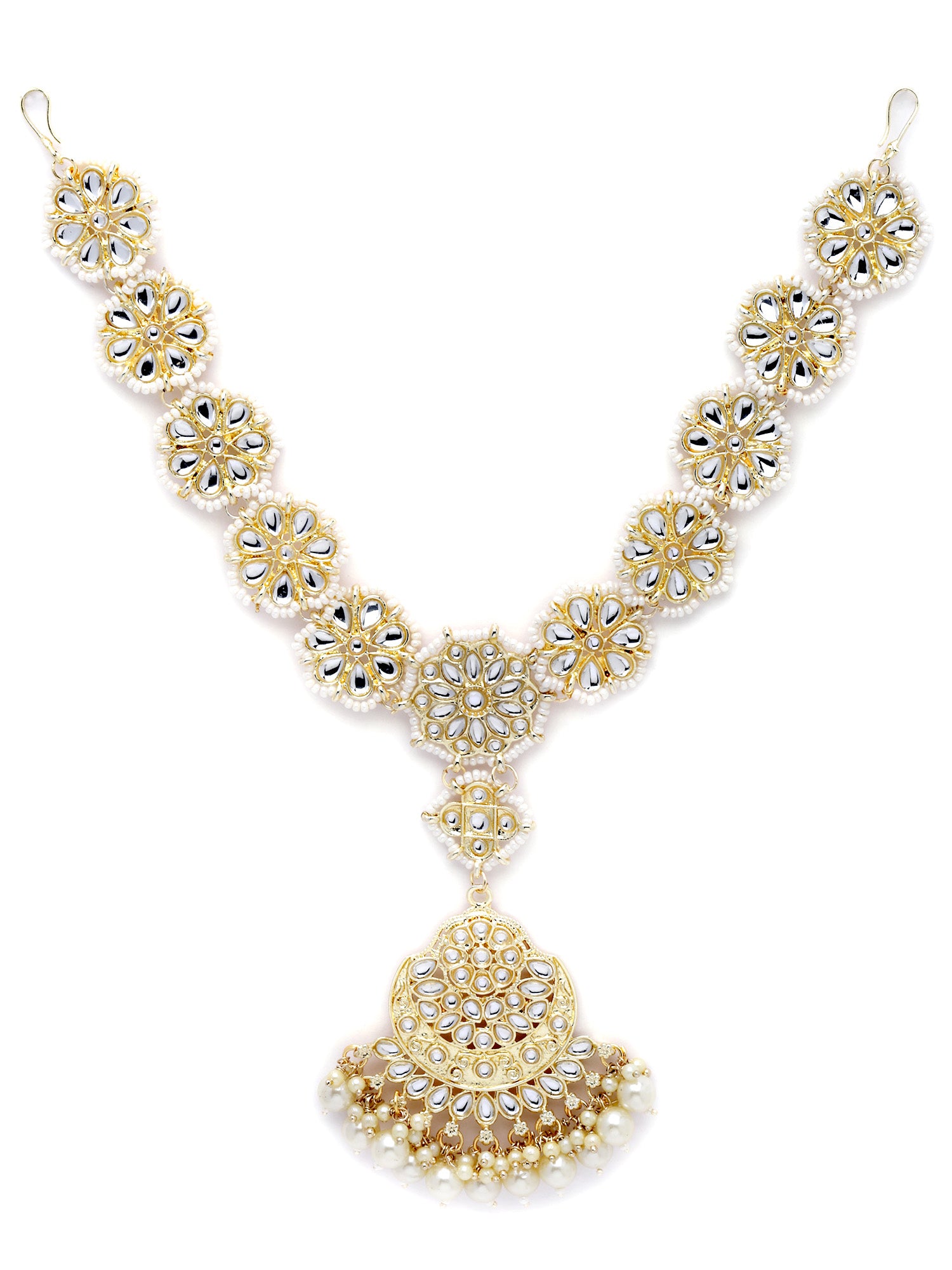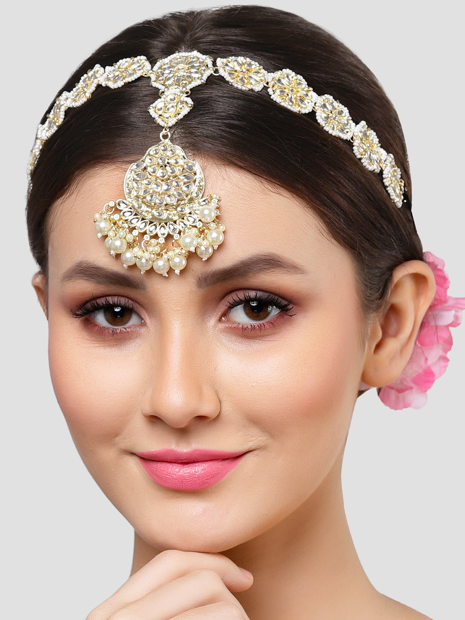 Karatcart Gold Plated Pearl Studded Kundan Sheeshphool for Women