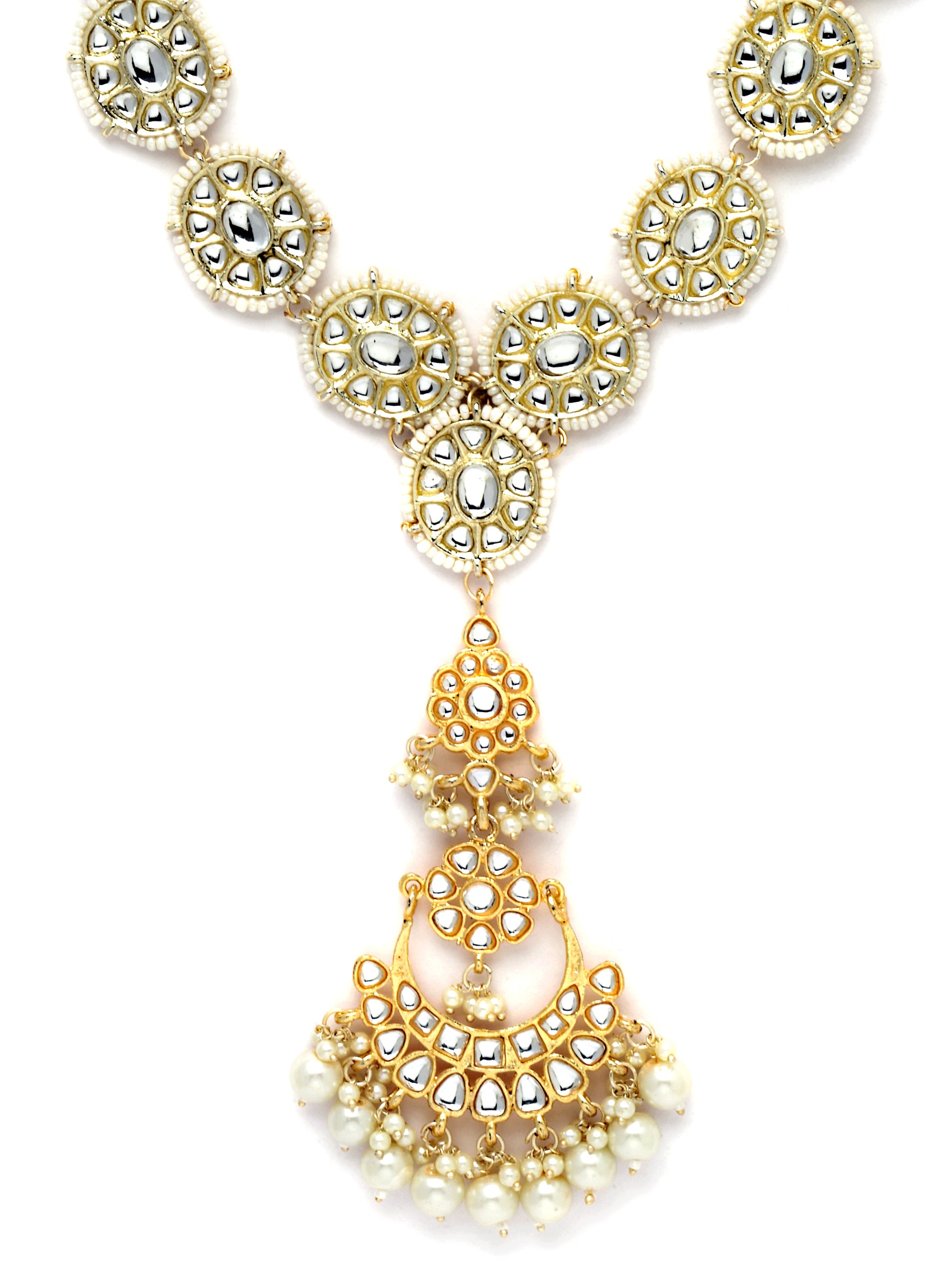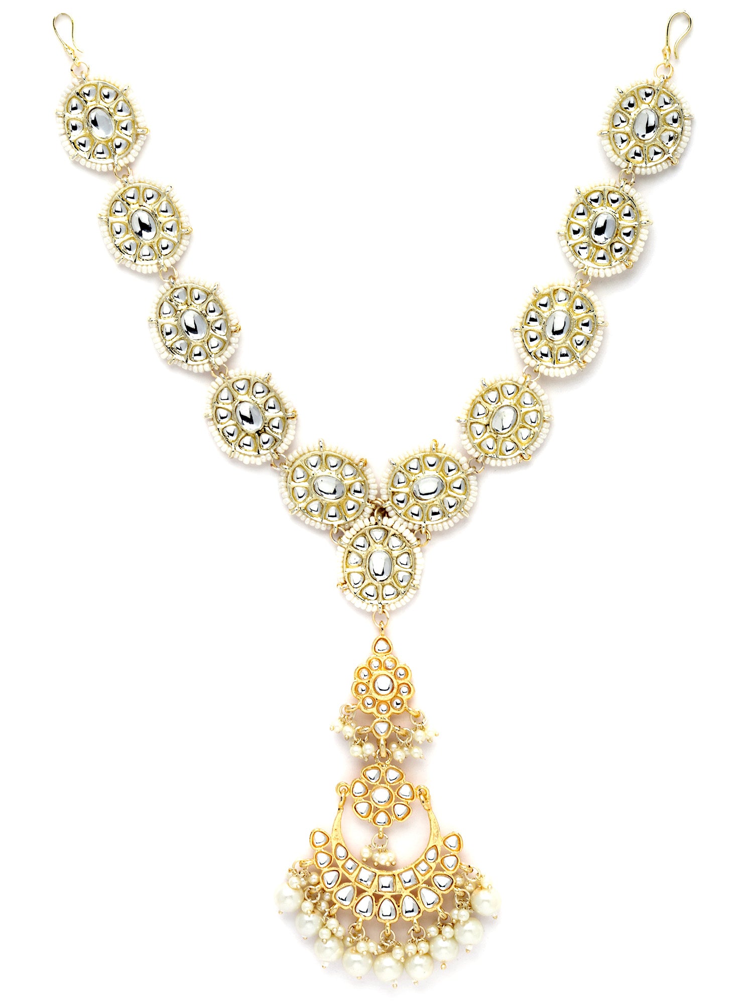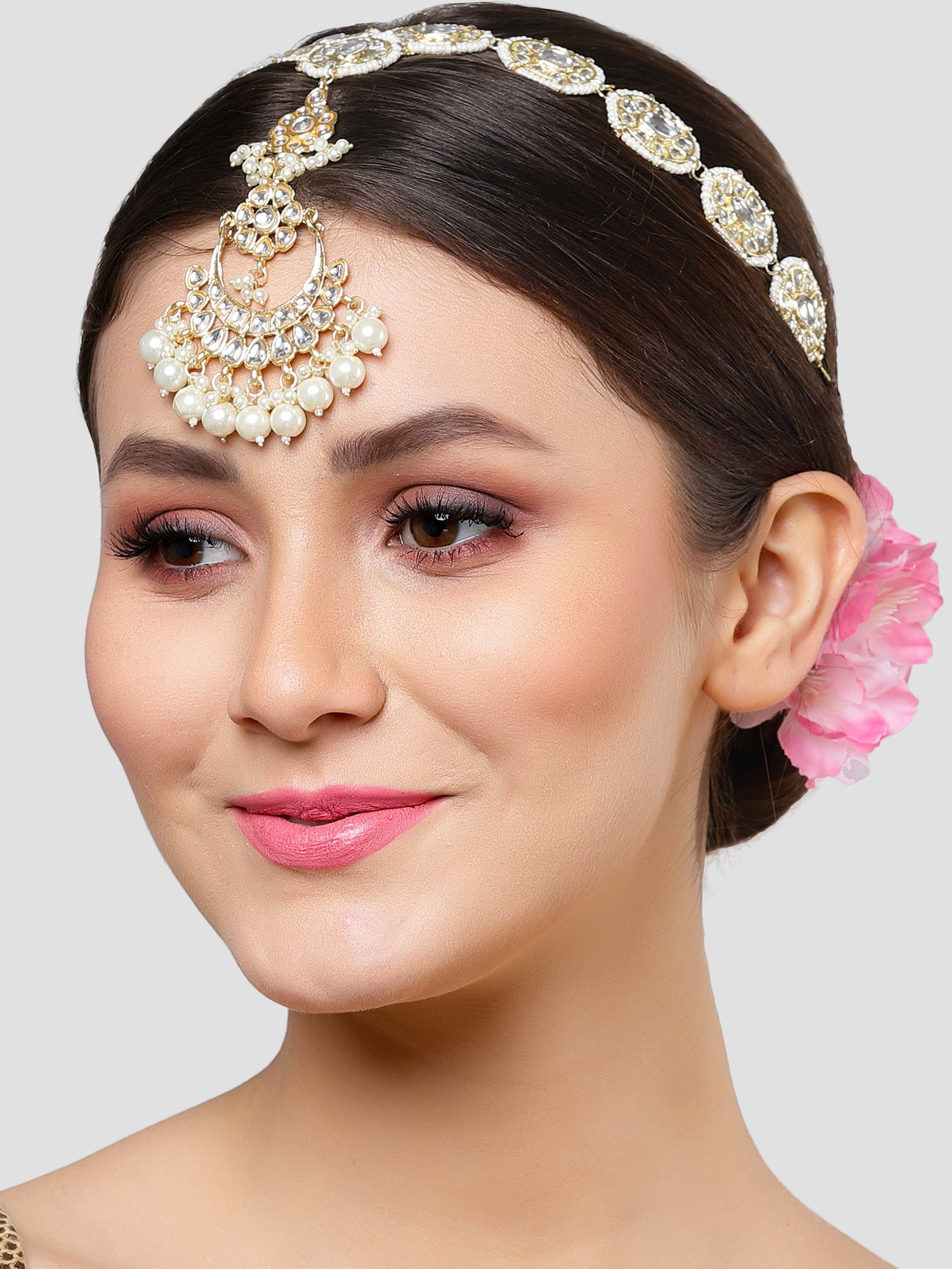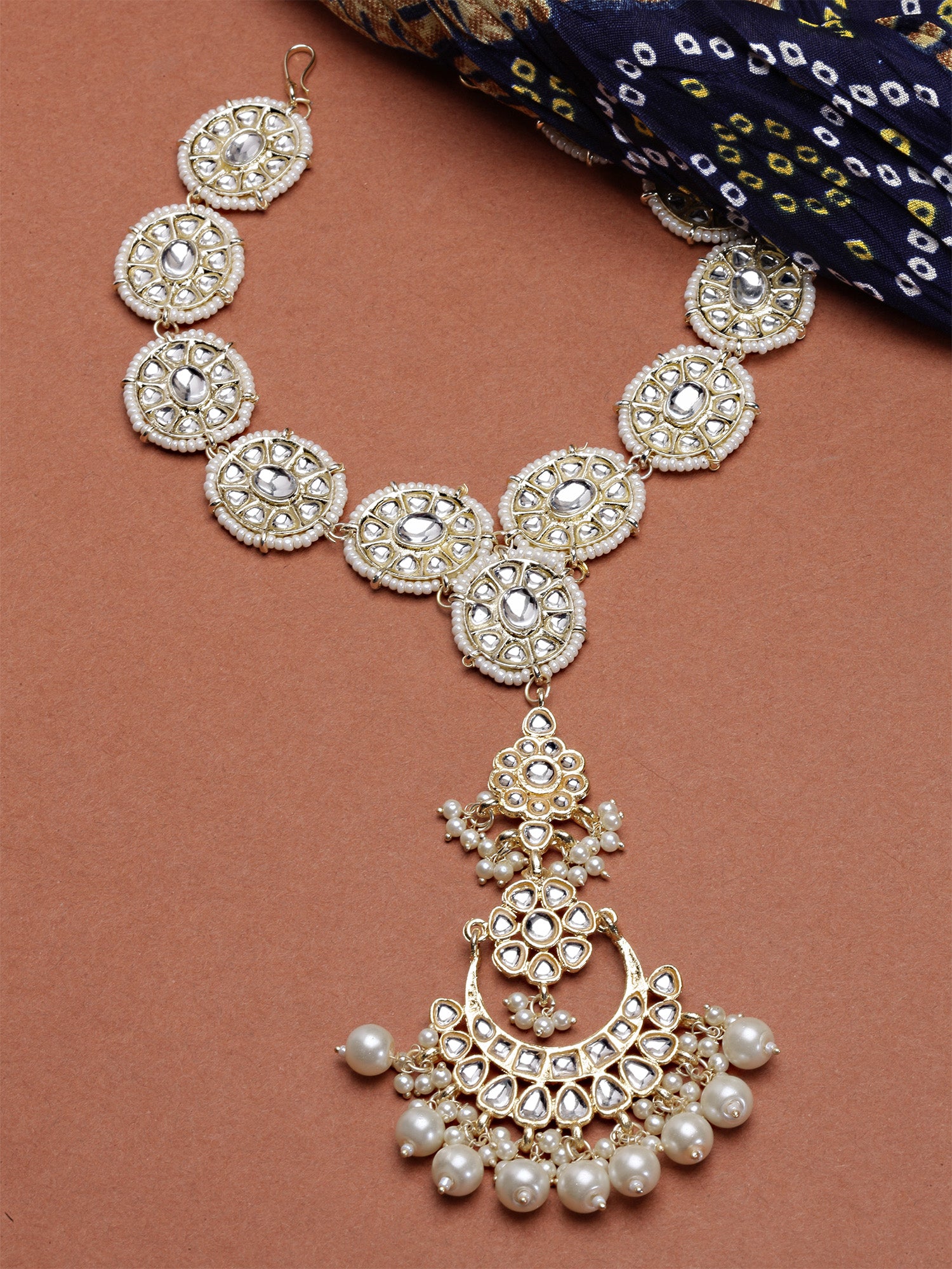 Karatcart Gold-Plated Kundan Studded & Pearl Beaded Sheeshphool