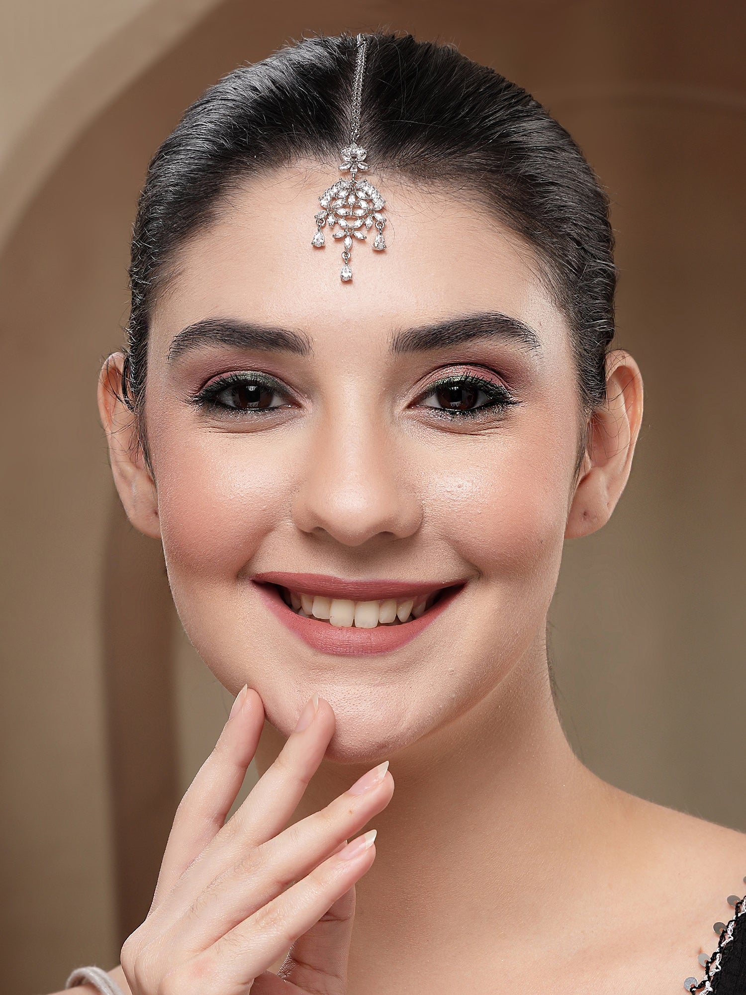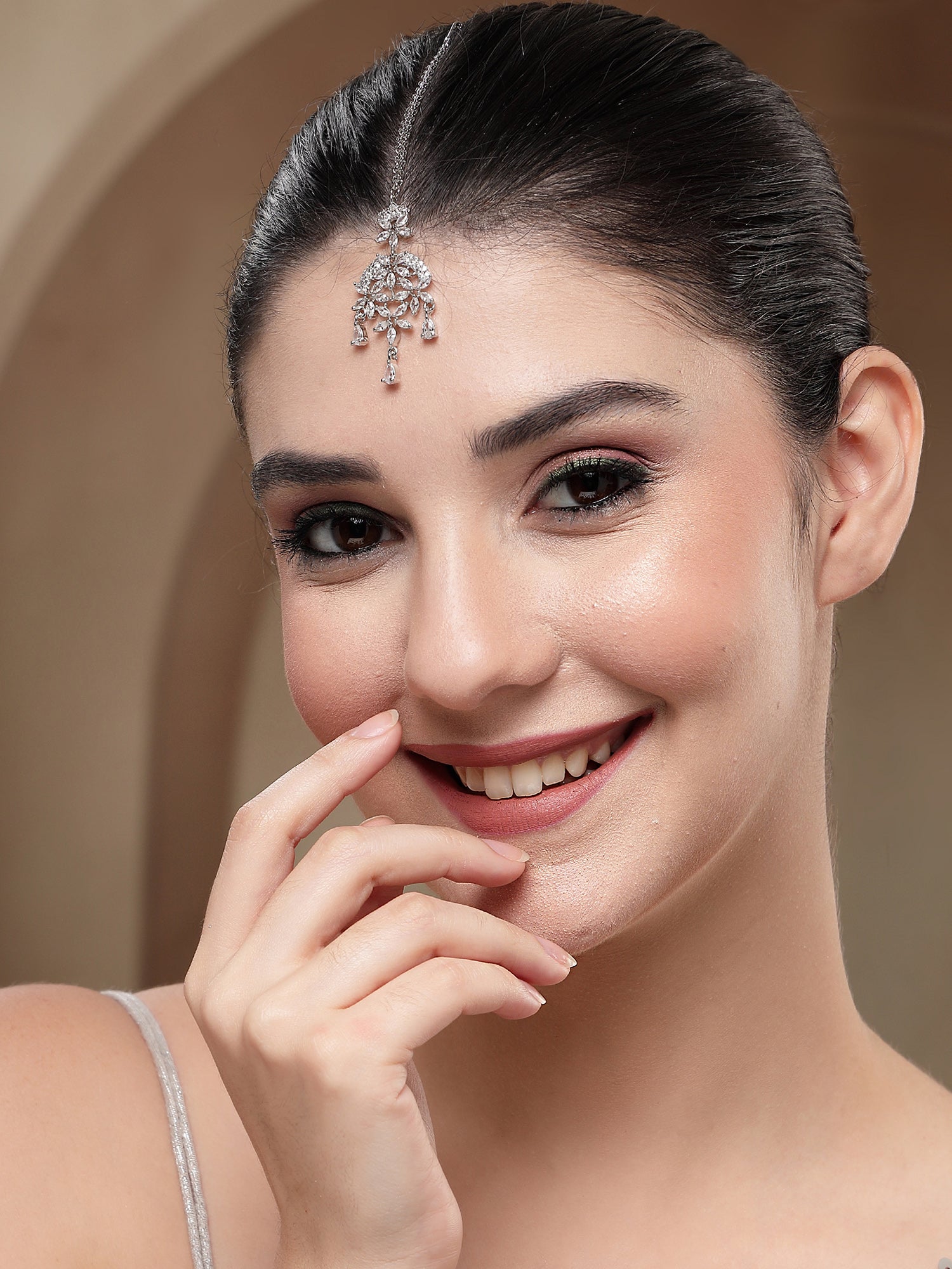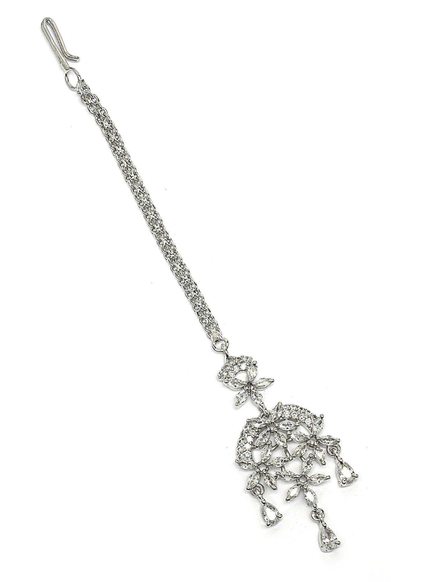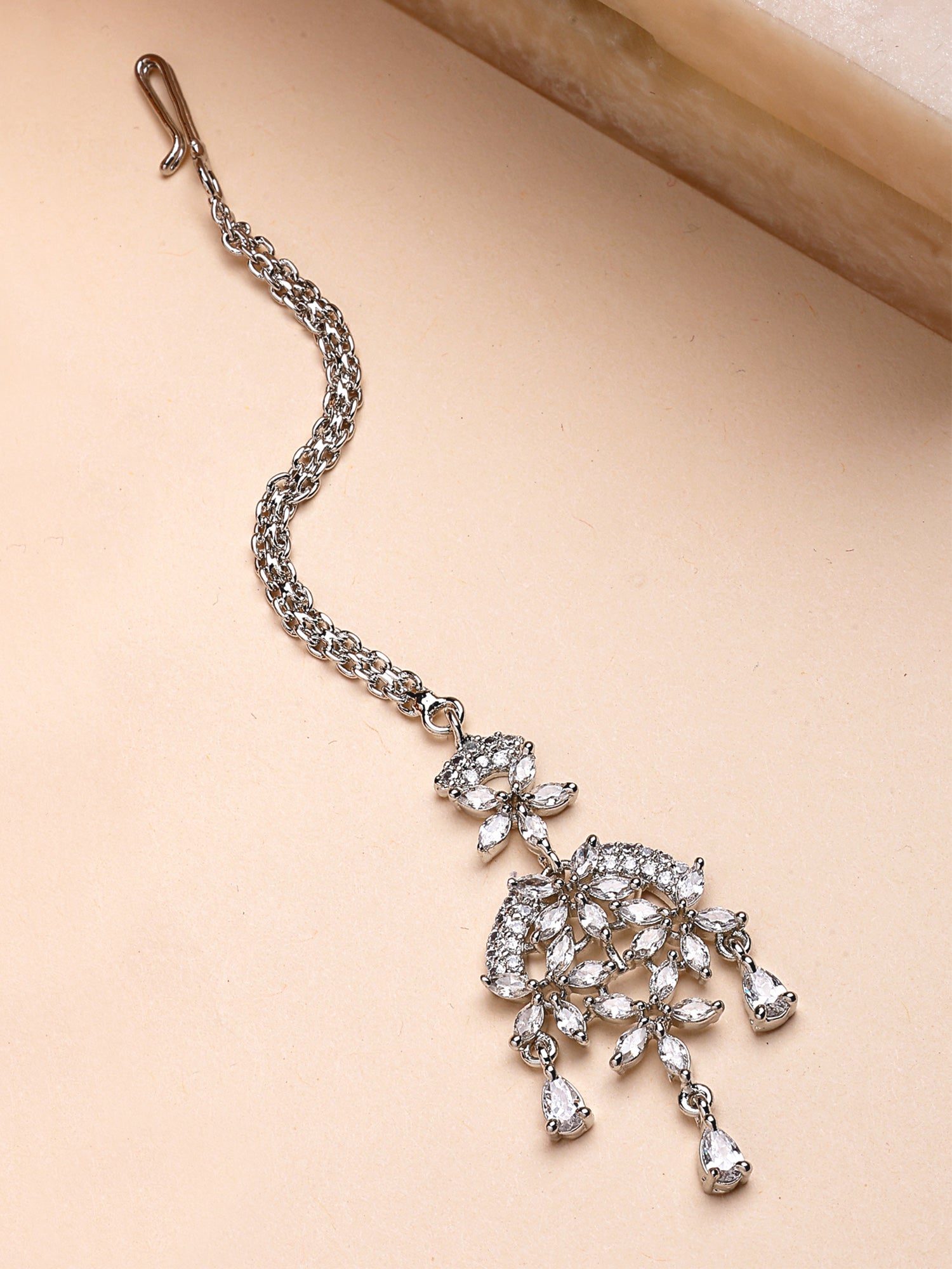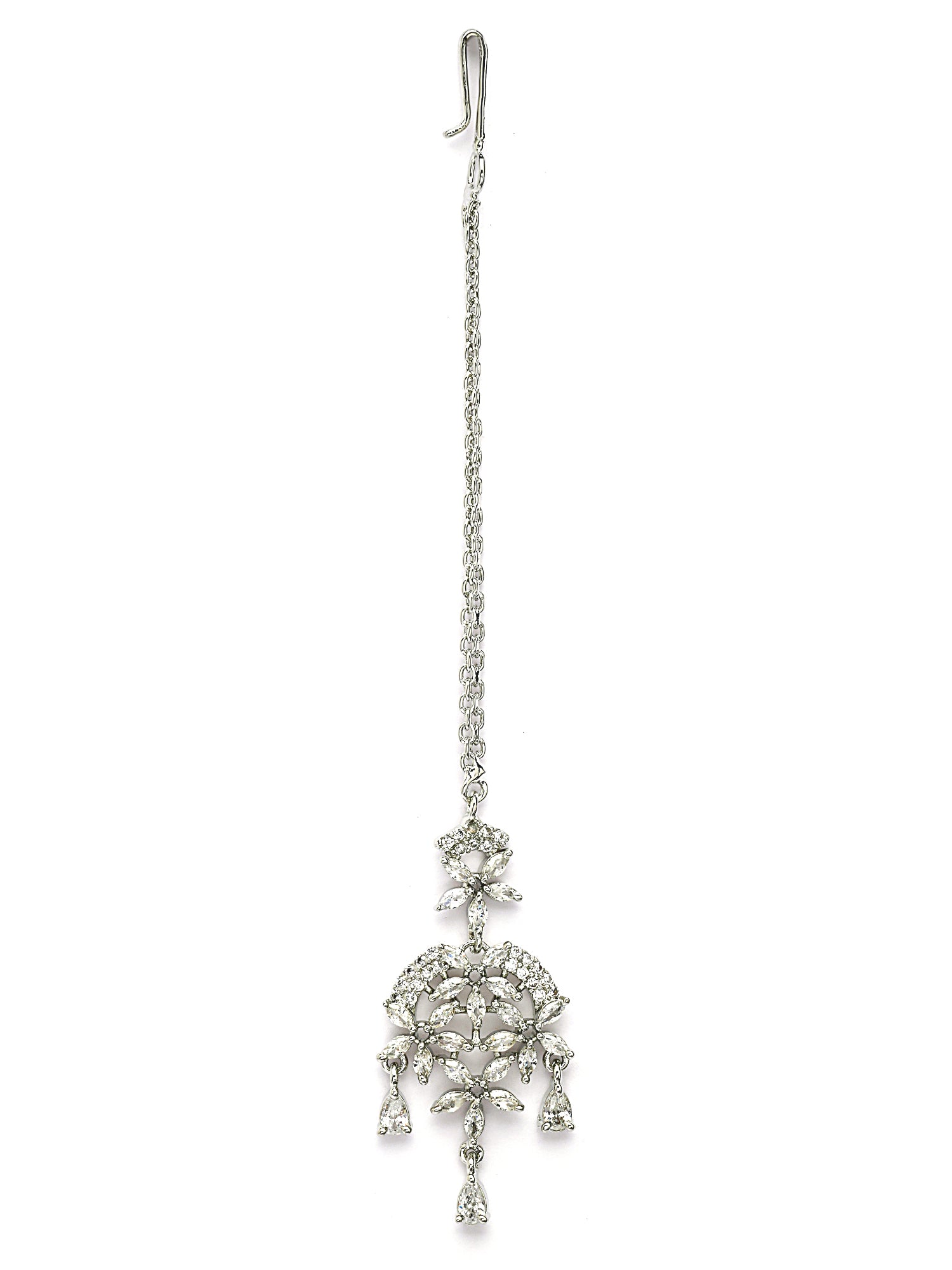 KARATCART Delicate Silver-Plated Lightweight American Diamond Maangtikka for Women