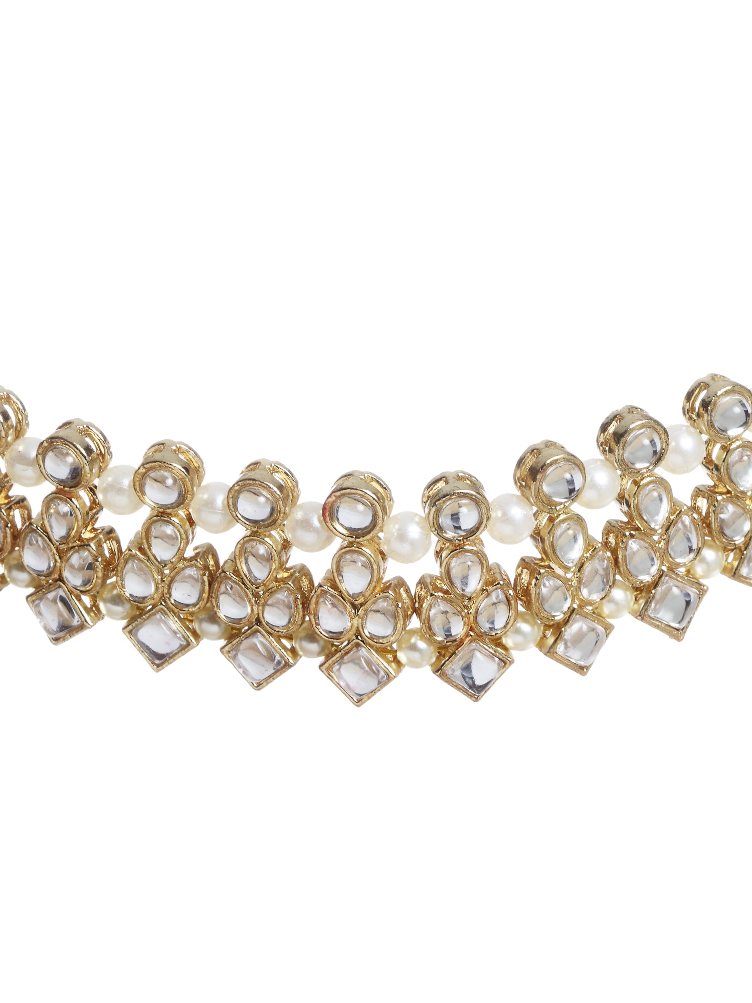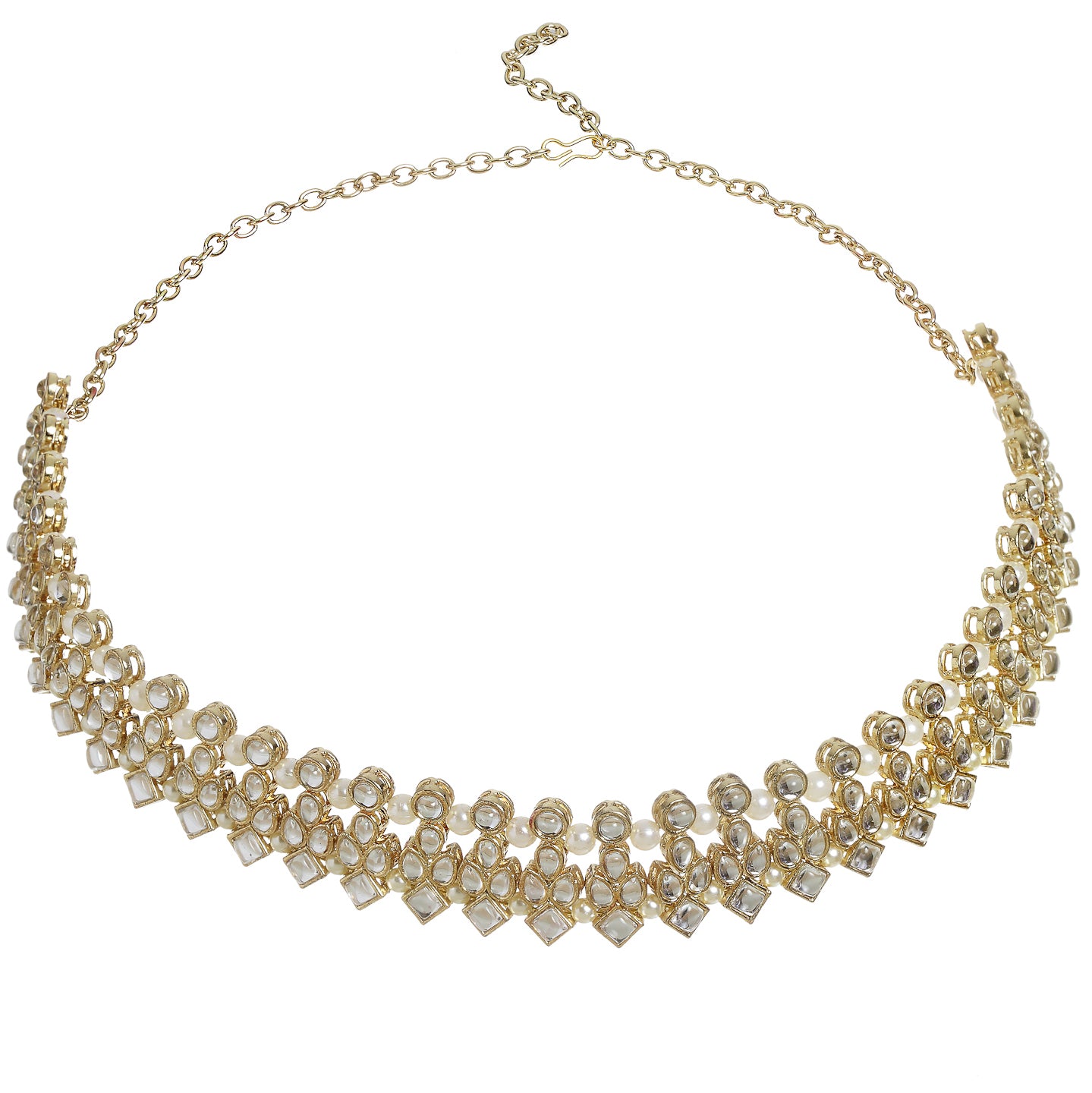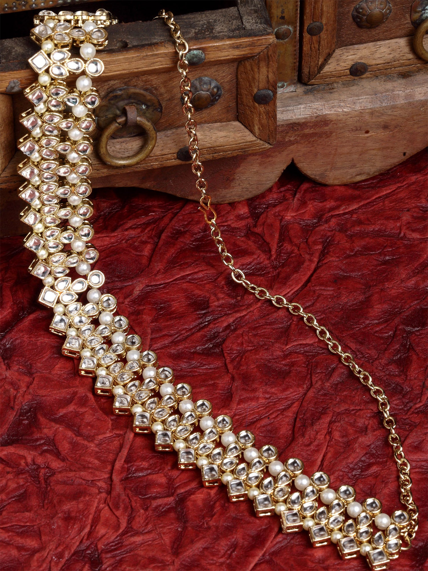- Gold-Plated Kundan Studded Enamelled Hairband. Pearl Embedded Glossy Finish Kundan Hairband for Women's. Intricate high polish creates glamorous reflections and adds a luxurious look. Perfect for Weddings, Festivals, Traditional Occasions. Best when paired with any Indian outfit.