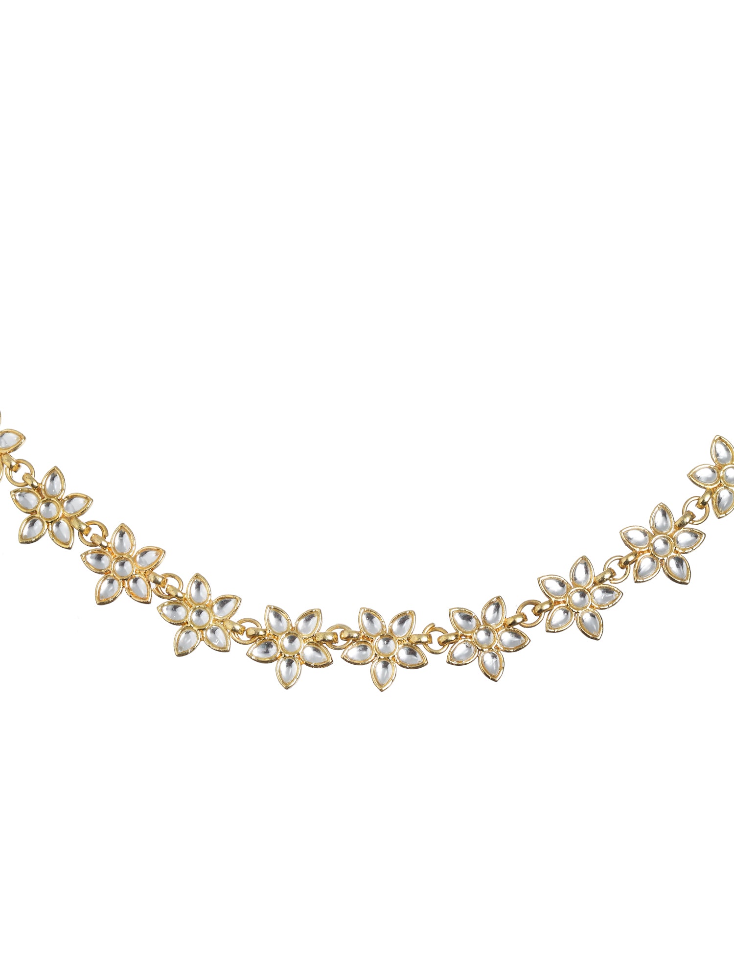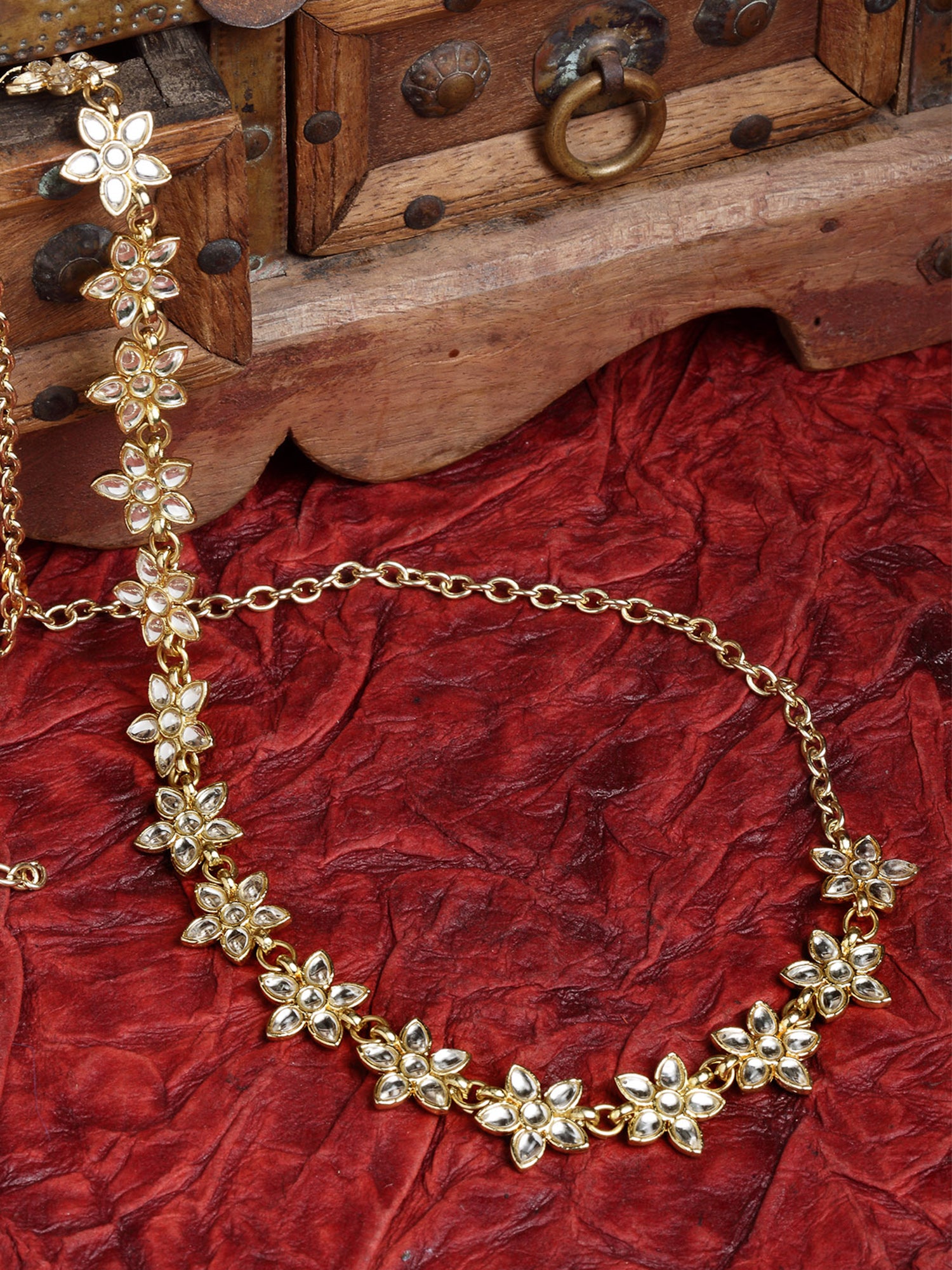 Floral Shaped Kundan Studded Gold Plated Hairband