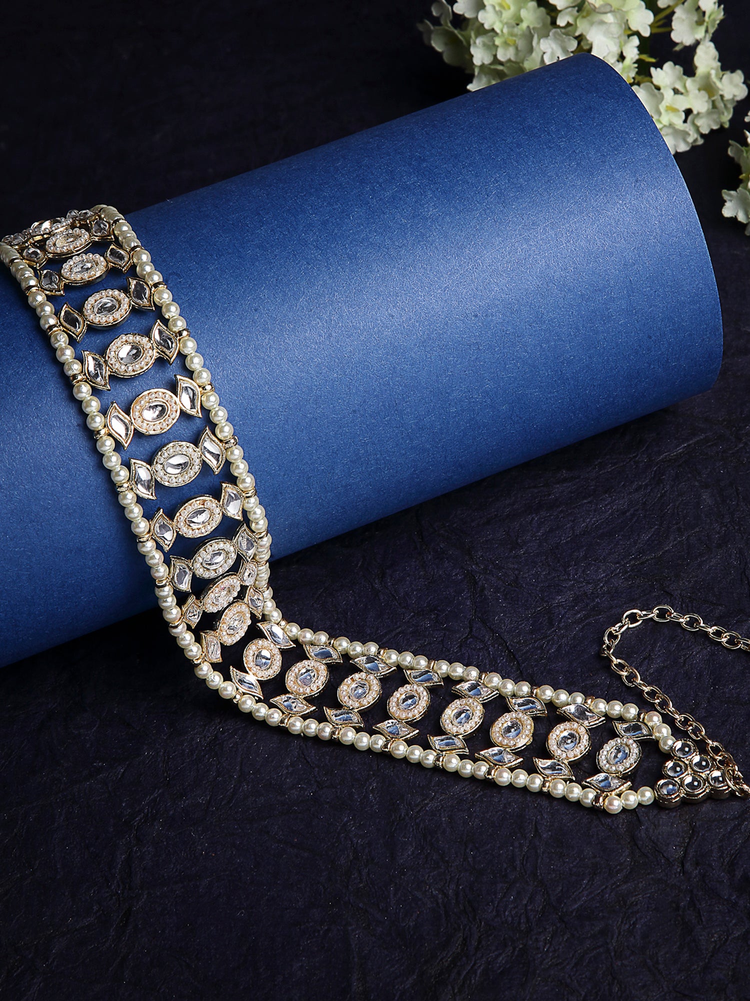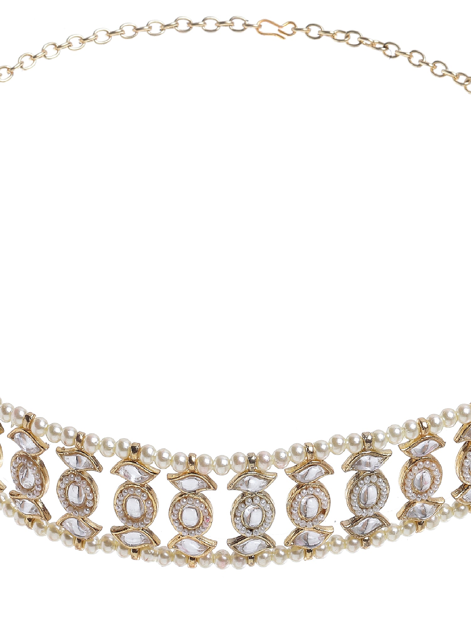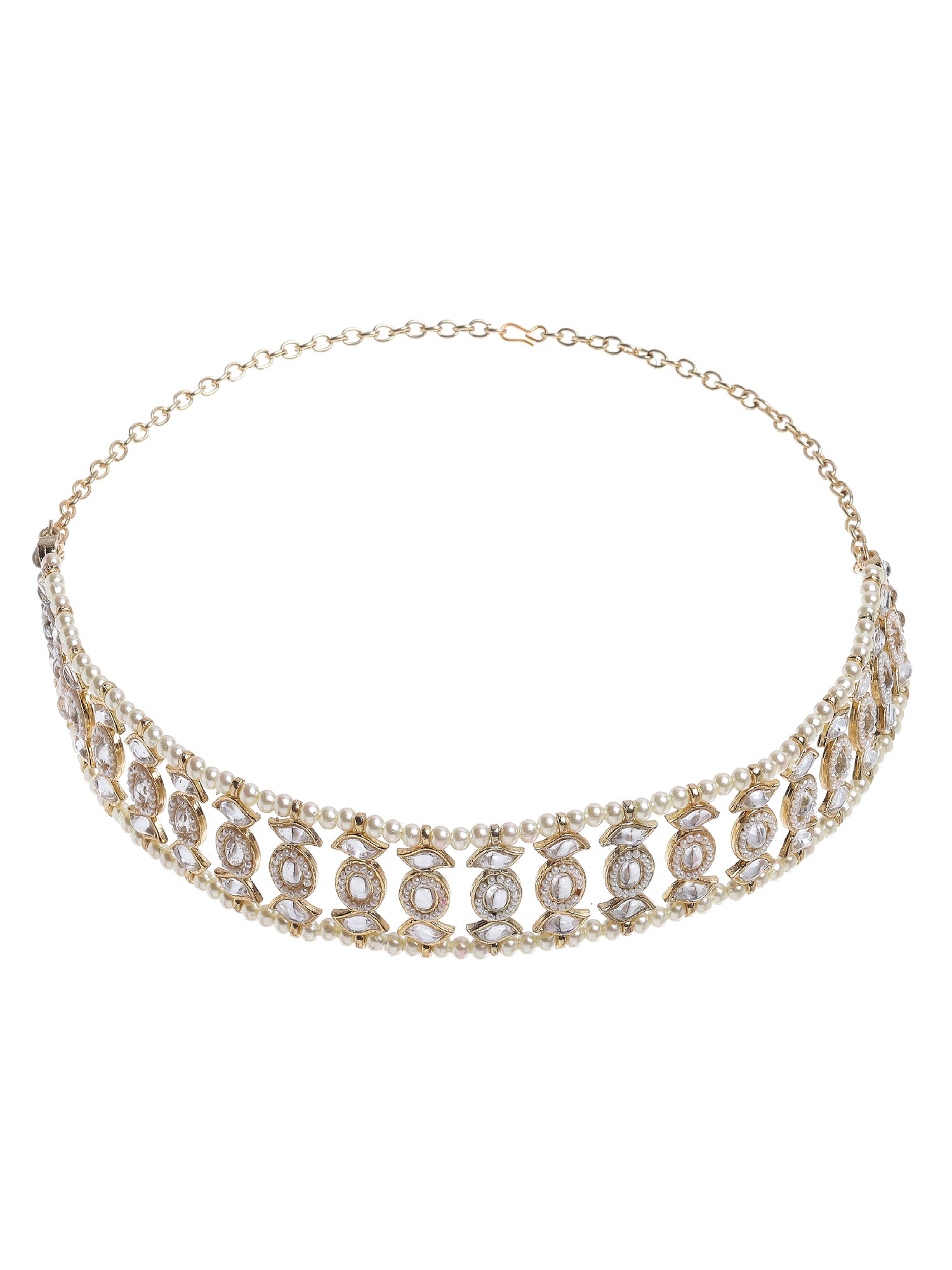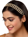 - Gold Plated Pearl Ball Studded Eanamelled Kundan Hairband. Pearl Embedded Glossy Finish Kundan Hairband for Women's. Intricate high polish creates glamorous reflections and adds a luxurious look. Perfect for Weddings, Festivals, Traditional Occasions. Best when paired with any Indian outfit.