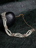 Pearl Embedded Gold Plated Beaded Kundan Hairband