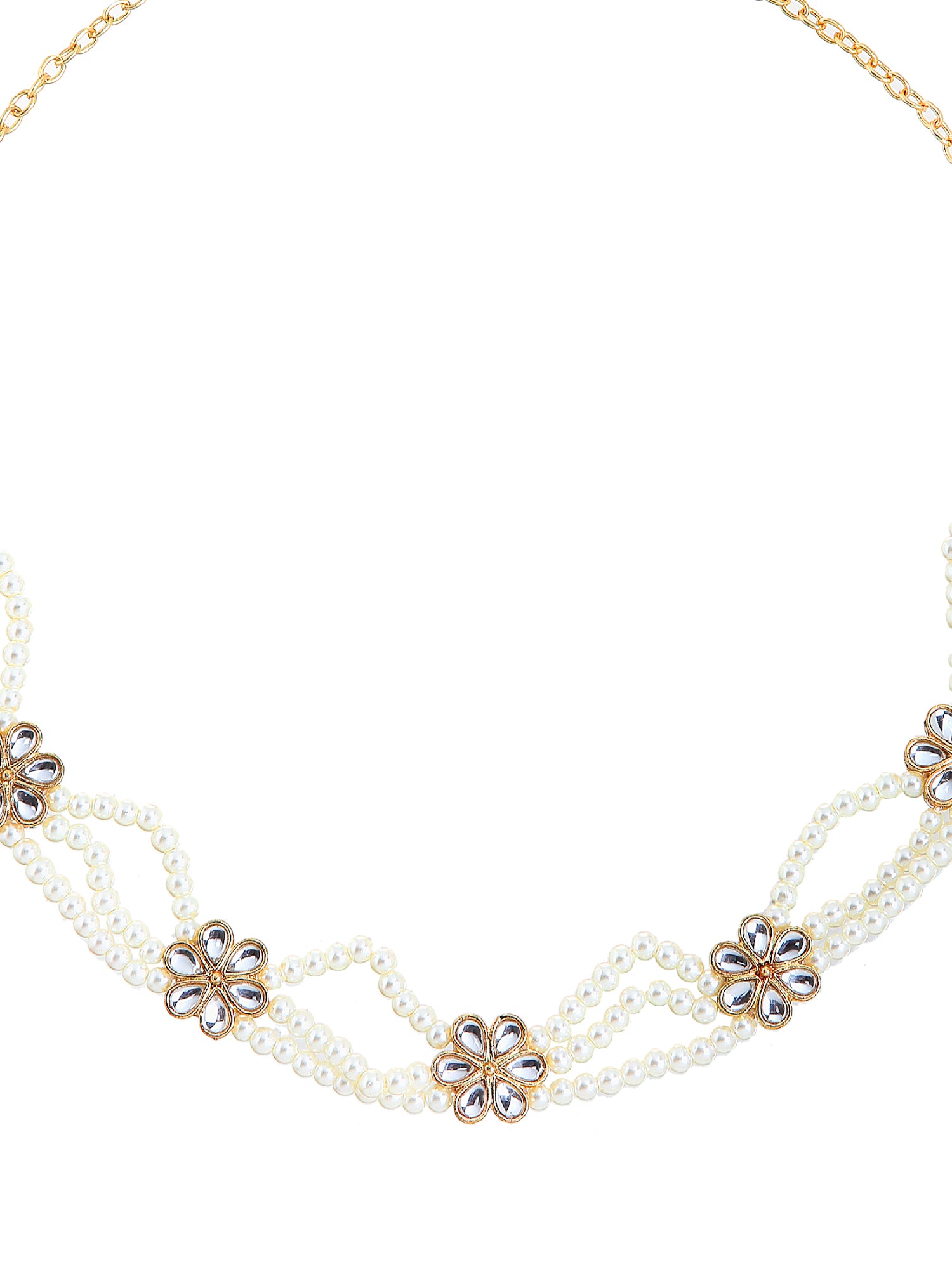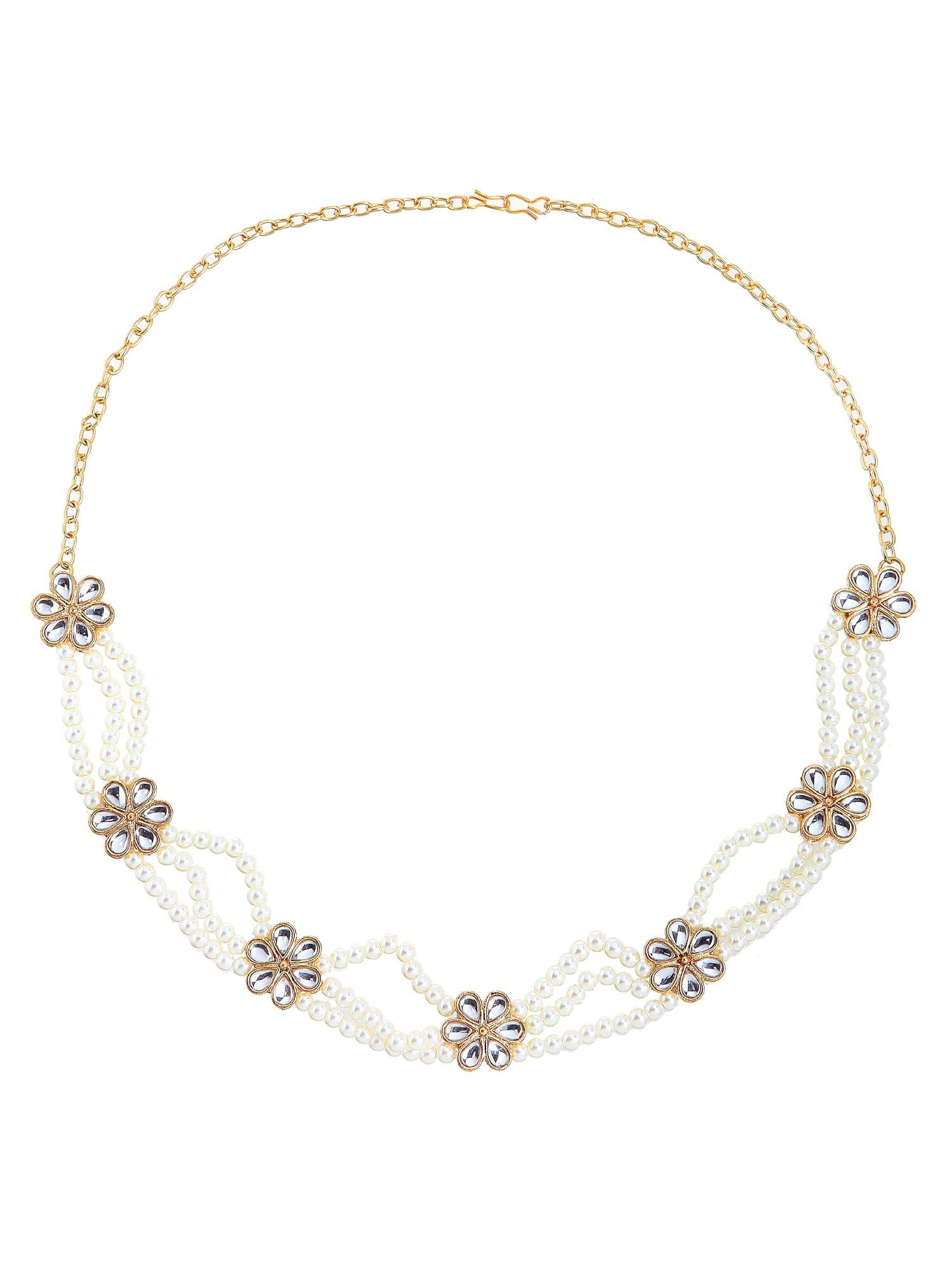- Pearl Embedded Gold Plated Beaded Kundan Hairband. Dazzling Floral Shaped Gold Plated Glossy Finish Kundan Hairband for Women's. Intricate high polish creates glamorous reflections and adds a luxurious look. Perfect for Weddings, Festivals, Traditional Occasions. Best when paired with any Indian outfit.
