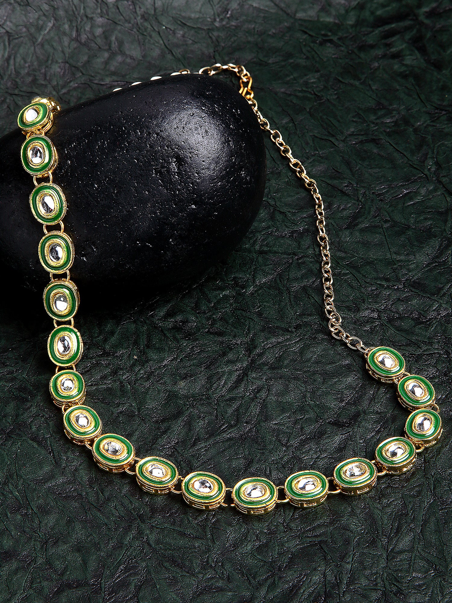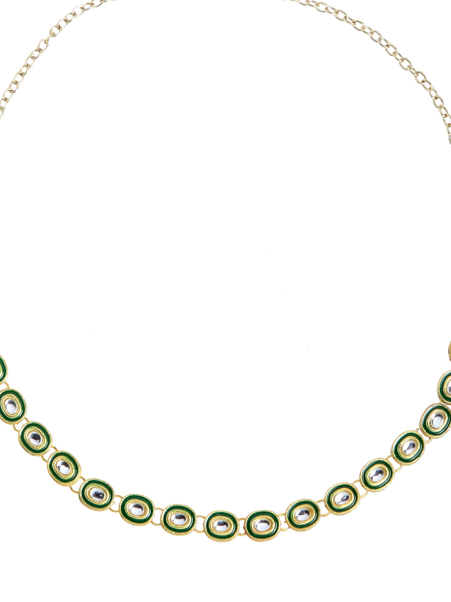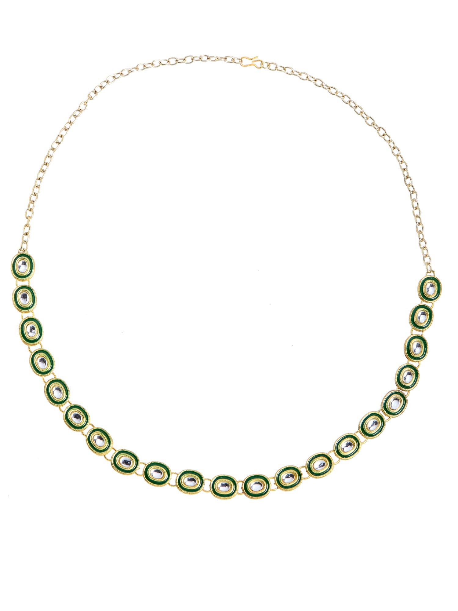 - Gold Plated Green Meena Kundan Hairband. Hand Painted Meenakari work Glossy Finish Kundan Hairband for Women's. Intricate high polish creates glamorous reflections and adds a luxurious look. Perfect for Weddings, Festivals, Traditional Occasions. Best when paired with any Indian outfit.