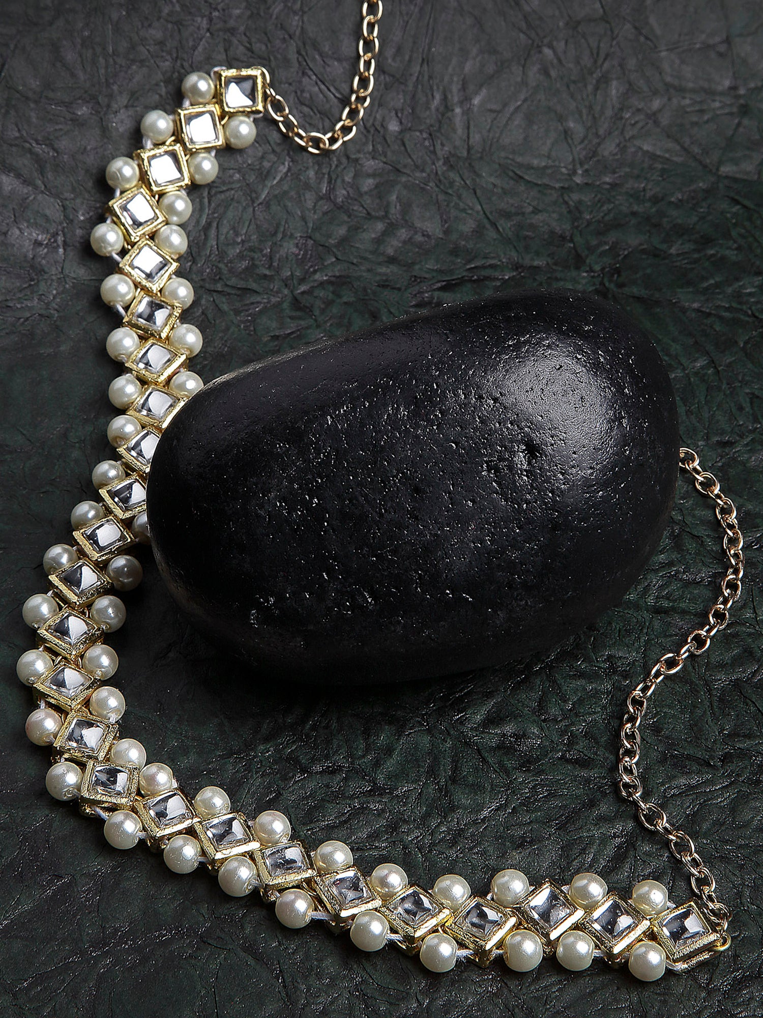 Diamond Shape Kundan and Pearl Studded Hairband