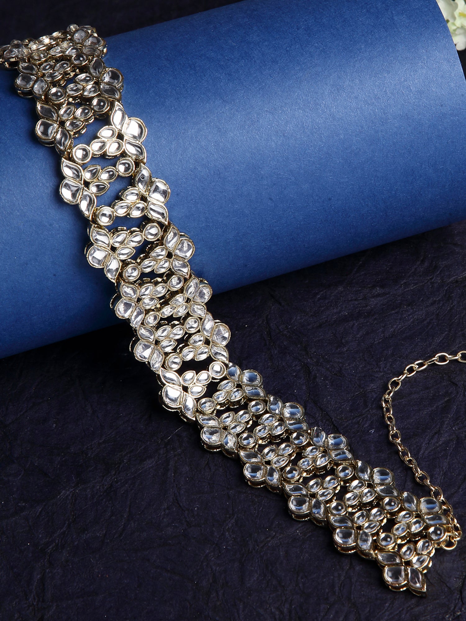 - Karatcart Ethnic Gold Plated Kudan Studded Hairband for Women. It's Five Layer Micro Gold Plated and Embellished with Kundan for High Durability. Intricate high polish creates glamorous reflections and adds a luxurious look. Perfect for Weddings, Festivals, Traditional Occasions. Best when paired with any Indian outfit.