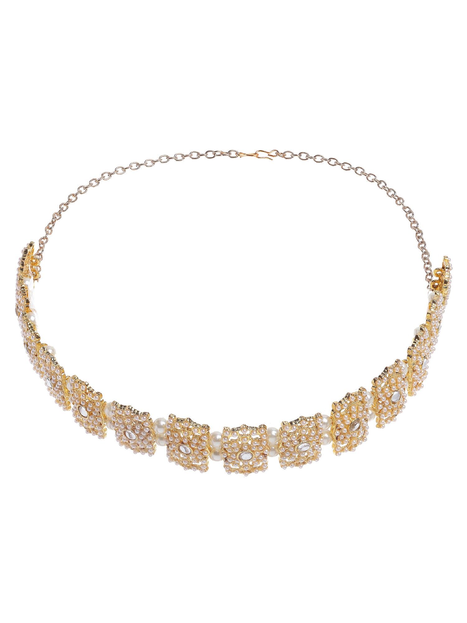 - Karatcart Pearl Ball and Kundan Studded Handcrafted Hairband for Women. It's Five Layer Micro Gold Plated and Embellished with Kundan for High Durability. Intricate high polish creates glamorous reflections and adds a luxurious look. Perfect for Weddings, Festivals, Traditional Occasions. Best when paired with any Indian outfit.
