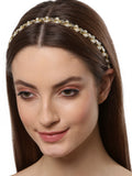 - Karatcart Gold Plated Pearl Studded Handcrafted Kundan Hairband for Women. A beautifully handcrafted hairband studded with Kundan. This hairband gives you the elegant look that makes everyone's heads turn on you. It's Five Layer Micro Gold Plated and Embellished with Kundan for High Durability. Intricate high polish creates glamorous reflections and adds a luxurious look. Perfect for Weddings, Festivals, Traditional Occasions. Best when paired with any Indian outfit.