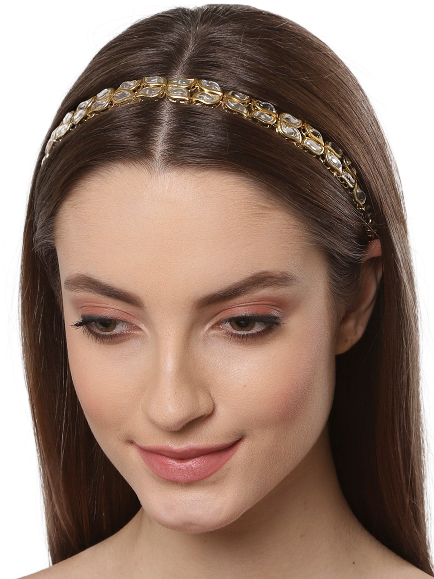 - Karatcart Gold-Plated Embellished Kundan Hairband for Women. A beautifully handcrafted hairband studded with Kundan. This hairband gives you the elegant look that makes everyone's heads turn on you. It's Five Layer Micro Gold Plated and Embellished with Kundan for High Durability. Intricate high polish creates glamorous reflections and adds a luxurious look. Perfect for Weddings, Festivals, Traditional Occasions. Best when paired with any Indian outfit.