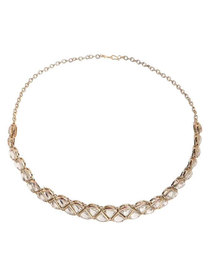 - Karatcart Gold Plated Triangle Kundan Hairband for Women. It's Five Layer Micro Gold Plated and Embellished with Kundan for High Durability. Intricate high polish creates glamorous reflections and adds a luxurious look. Perfect for Weddings, Festivals, Traditional Occasions. Best when paired with any Indian outfit.