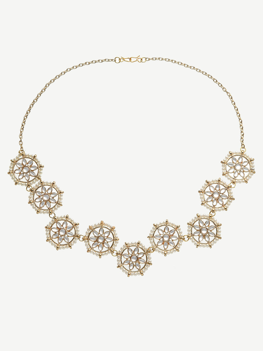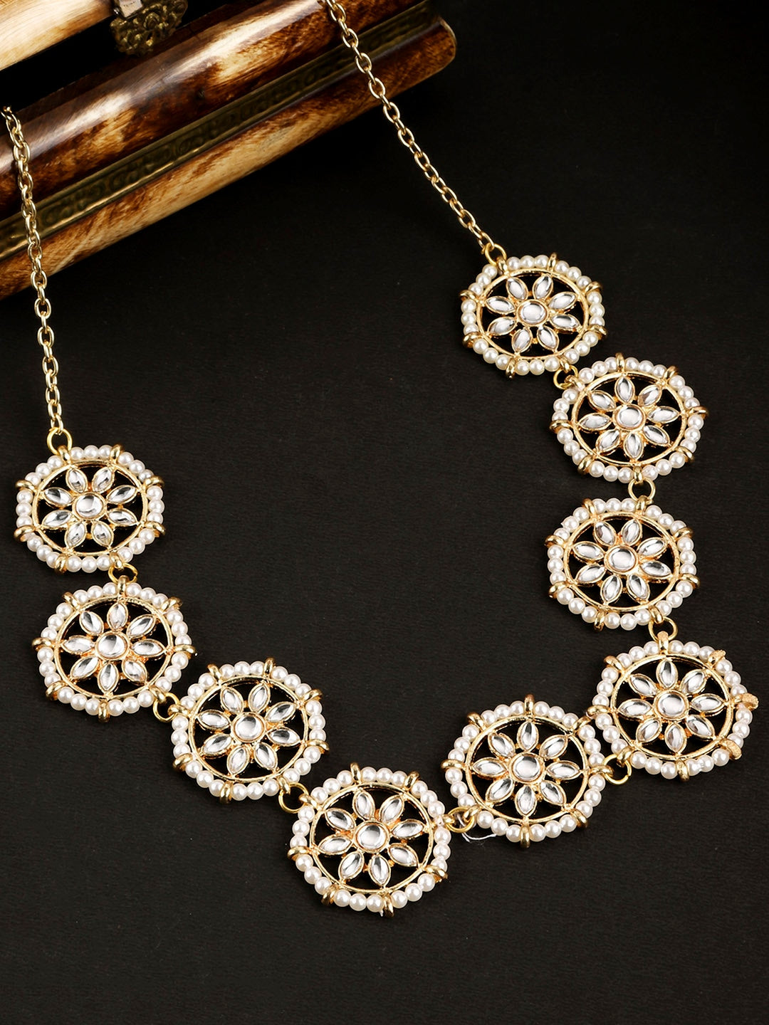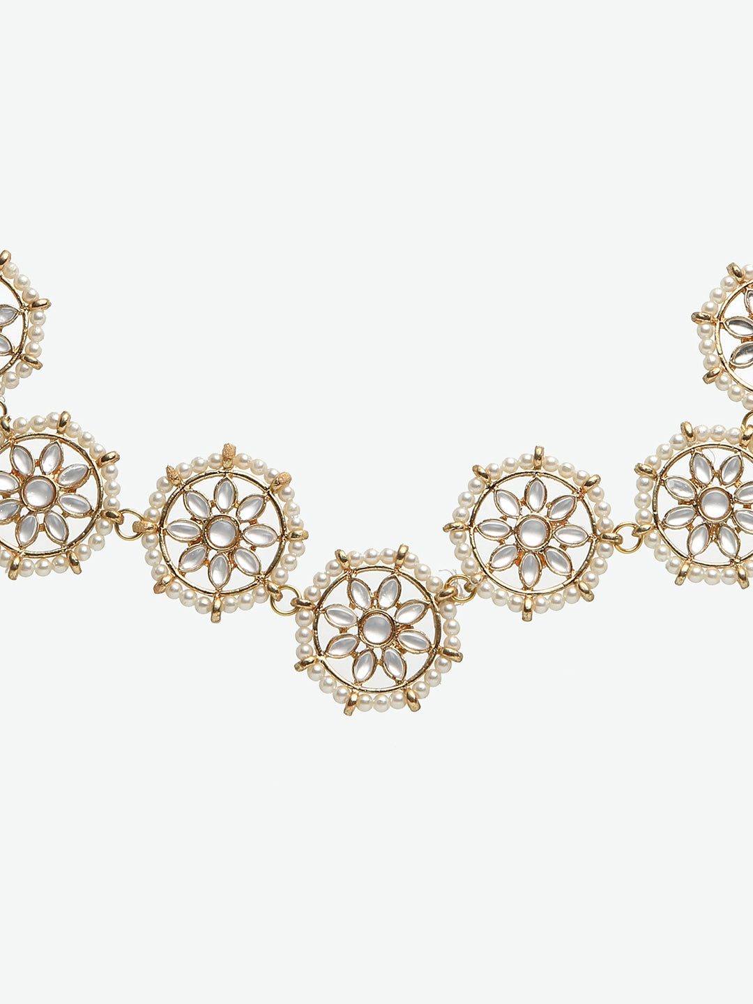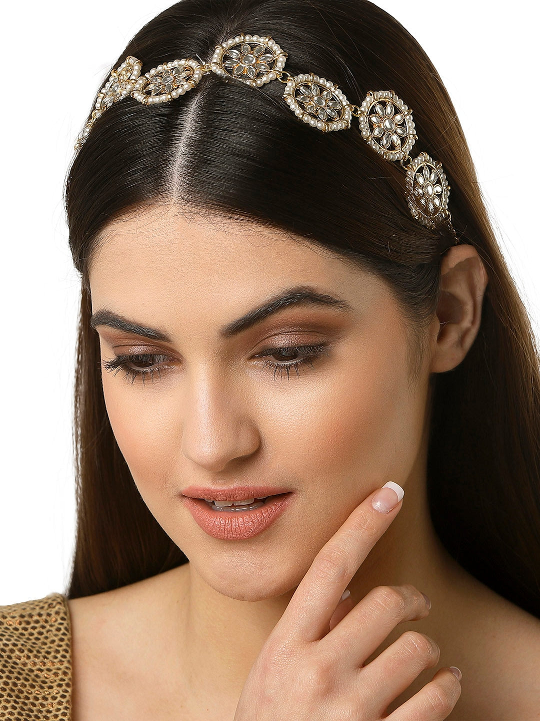 Women Gold-Toned & White Kundan Studded Handcrafted Hairband